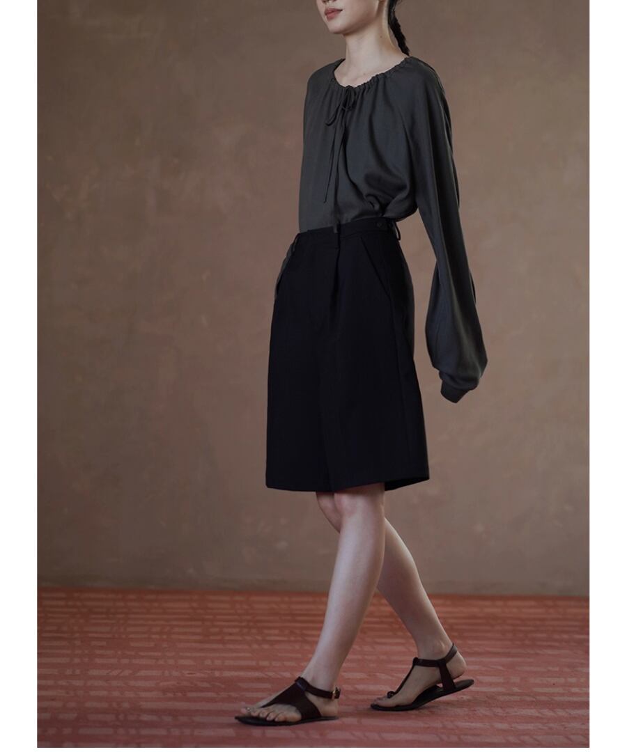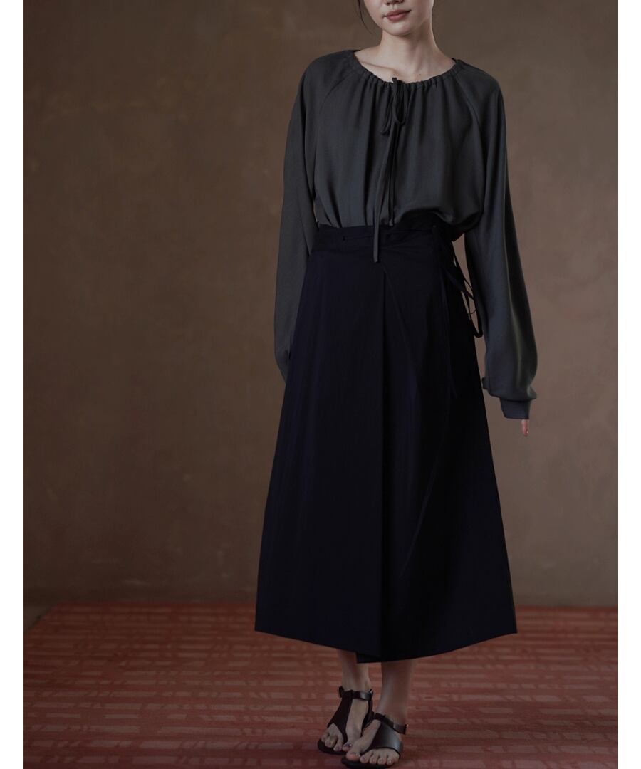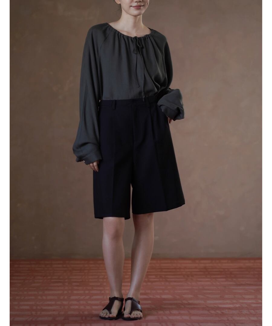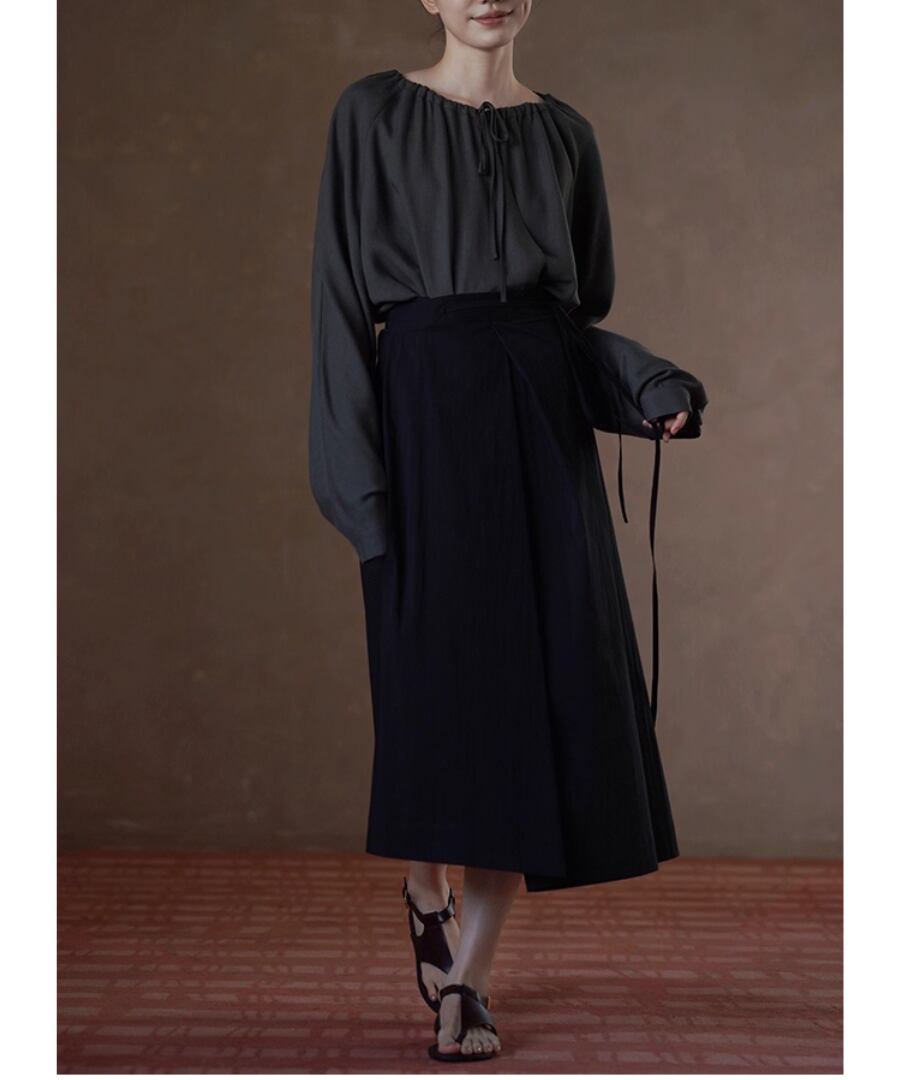 シンプルでありながら洗練されたデザインのラグランスリーブブラウス。