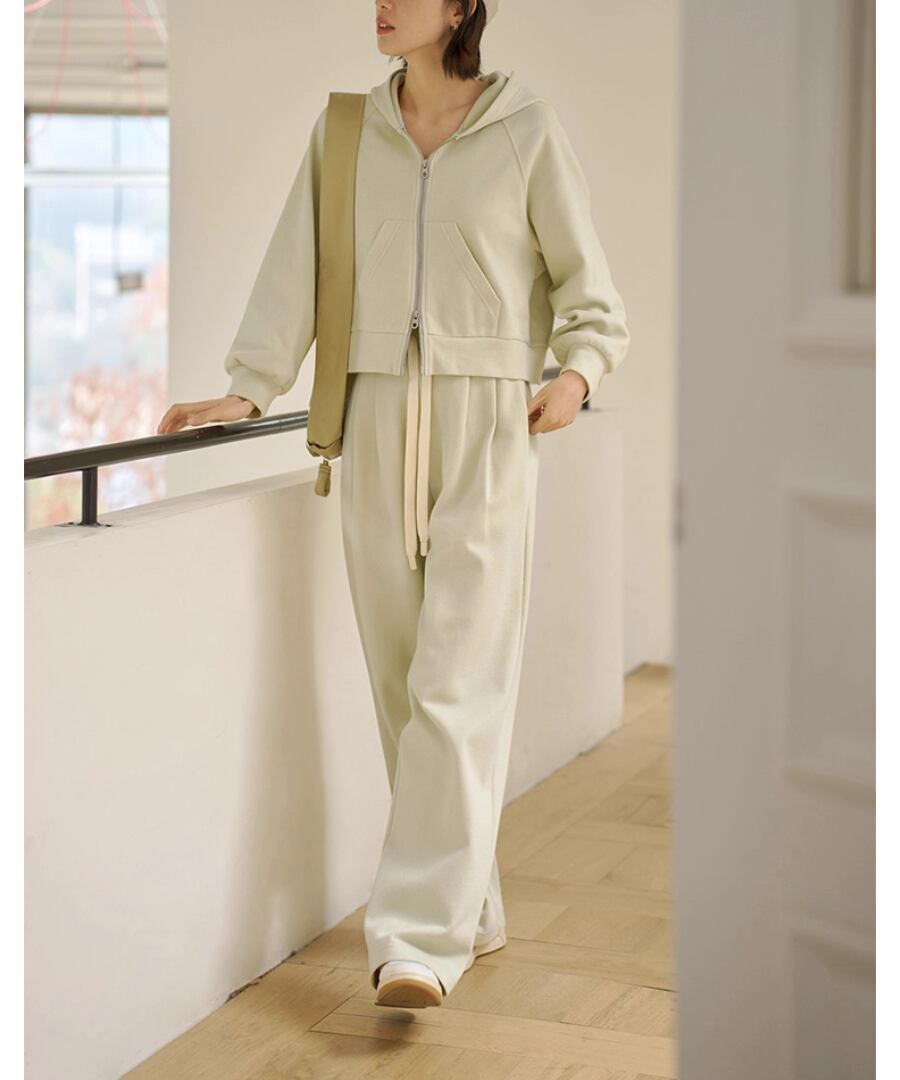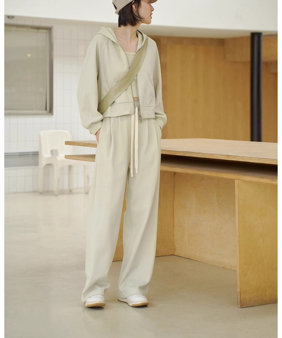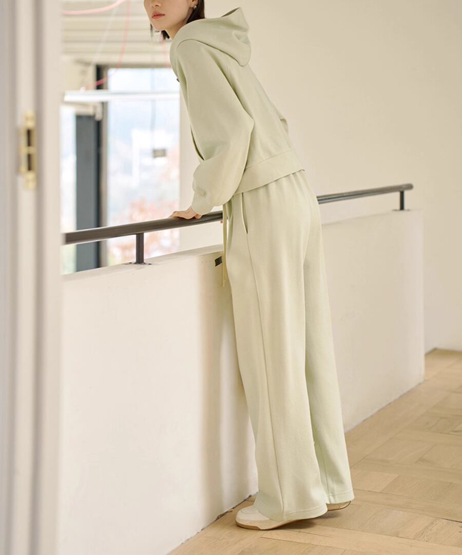 シンプル&スタイリッシュなデザインのミルクグリーンカジュアルパンツ。