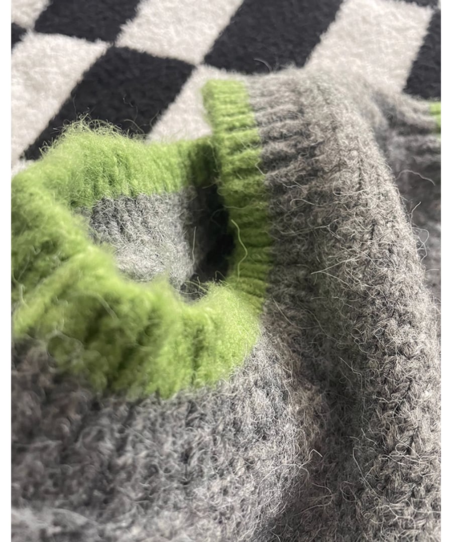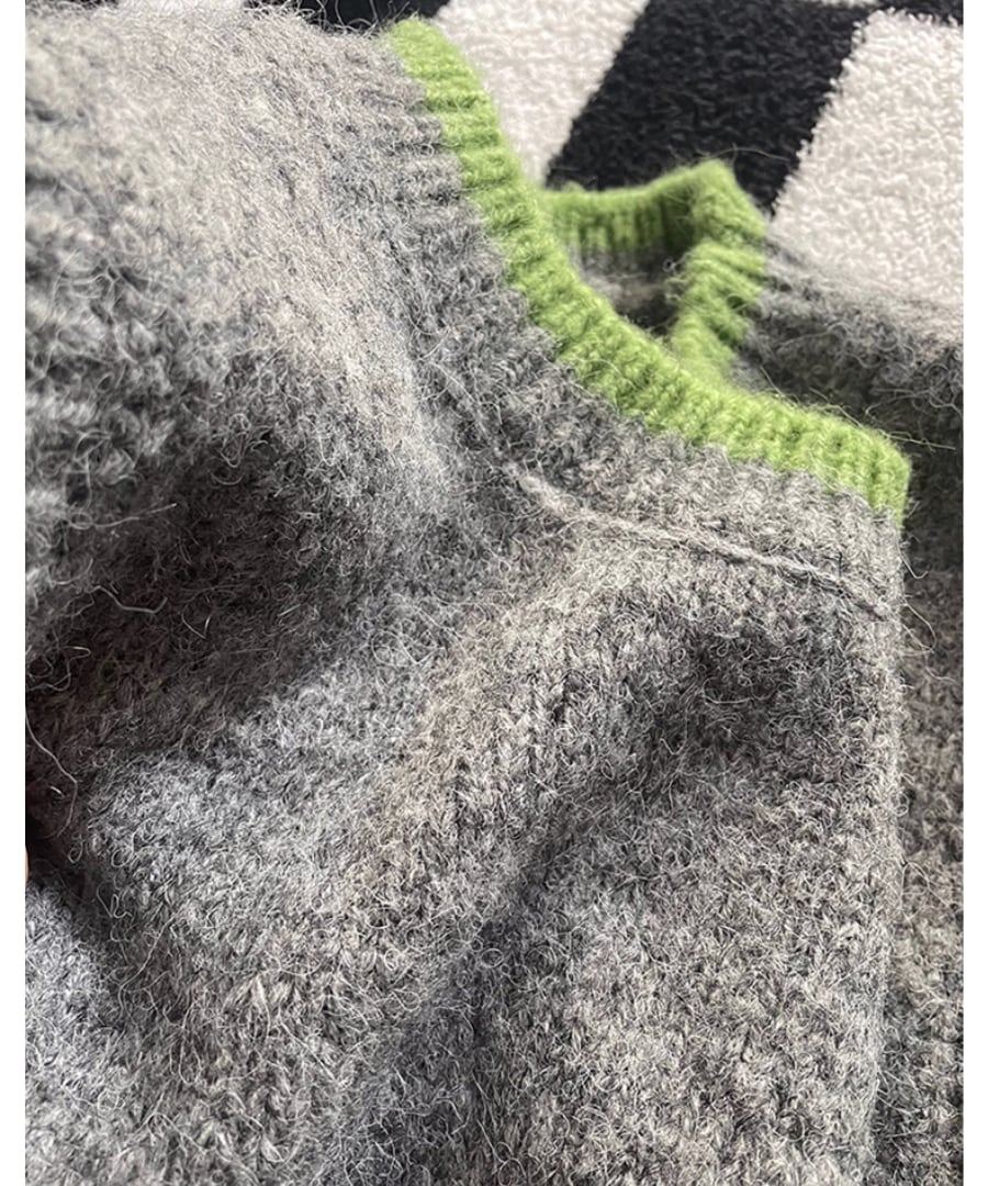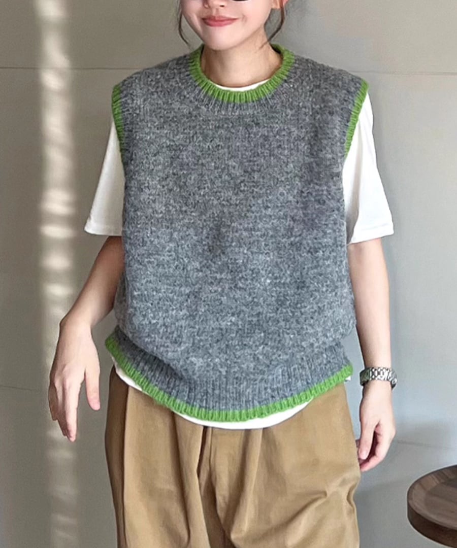 色のコントラストで個性的に決まる、バイカラーニットベスト