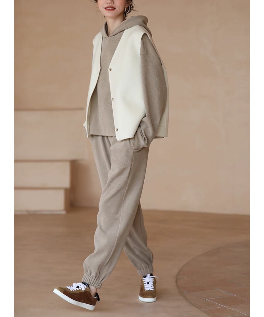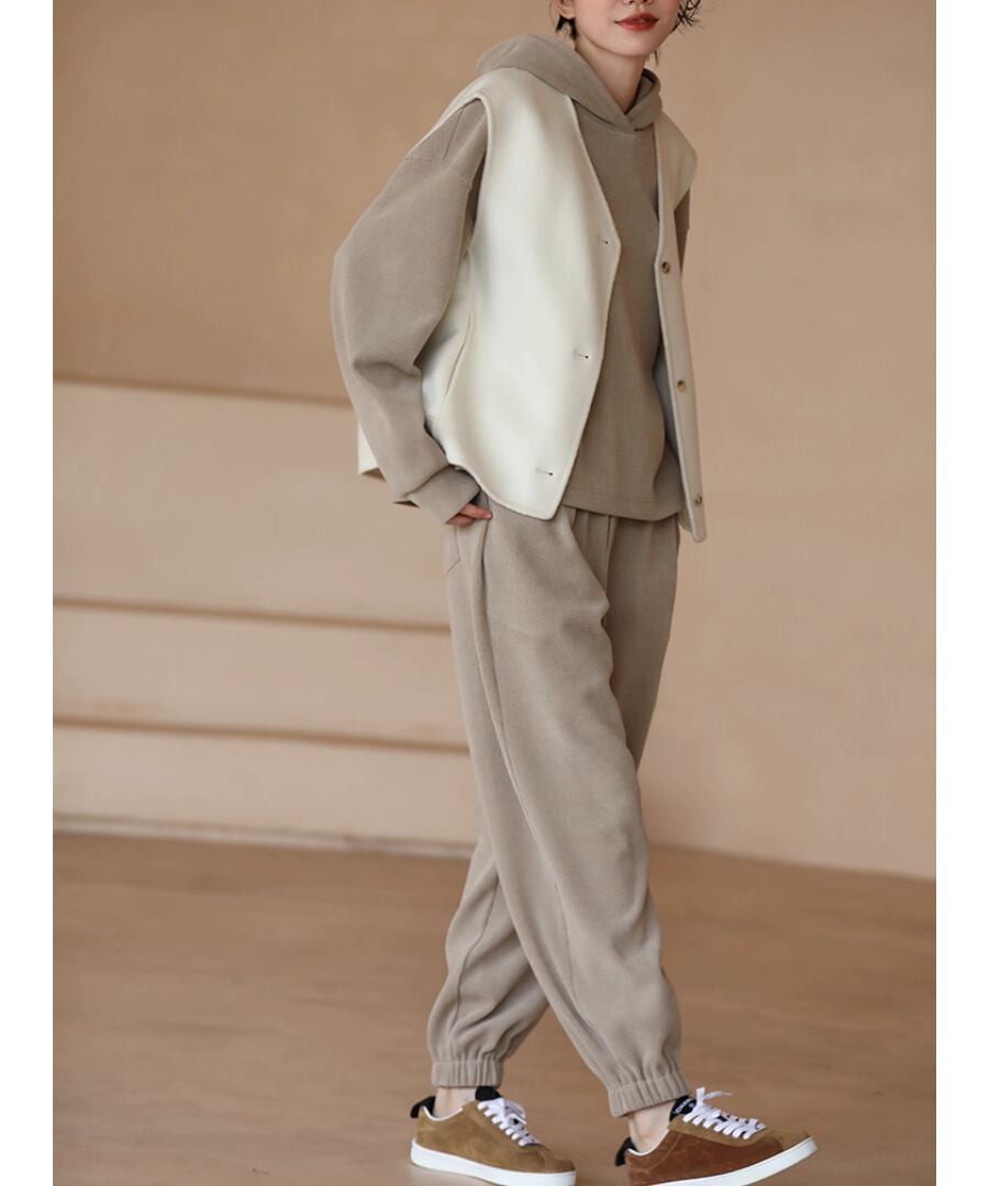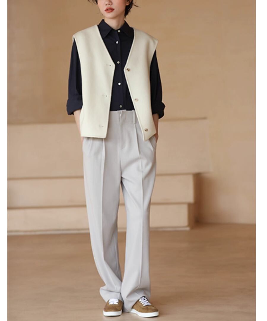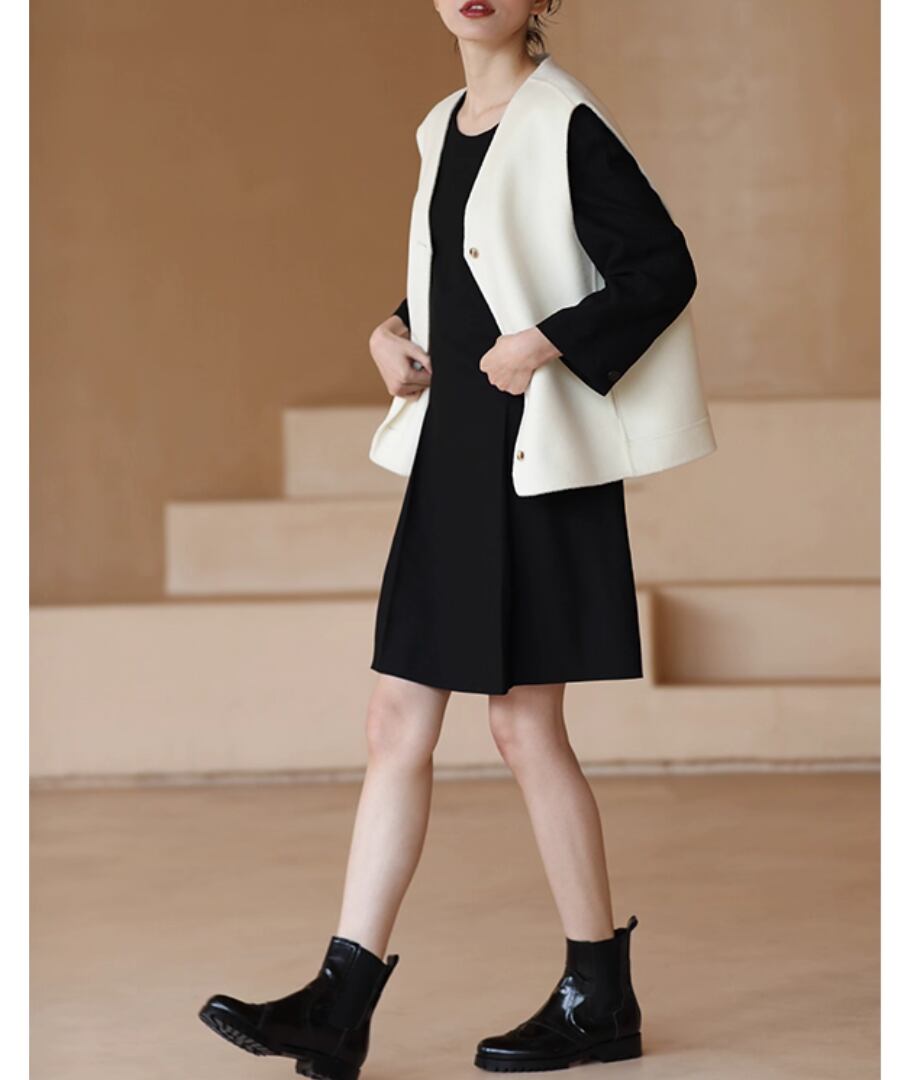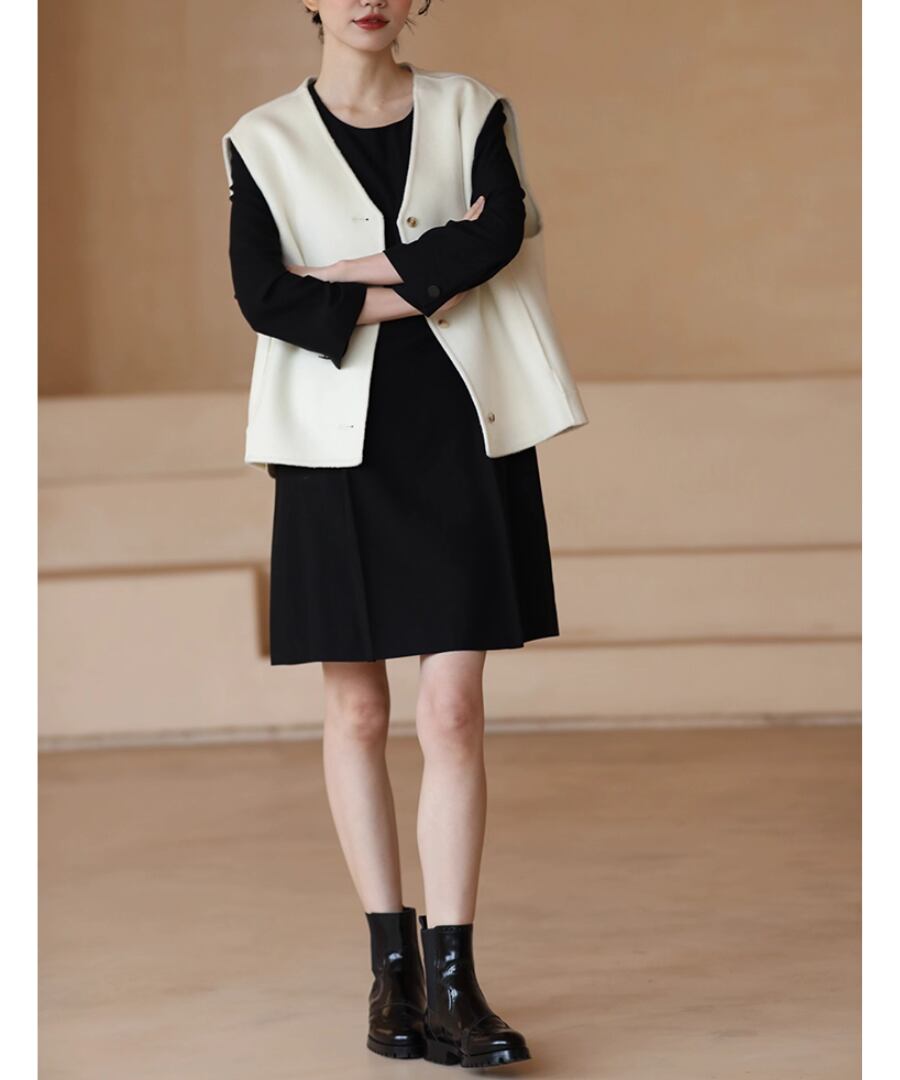シンプルかつエレガントなデザインのウールベストは、上品なホワイトカラーが特徴。