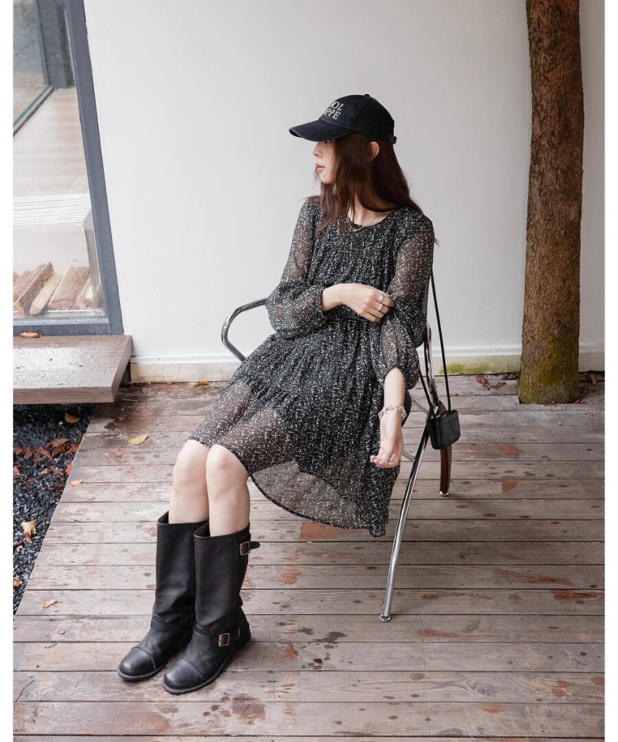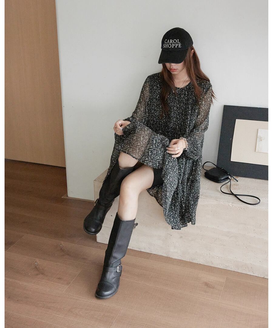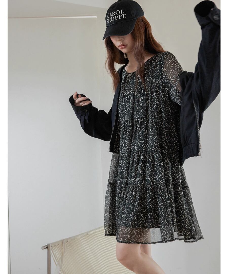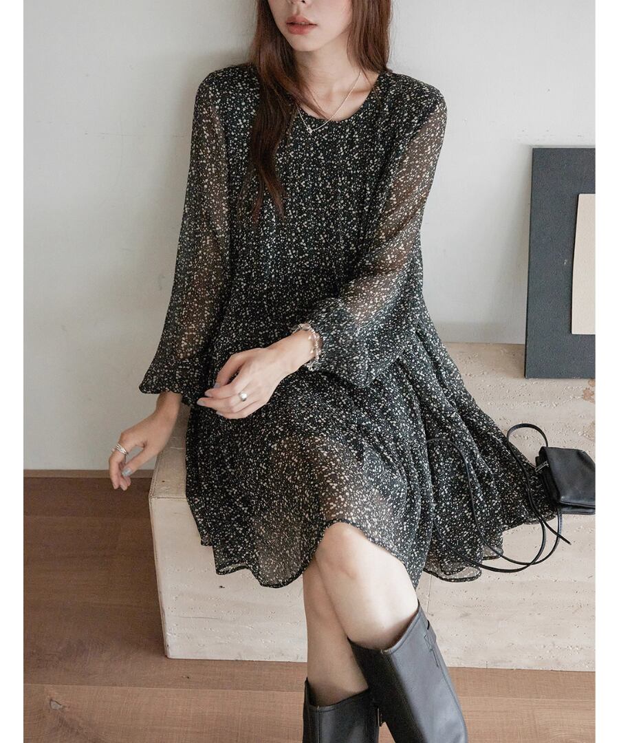 シアー素材を使用し、フラワープリントが甘すぎないタッチで上品に着映えます。