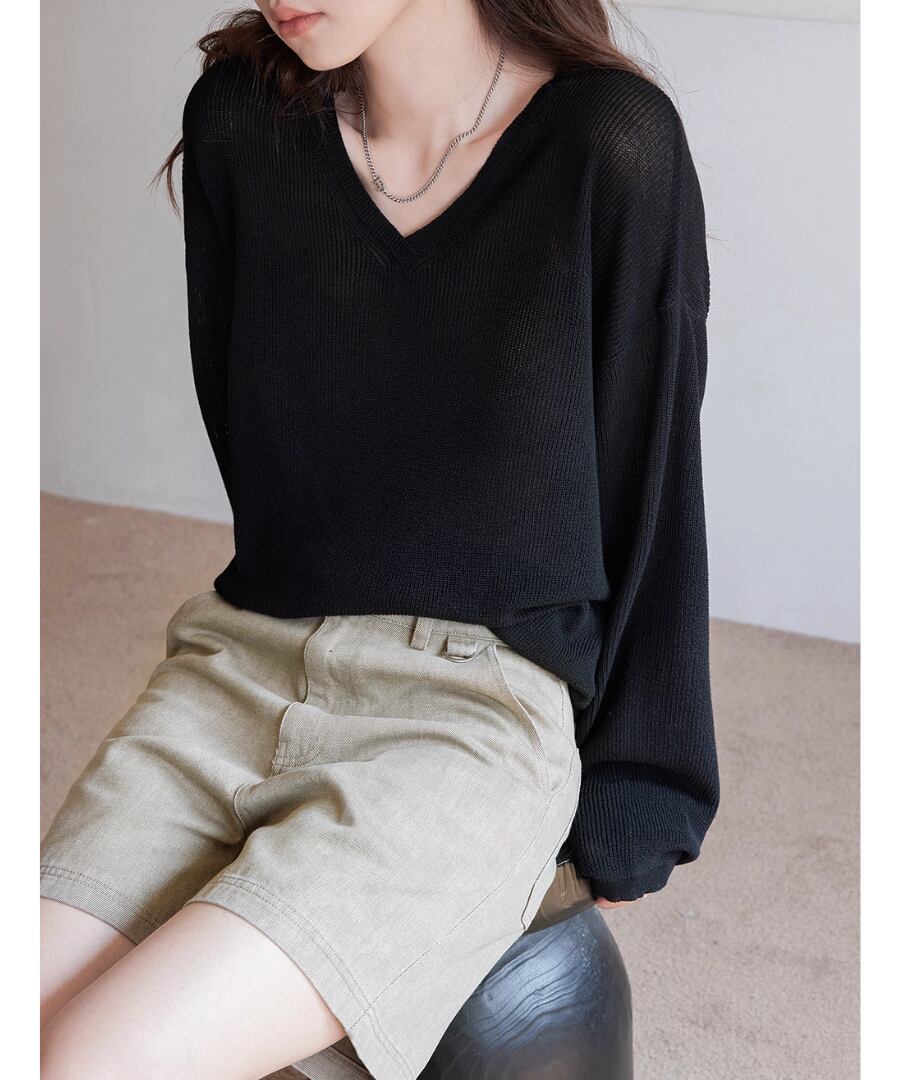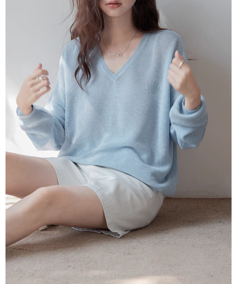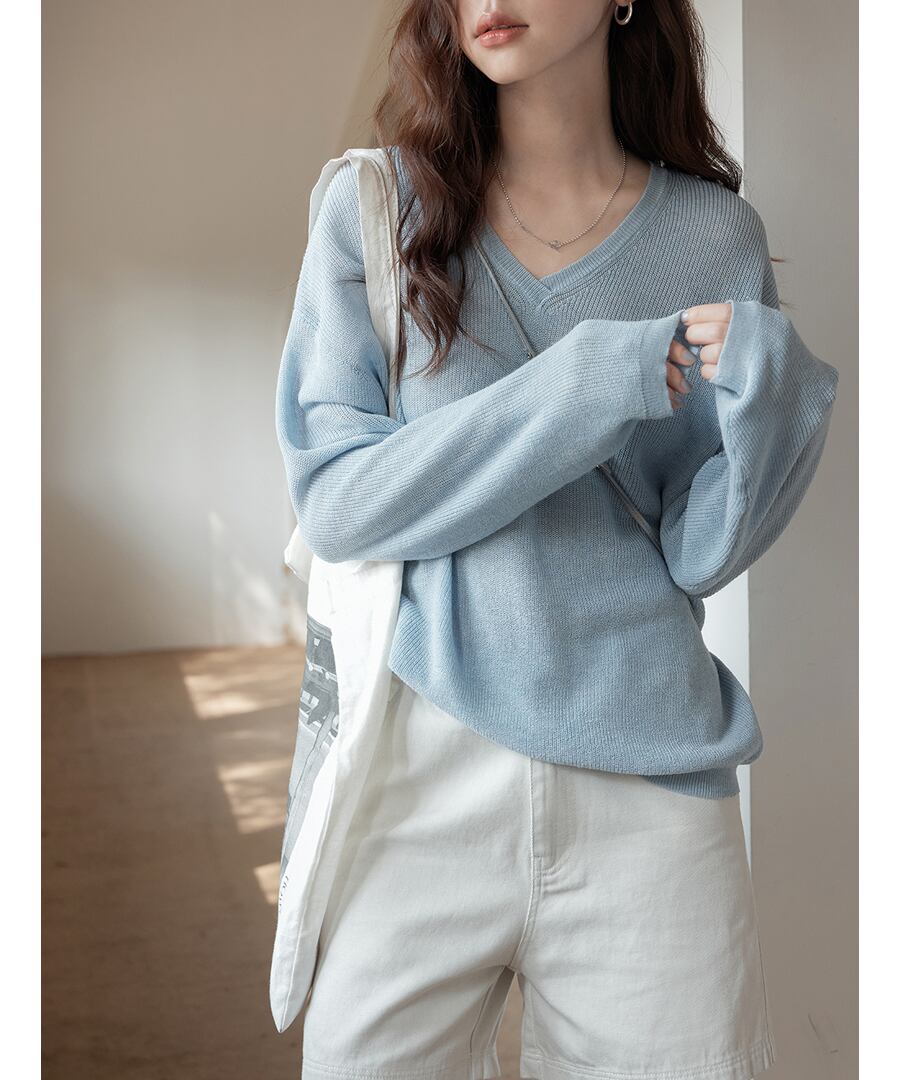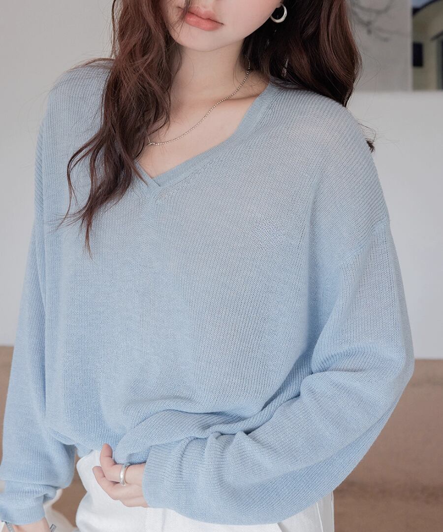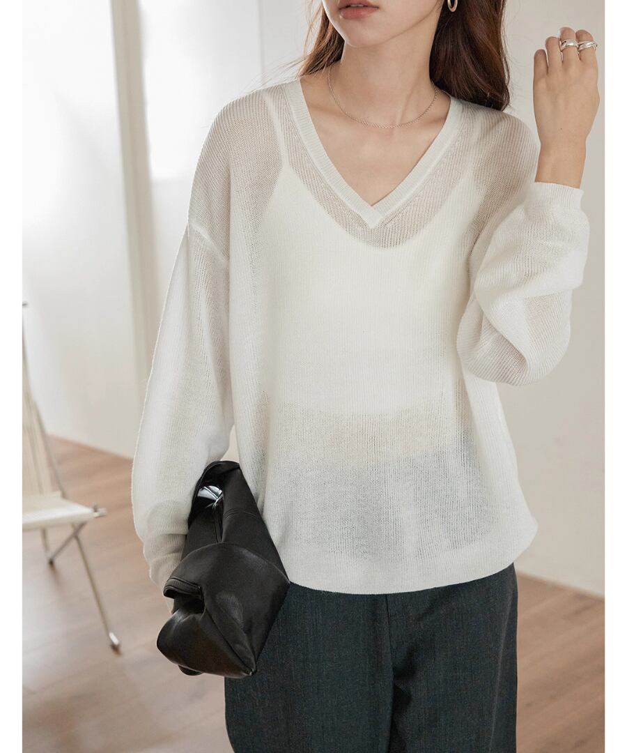 シンプル◆Ⅴネックシアーセーター【t-10496】