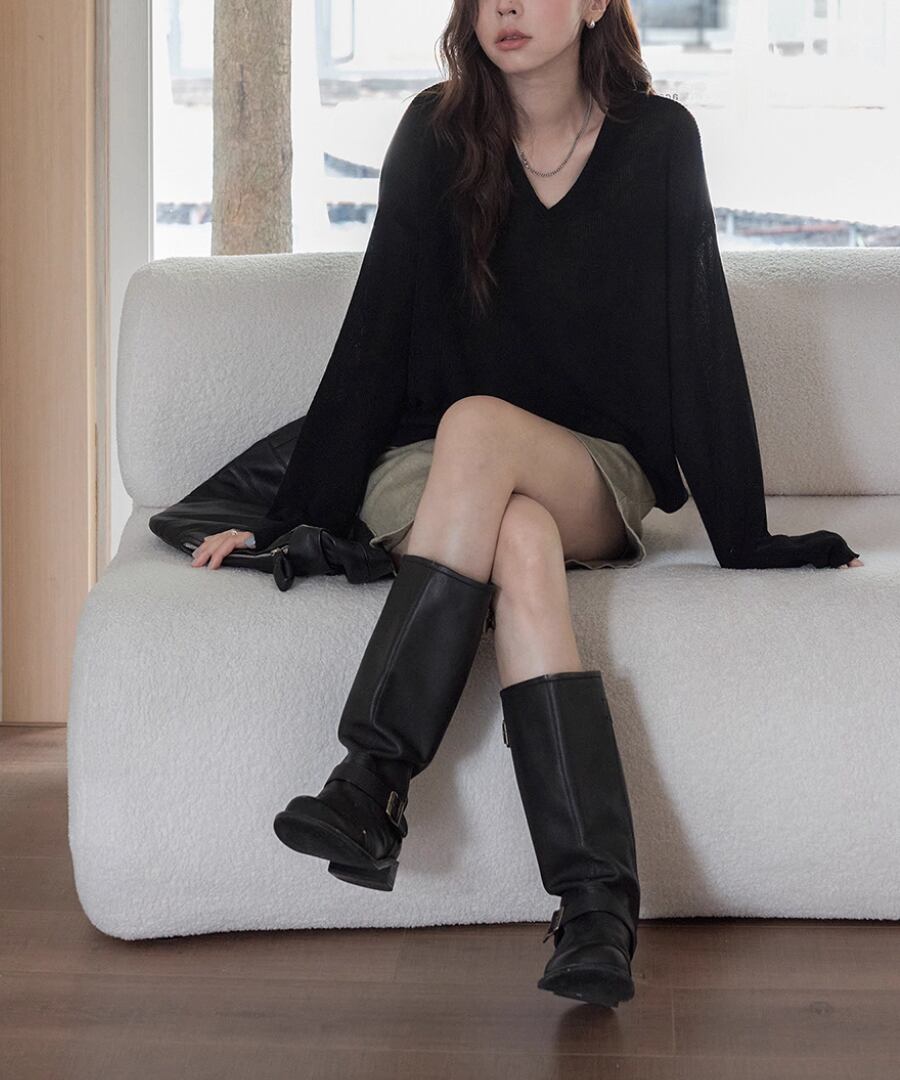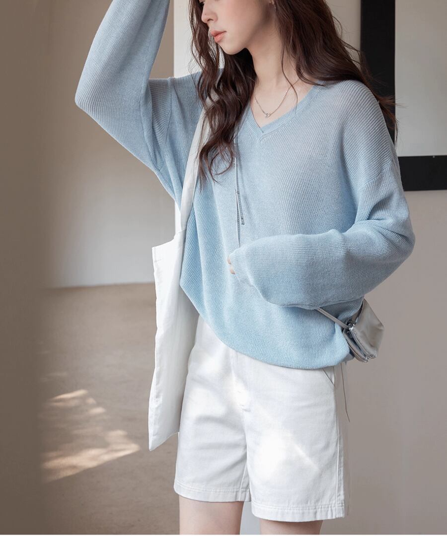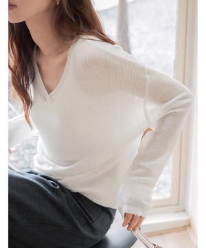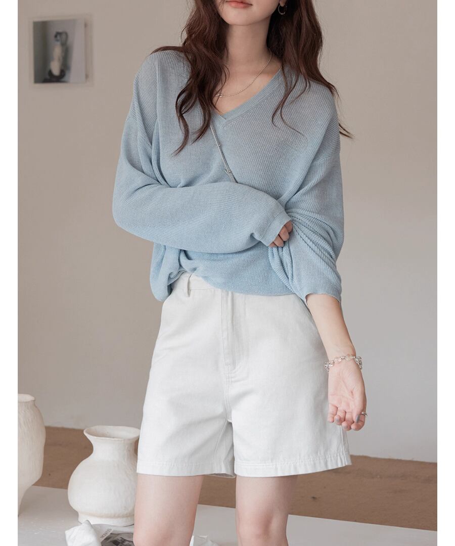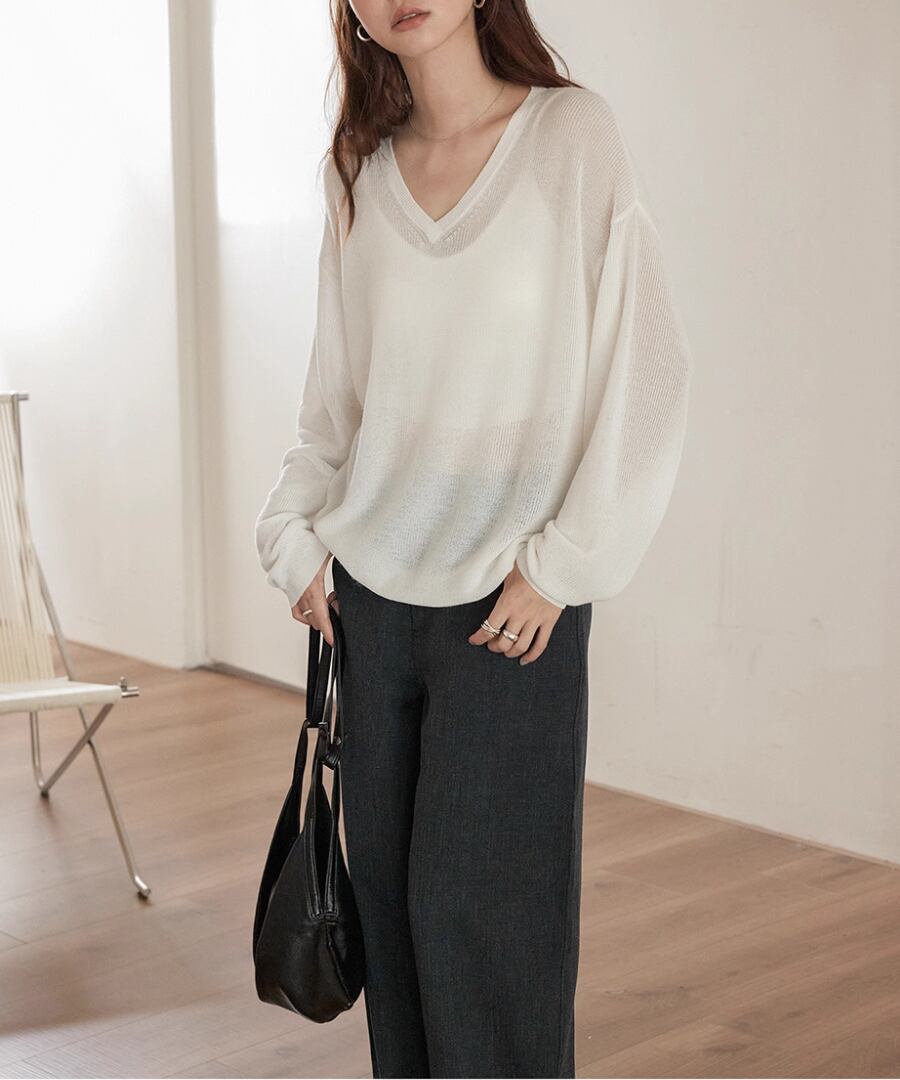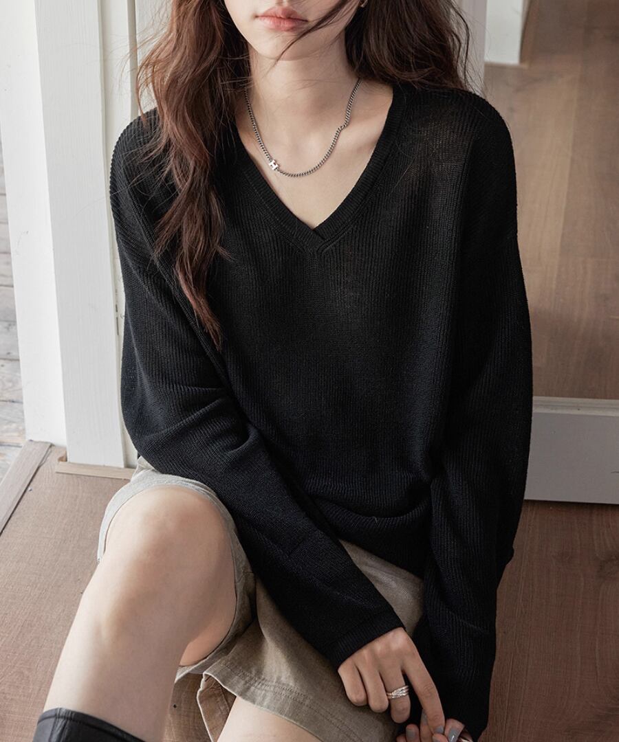 シンプル◆Ⅴネックシアーセーター【t-10496】