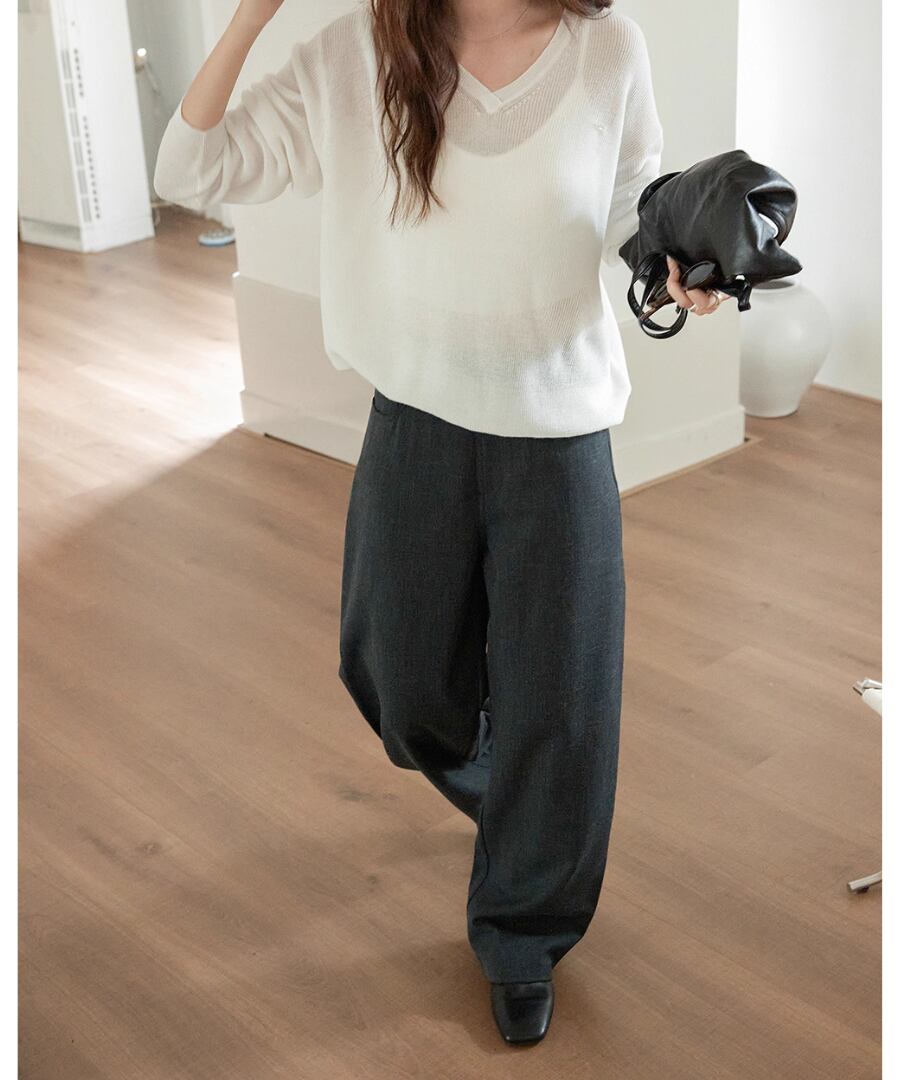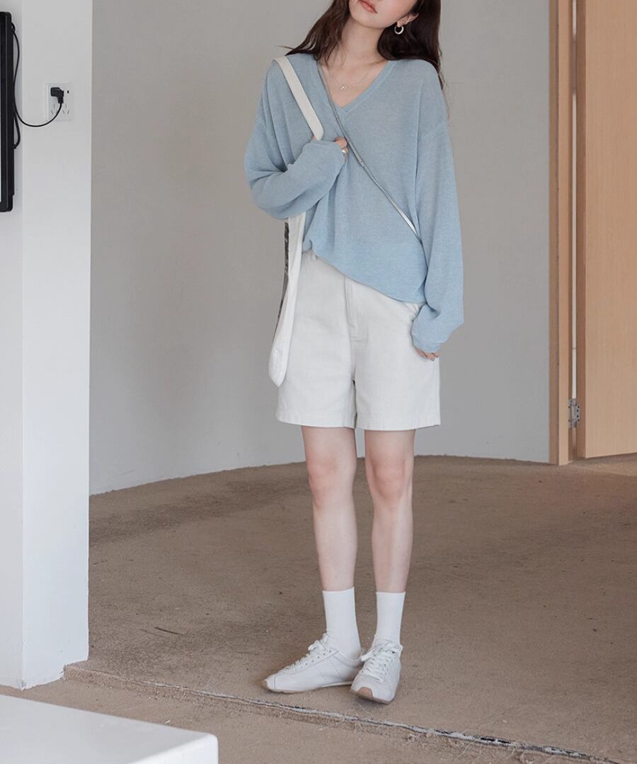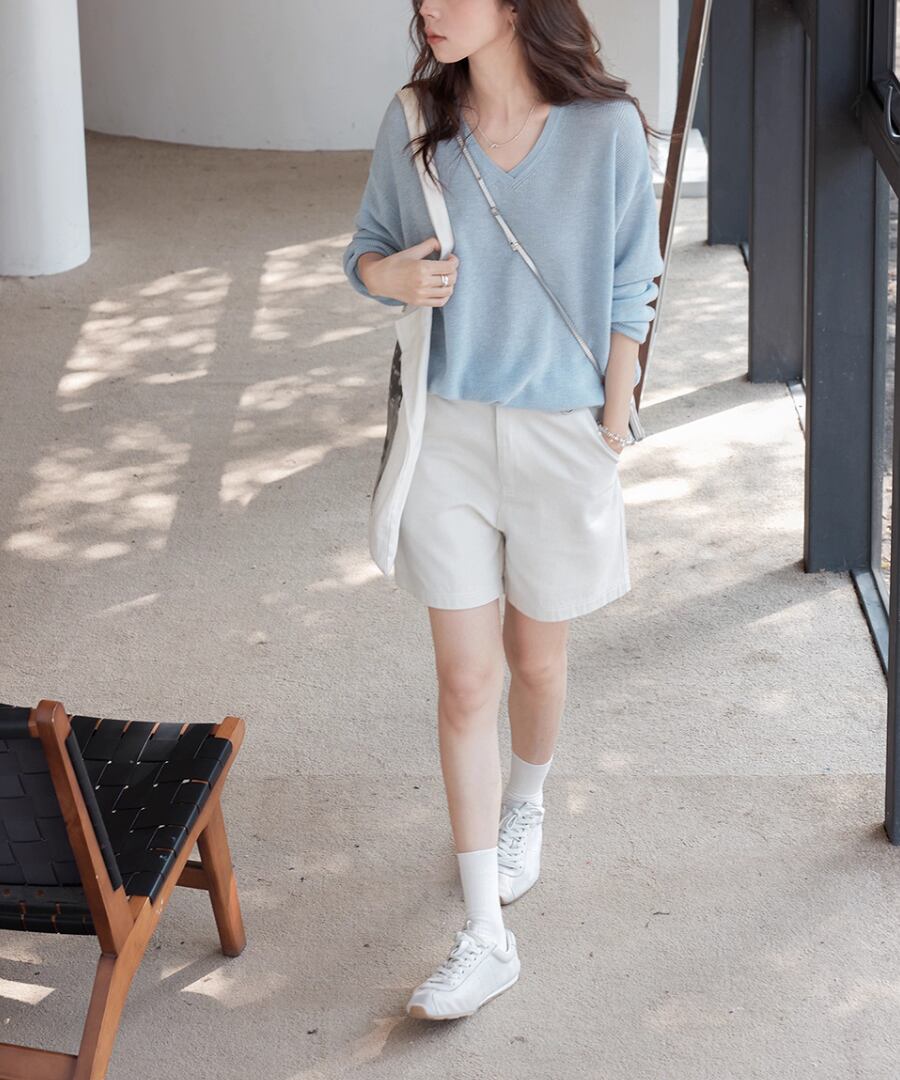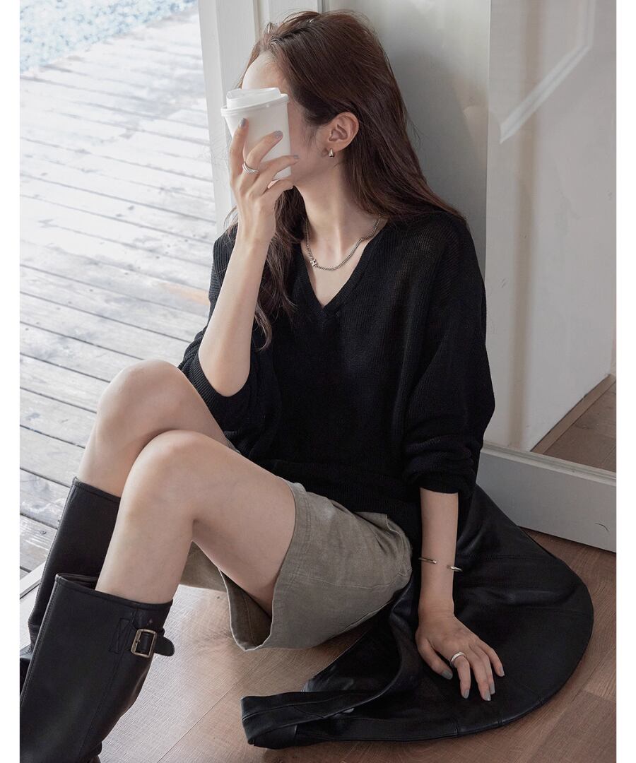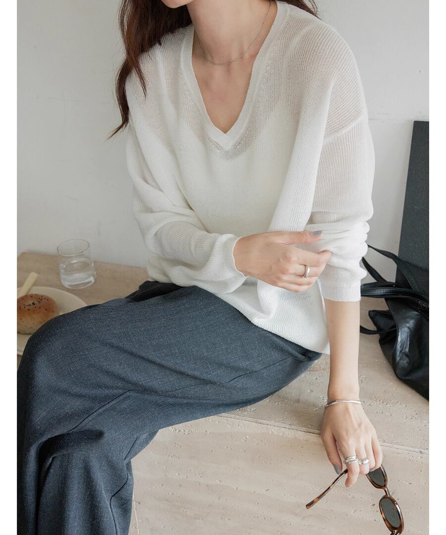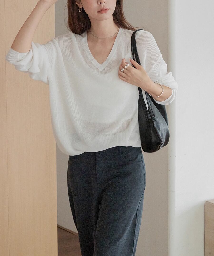 軽やかに重ねられる、シンプルなⅤネックセーター。