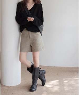 デコルテを美しく見せるⅤネックが、女性らしい印象を引き立てます。