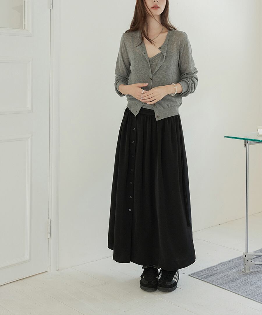 タンクトップは一枚でも着られ、カーディガンを羽織ることで、こなれた印象を演出。