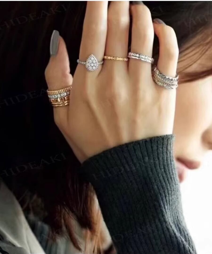 水滴の形状を模した、S925ジルコンウォータードロップリング。