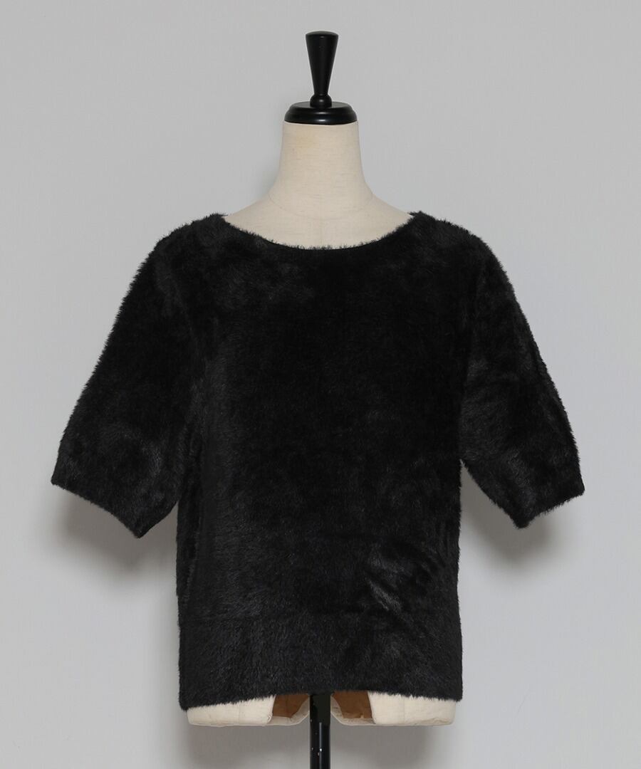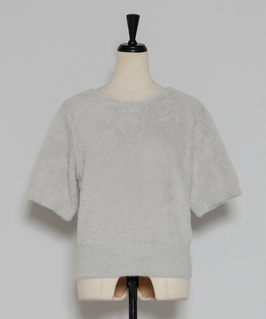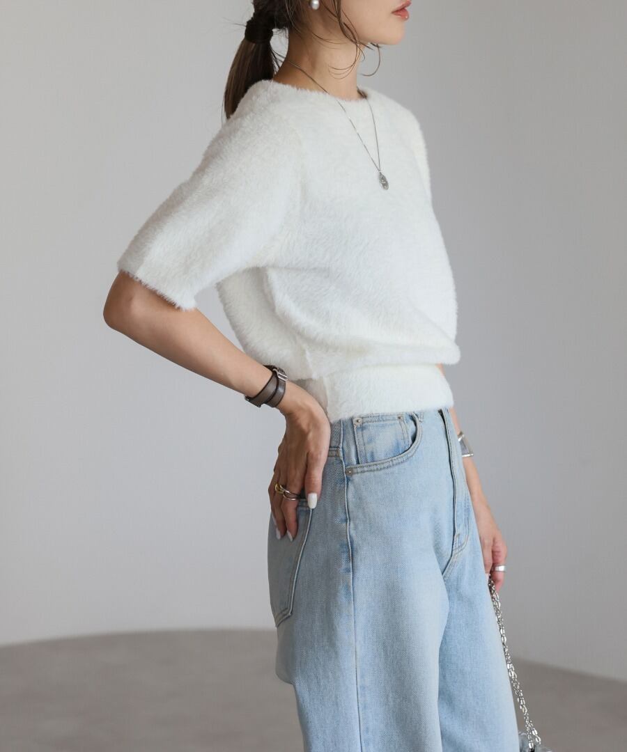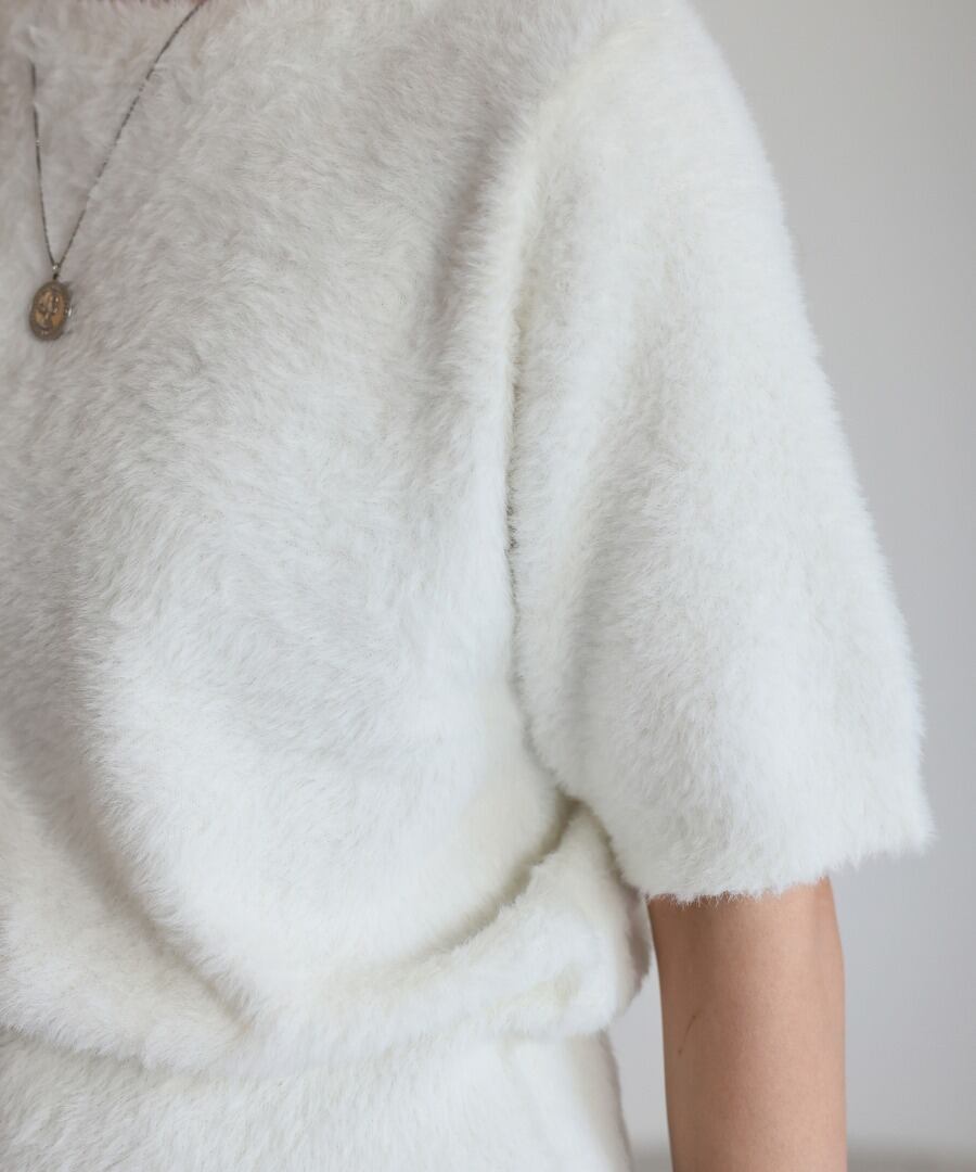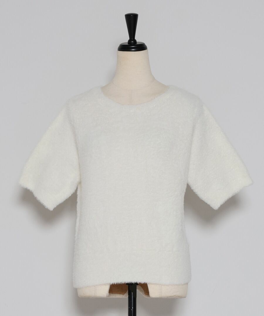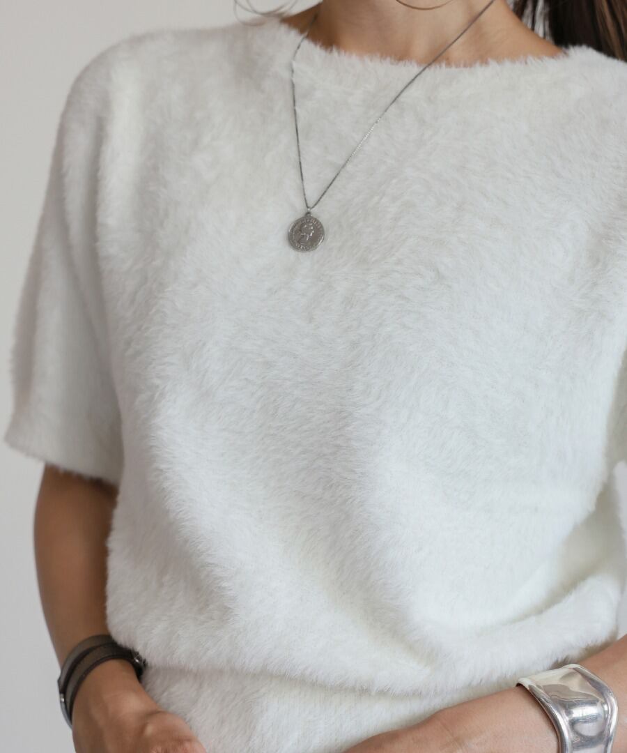 柔らかなフェザーニット素材が、軽やかで上品な表情を演出する半袖ニットプルオーバー。