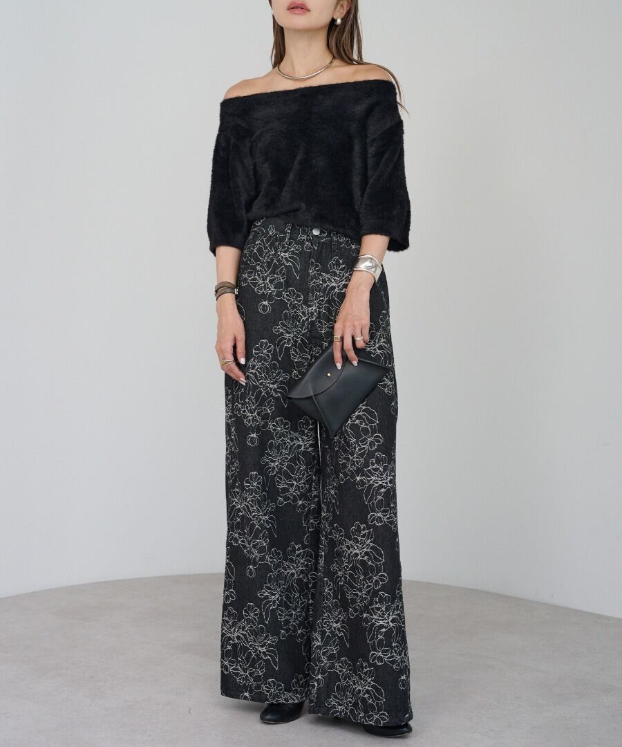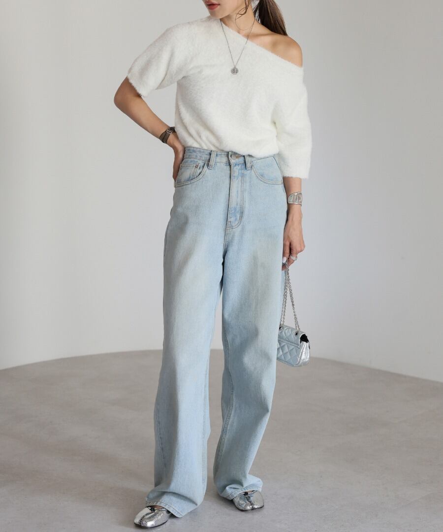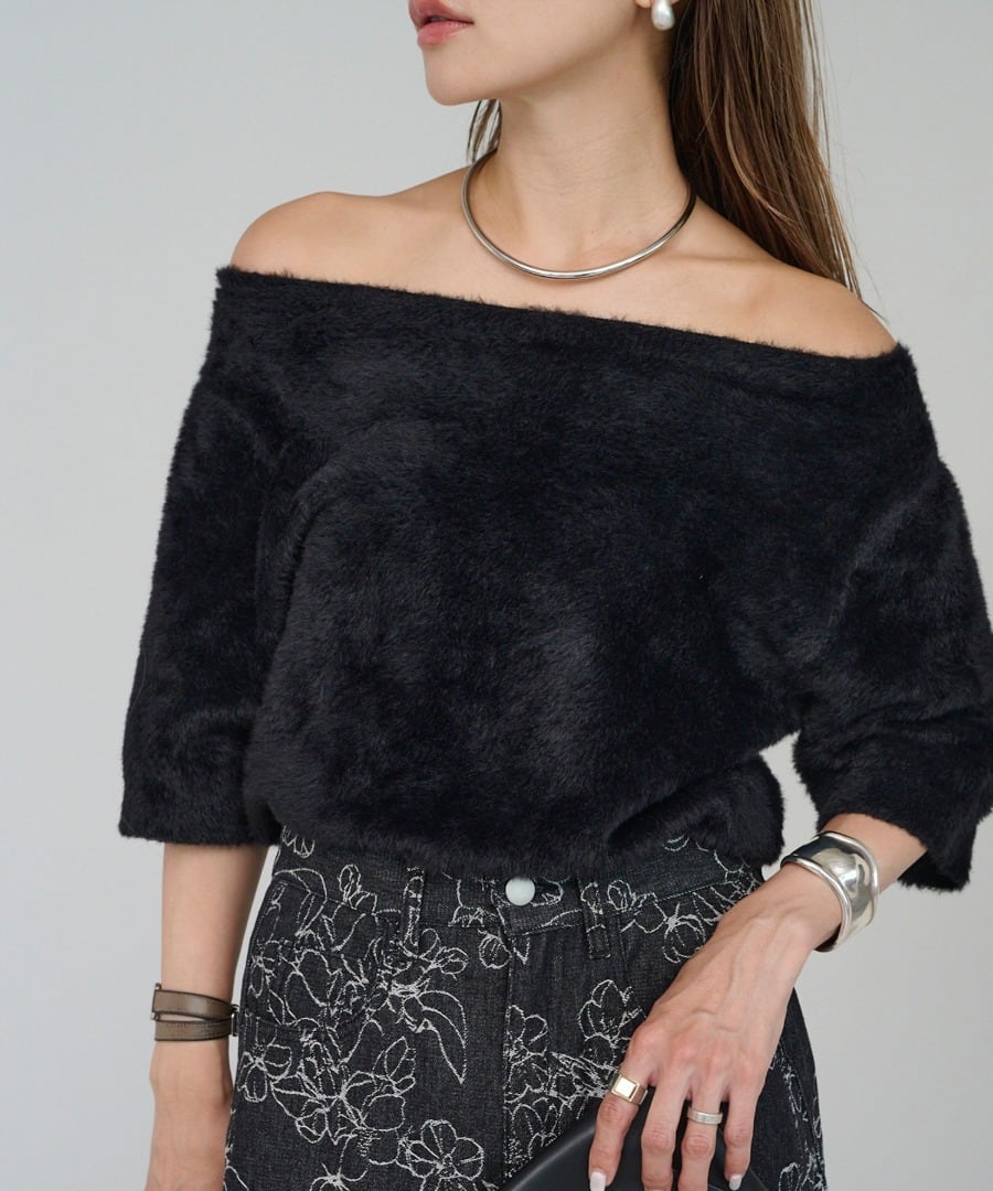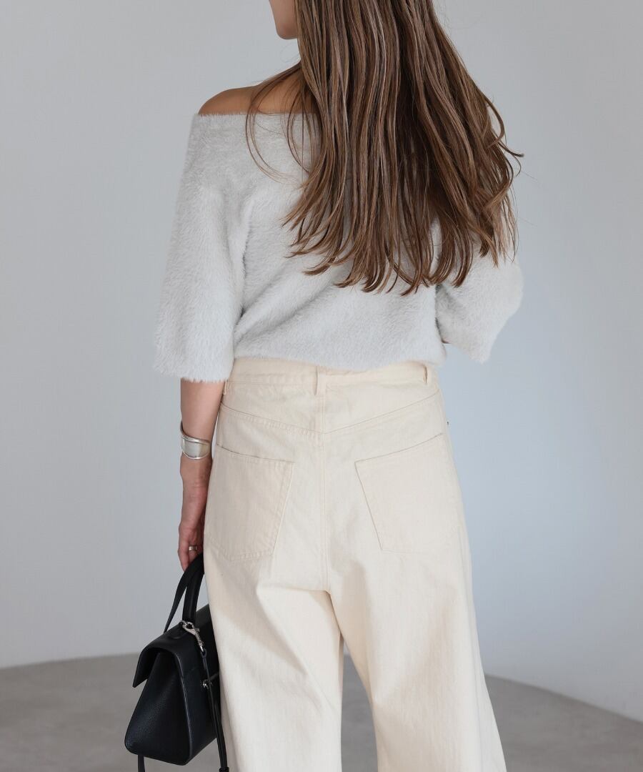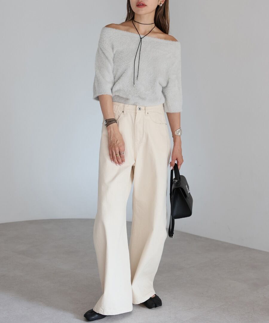 毛足のある素材感が、トレンドライクなフェザーニットの魅力を際立てます。