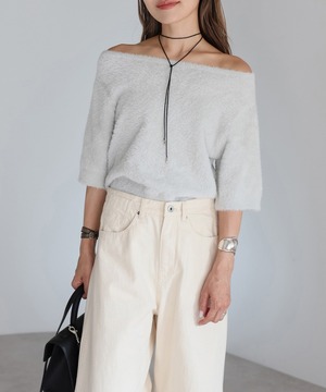 マルチネックハーフスリーブフェザーニット【t-10624】.