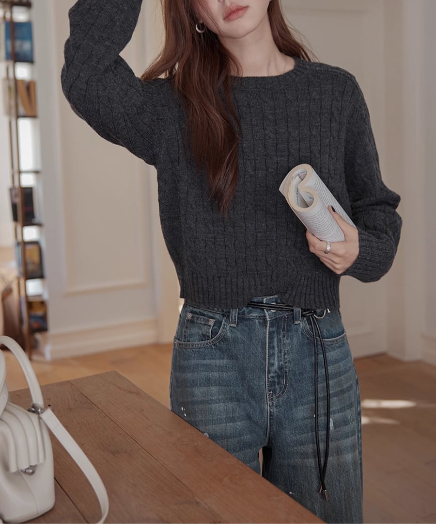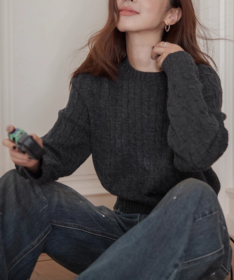 温もりとスタイルを両立したケーブルニットセーター。