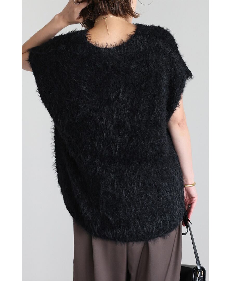 ファーライクな質感が映えるシャギーニットベスト