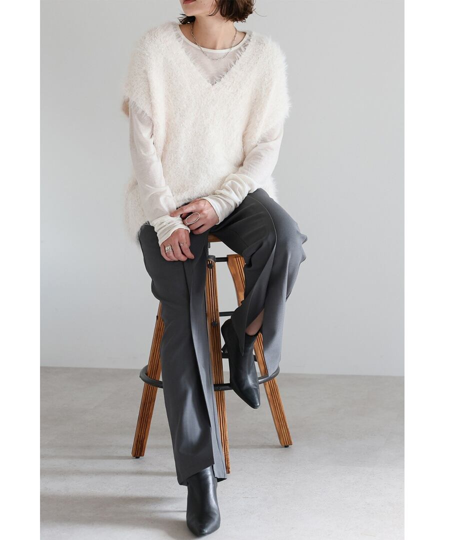 トレンドを意識したシャギーニットとして、スタイリングに華やかさを添えるアイテムです。