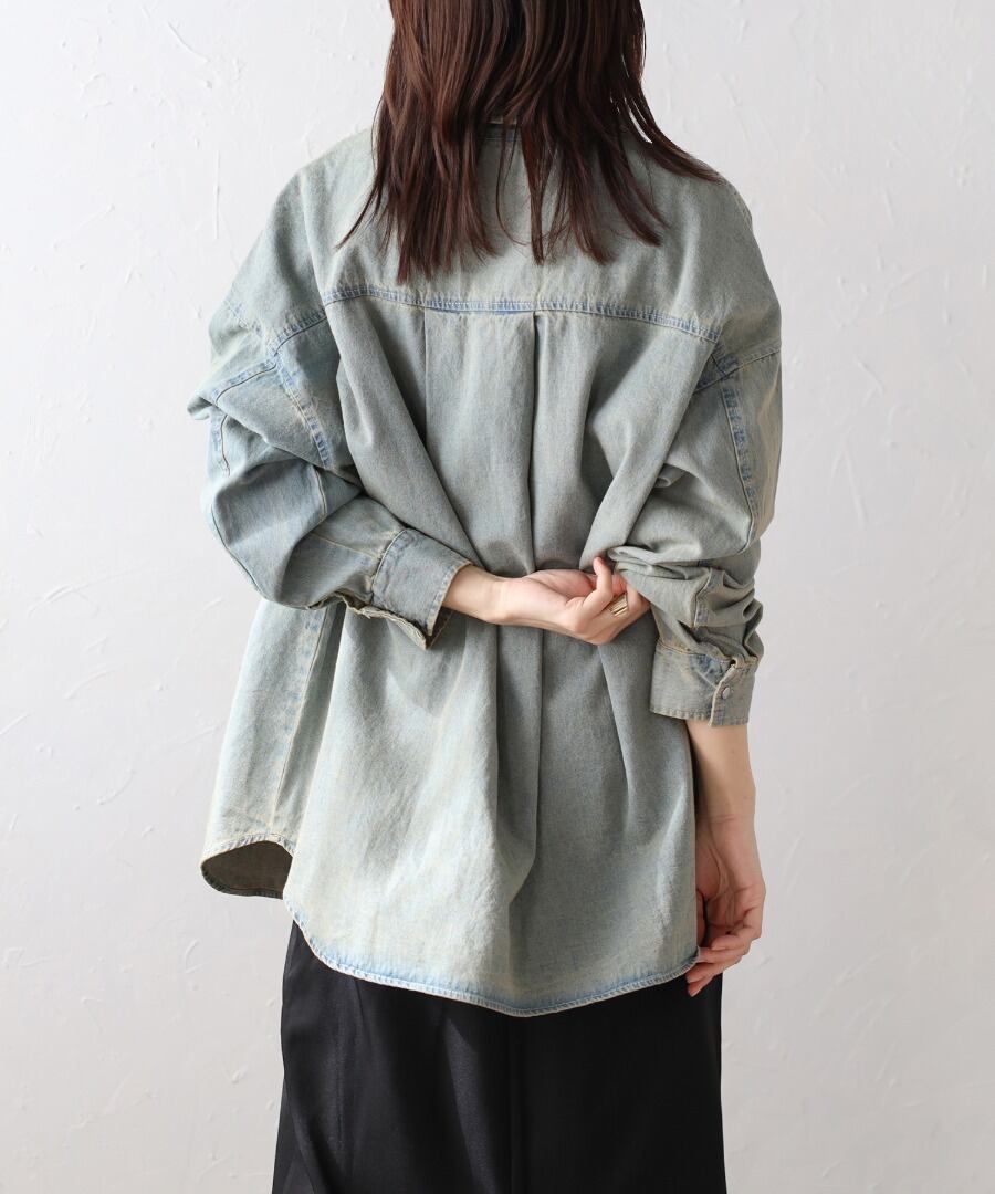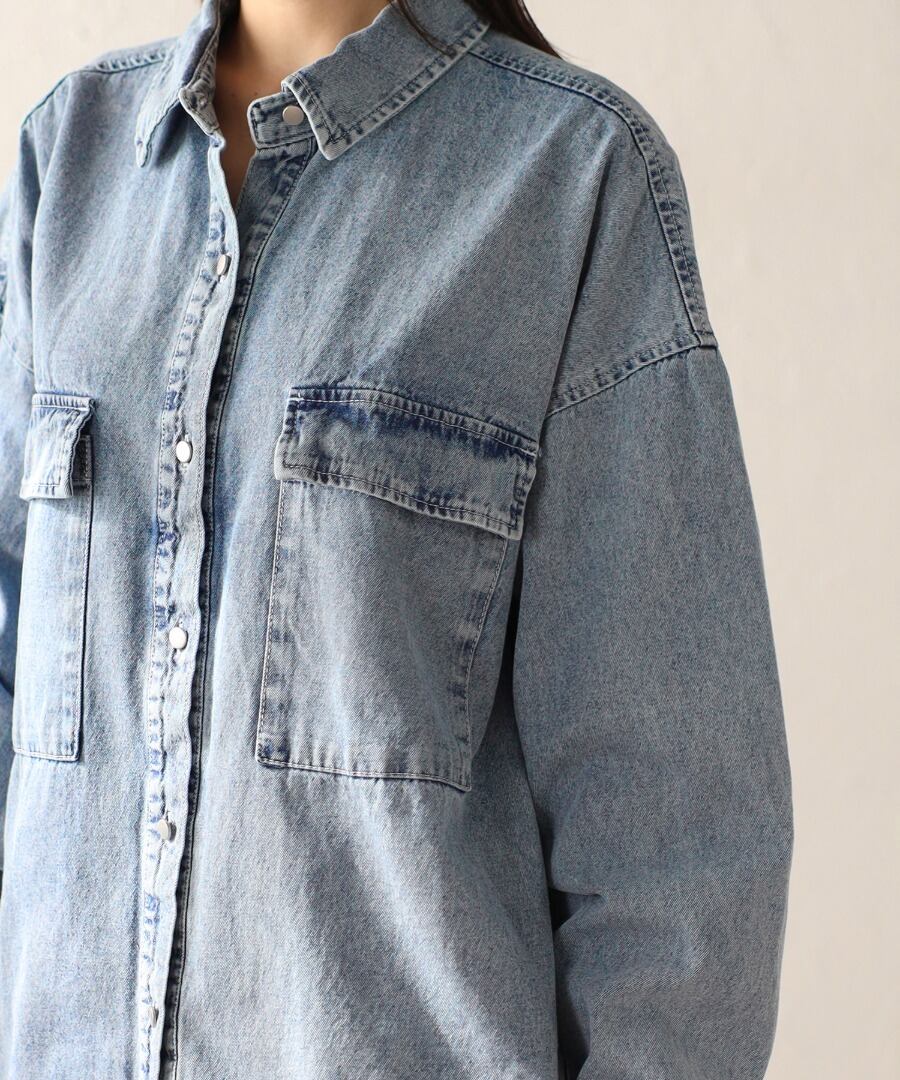 シルバーボタンオーバーサイズ8ozデニムシャツ【t-10514】.