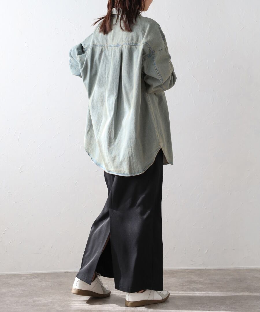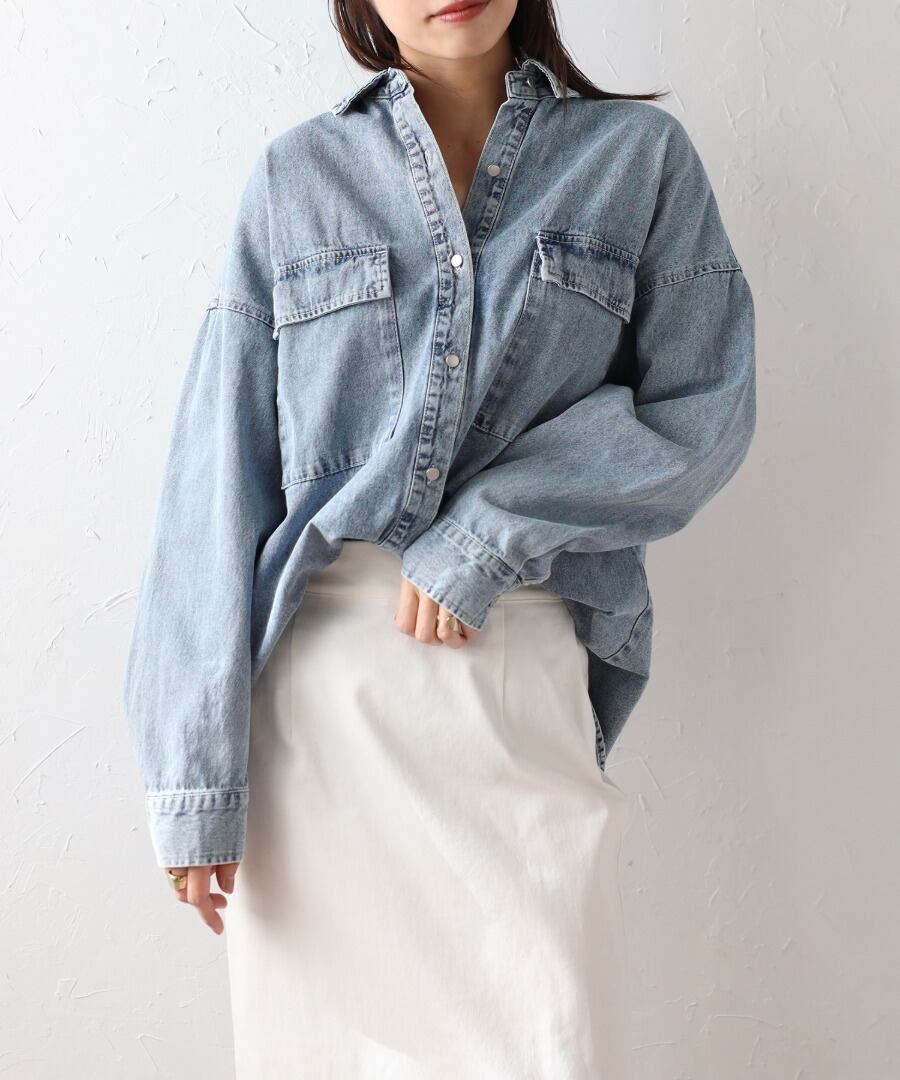 ゆったりとしたシルエットが魅力のビッグデニムシャツ。