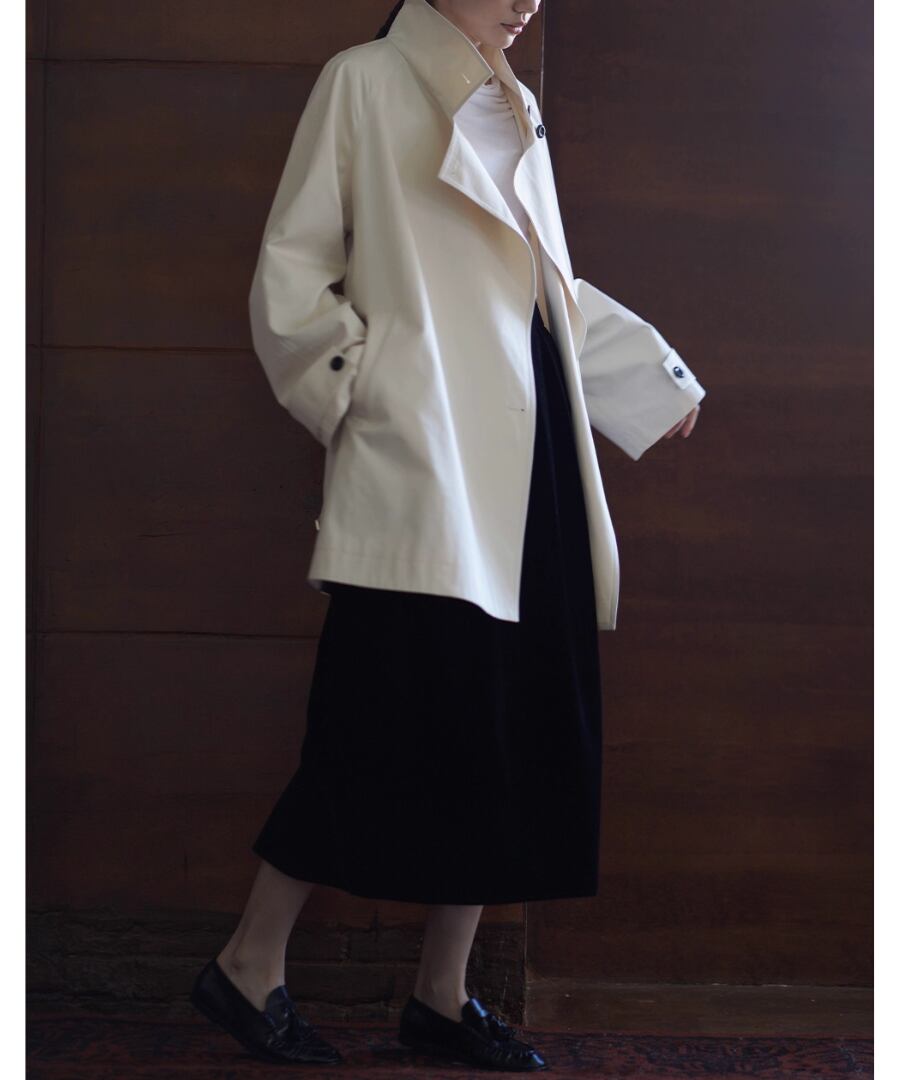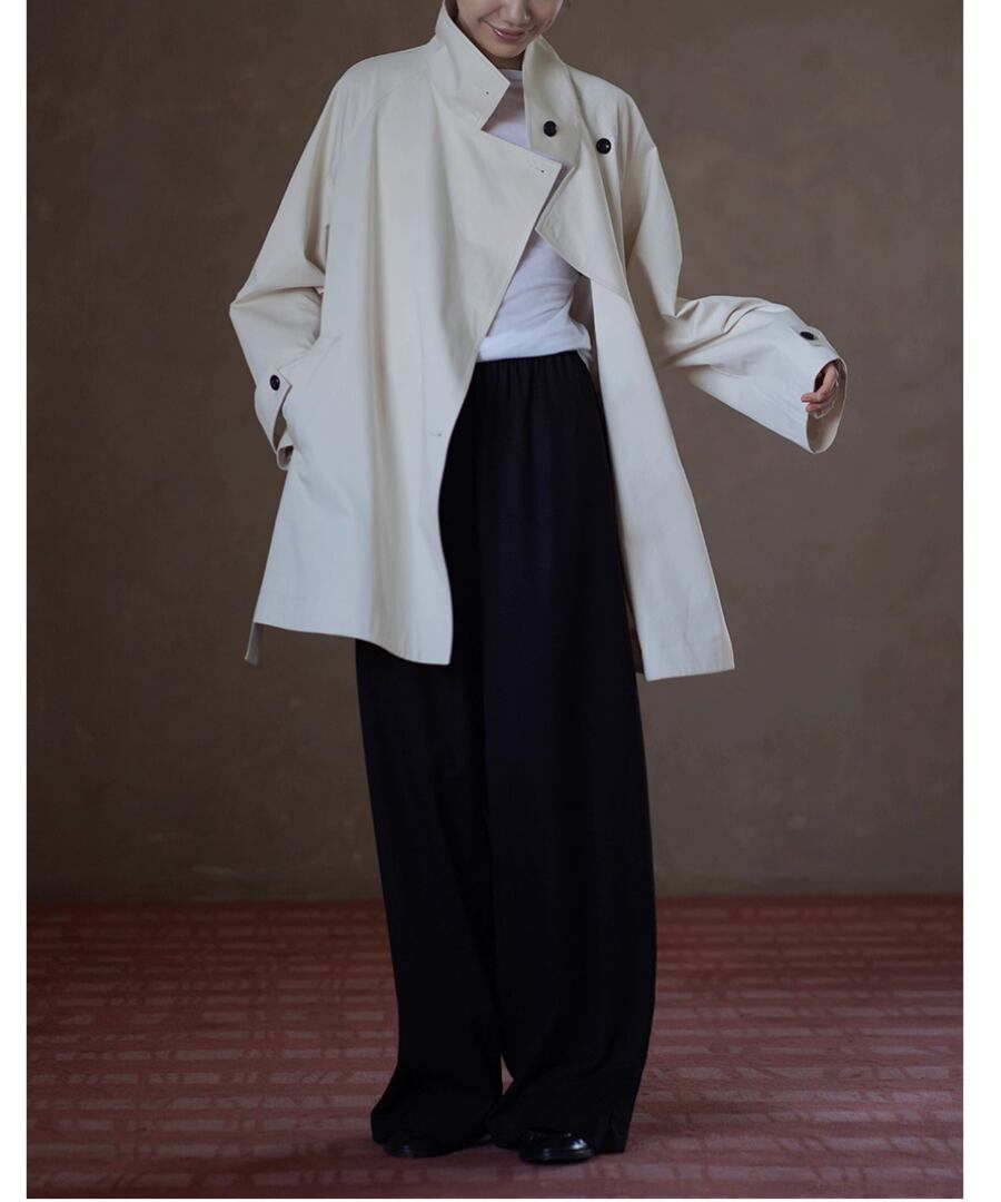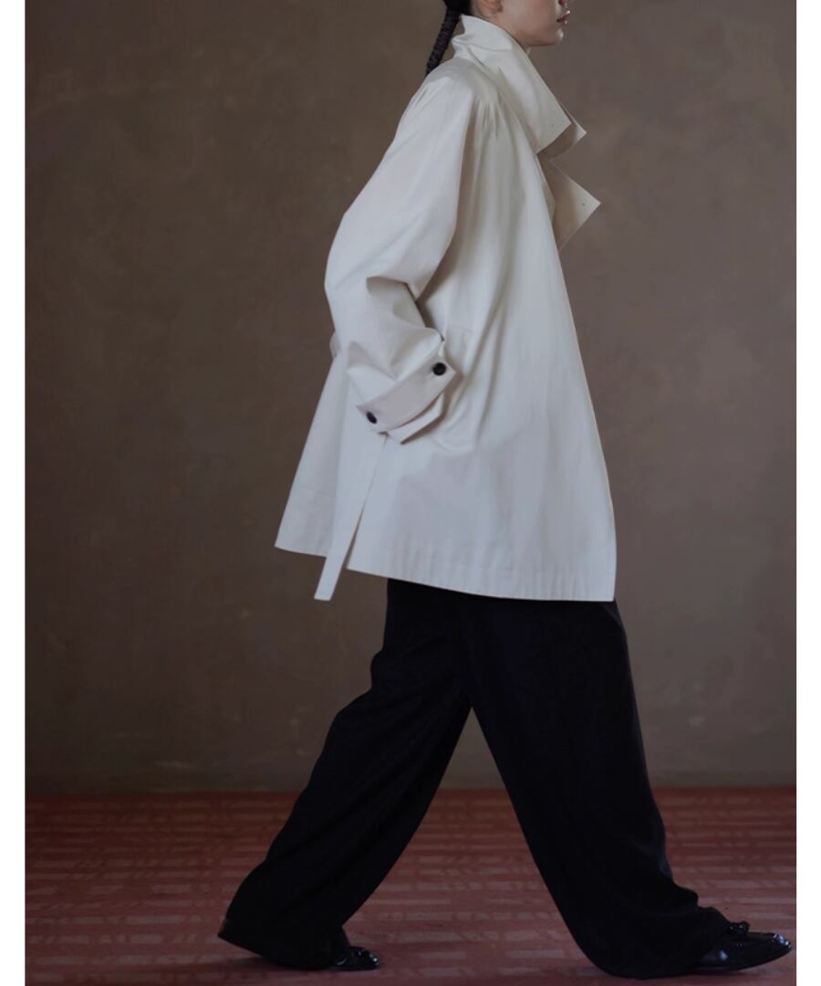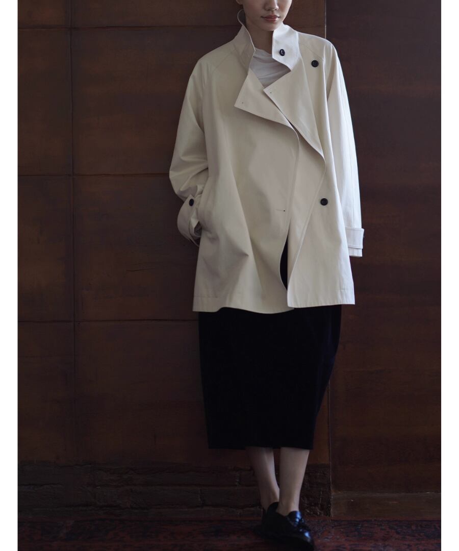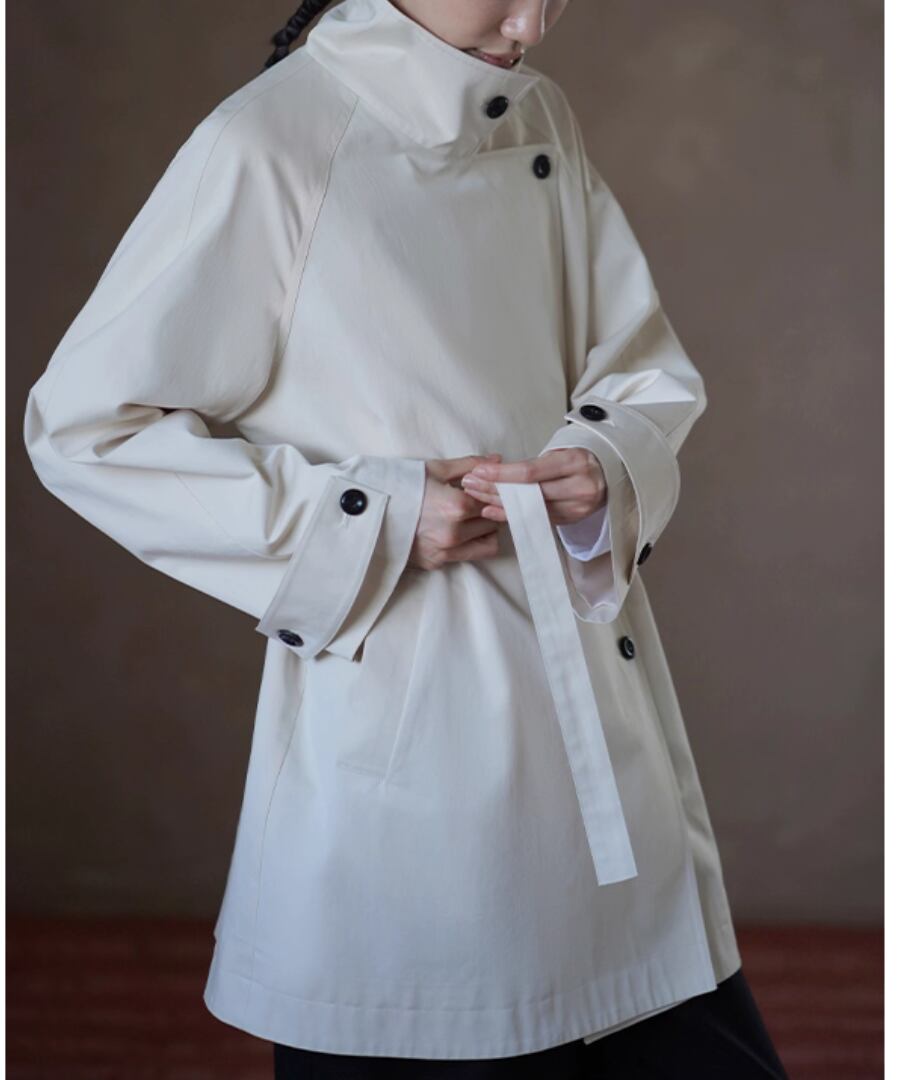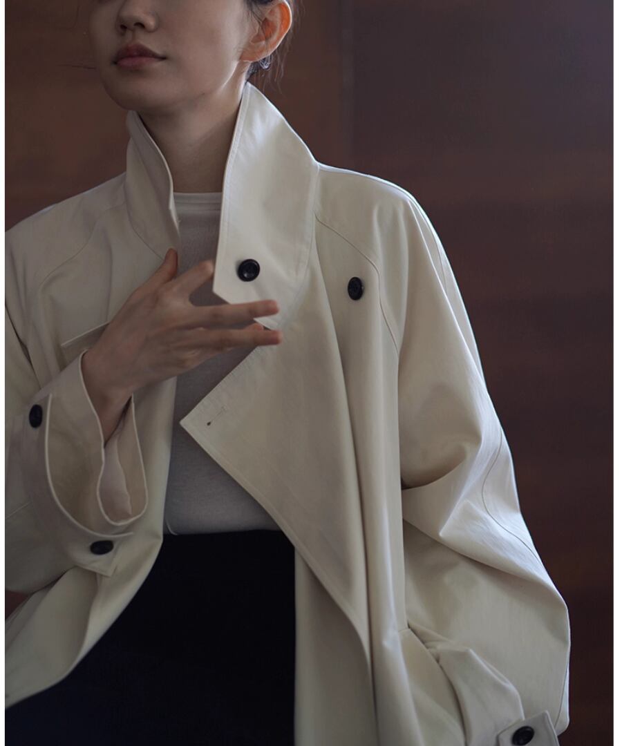 エレガントなシルエットと、トレンチコートならではのディテールが施されており、上質なファッションセンスを感じさせます。