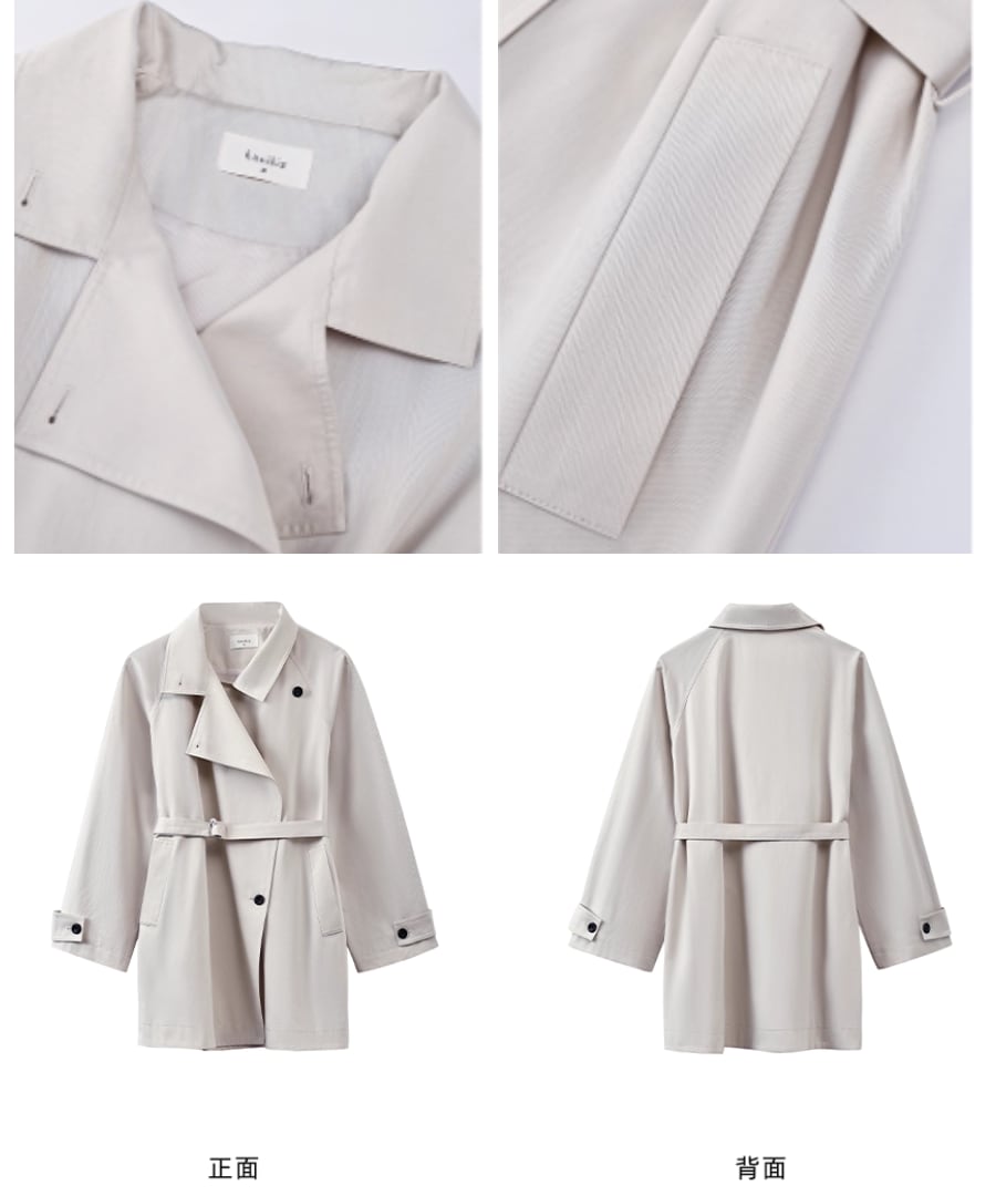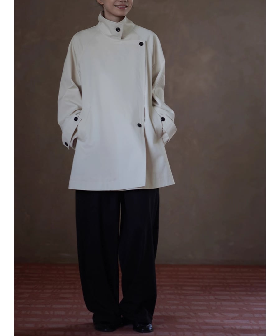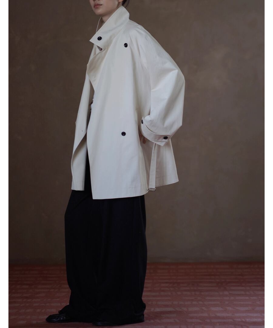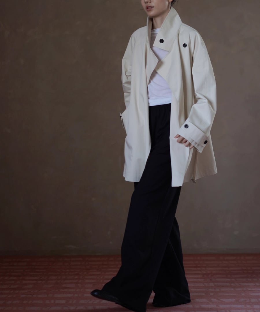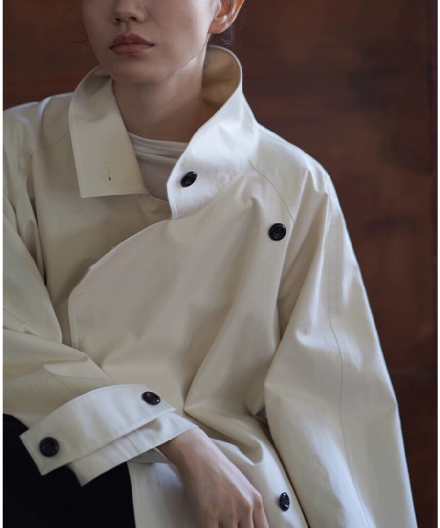 エレガントなシルエットと、トレンチコートならではのディテールが施されており、上質なファッションセンスを感じさせます。