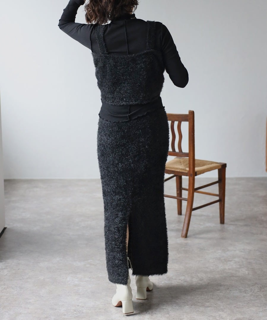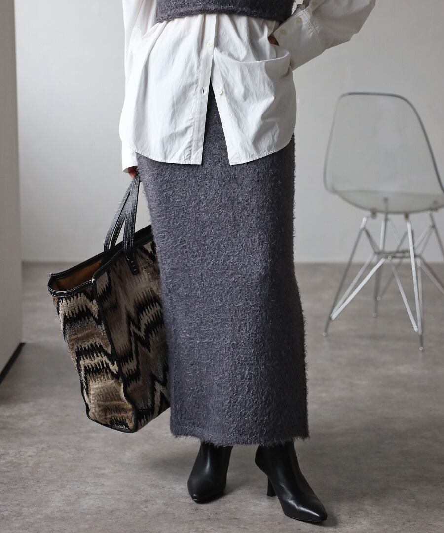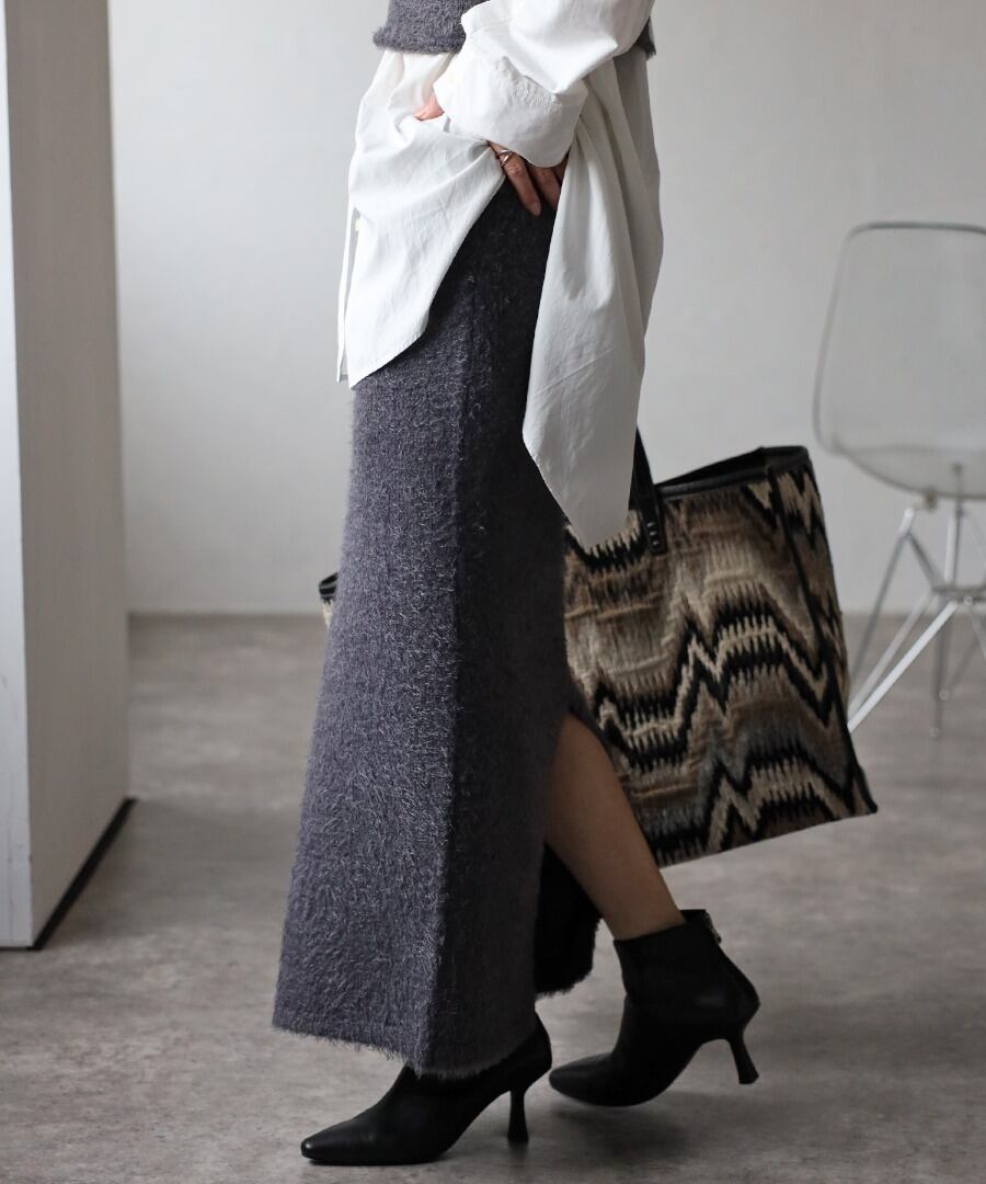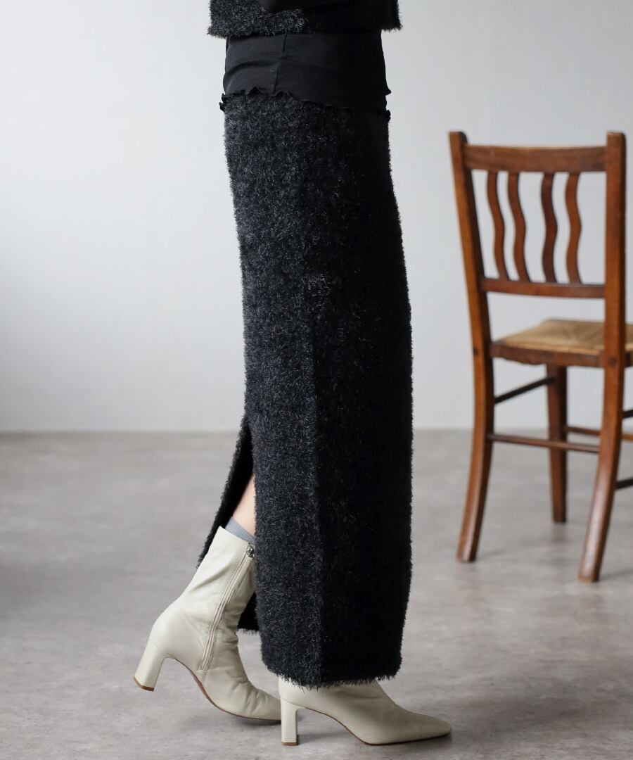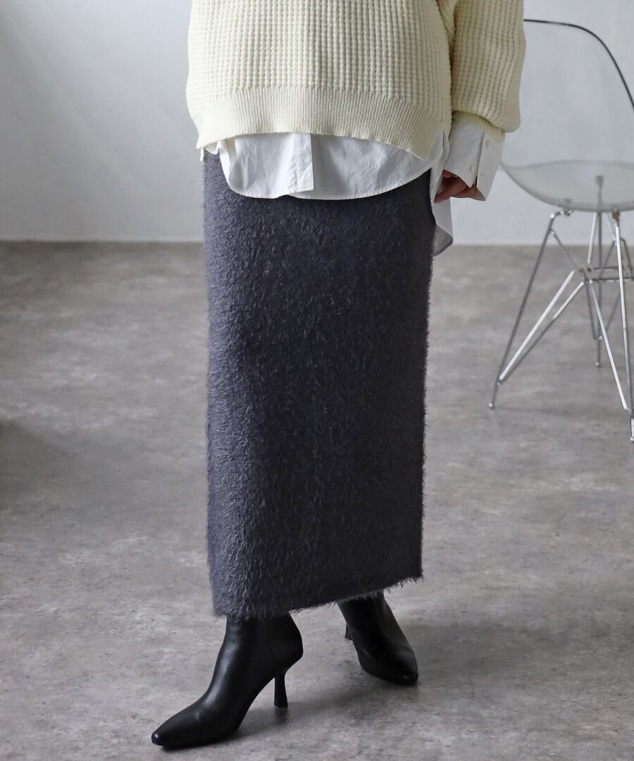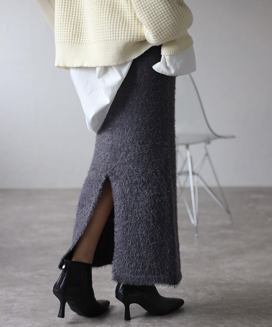 トレンドライクな毛足のあるシャギーニット素材のタイトスカート。