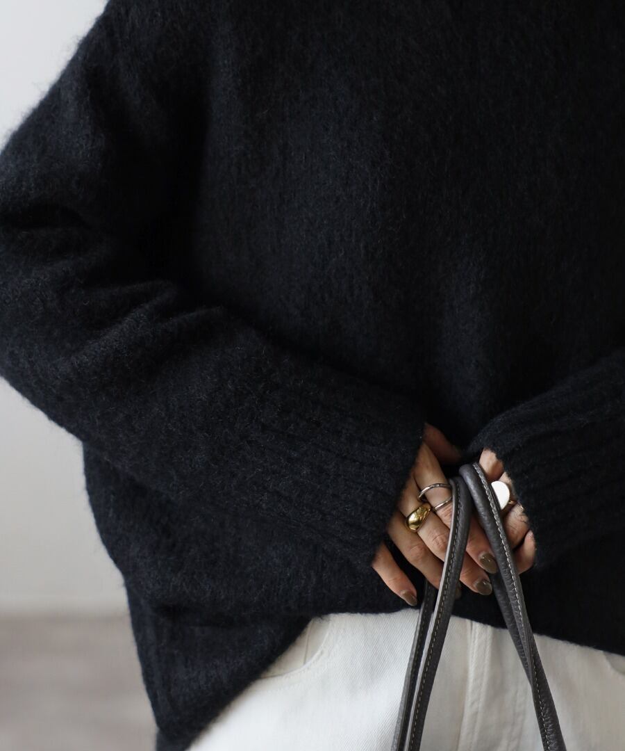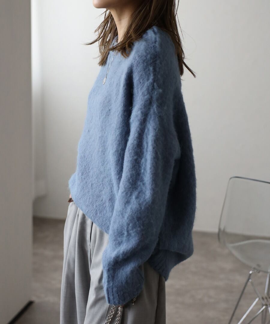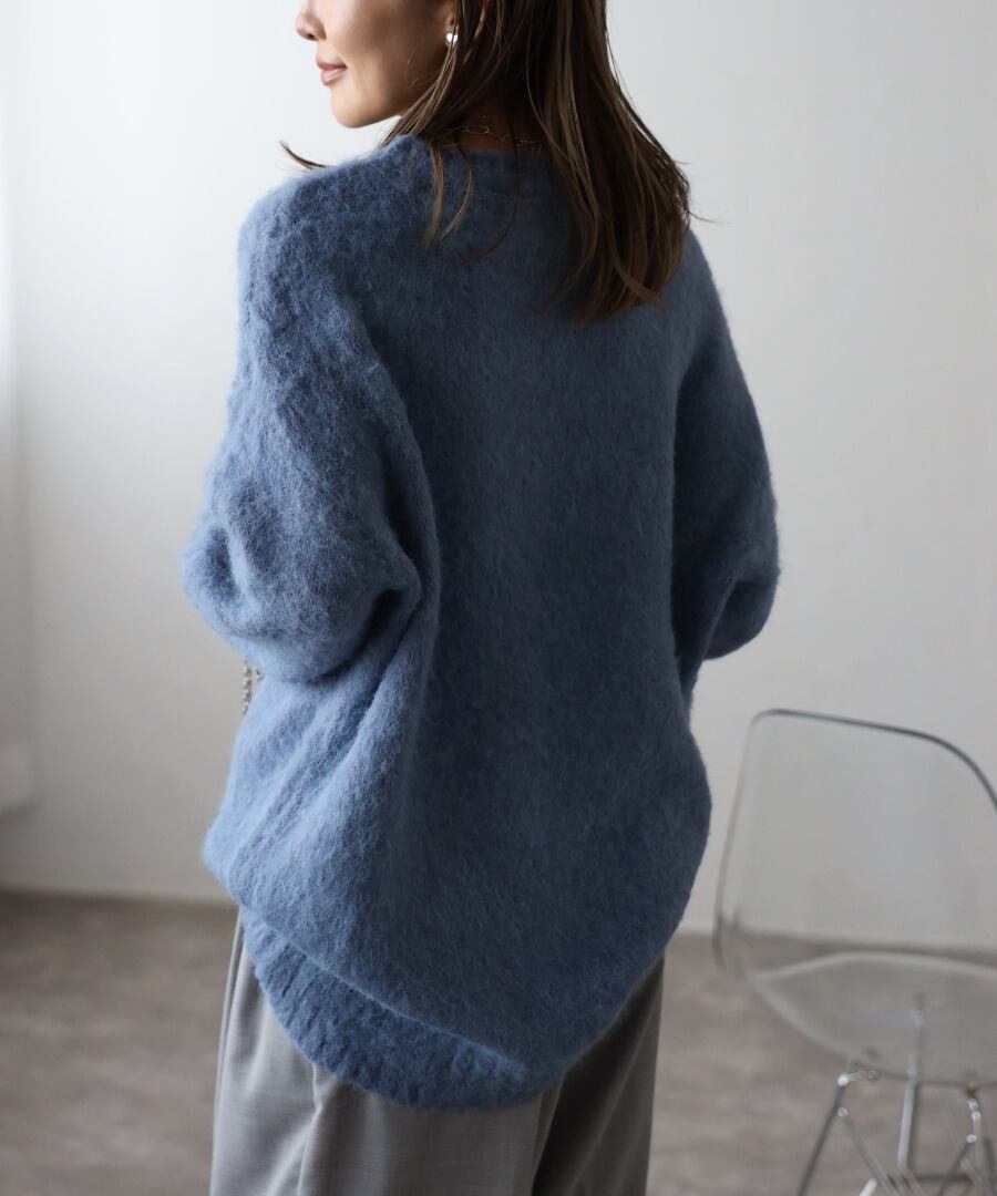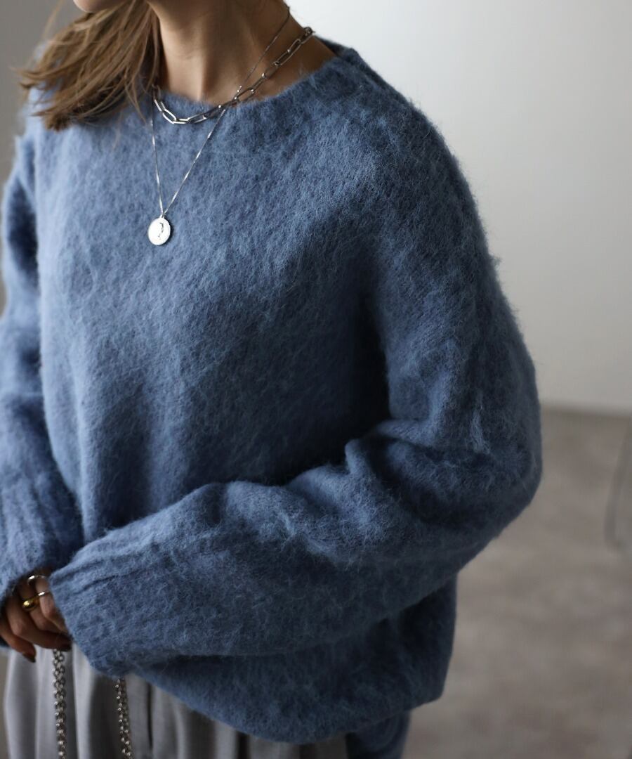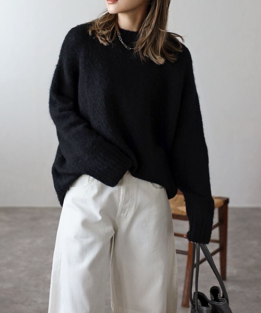 程良く長すぎない毛足でふわっとした肌触りのシャギーニット。