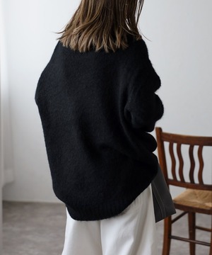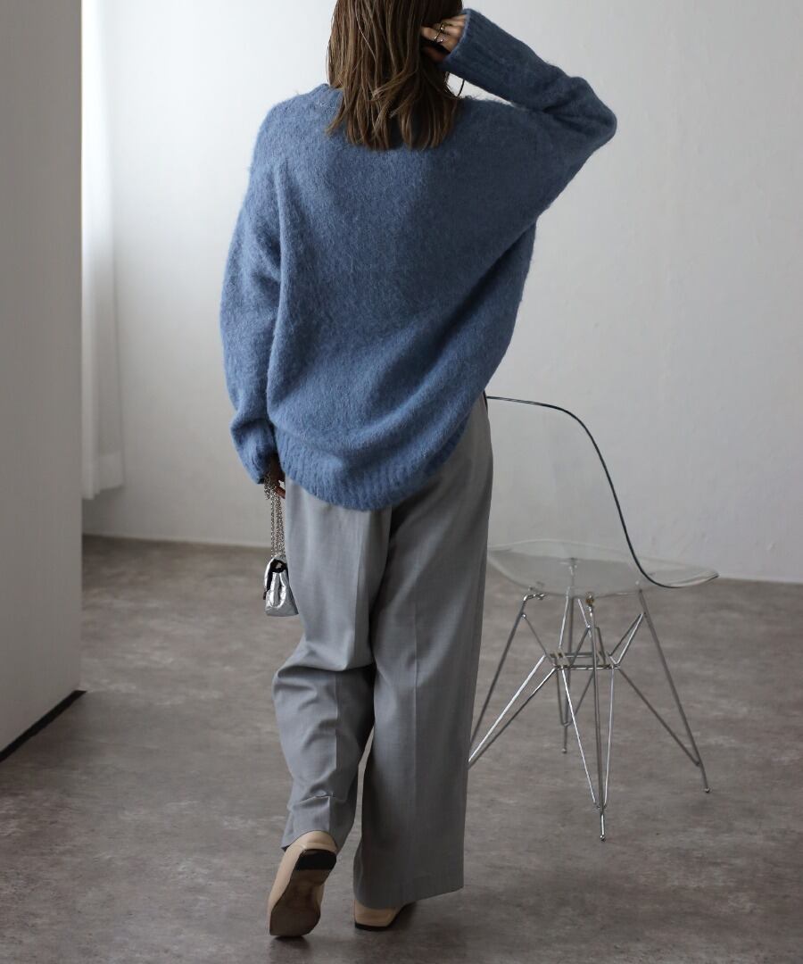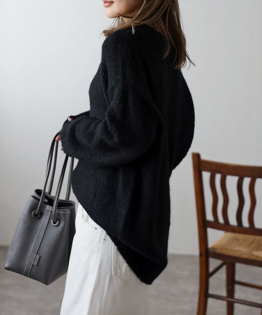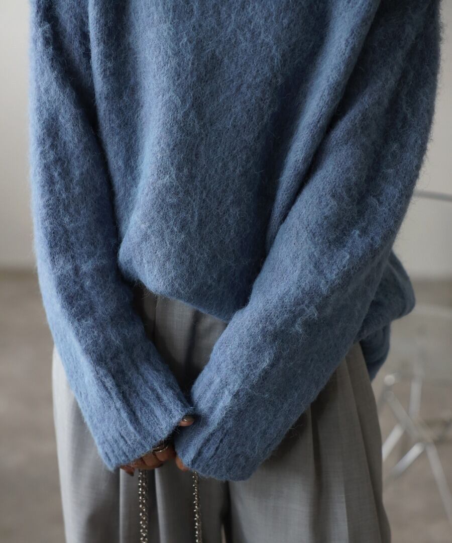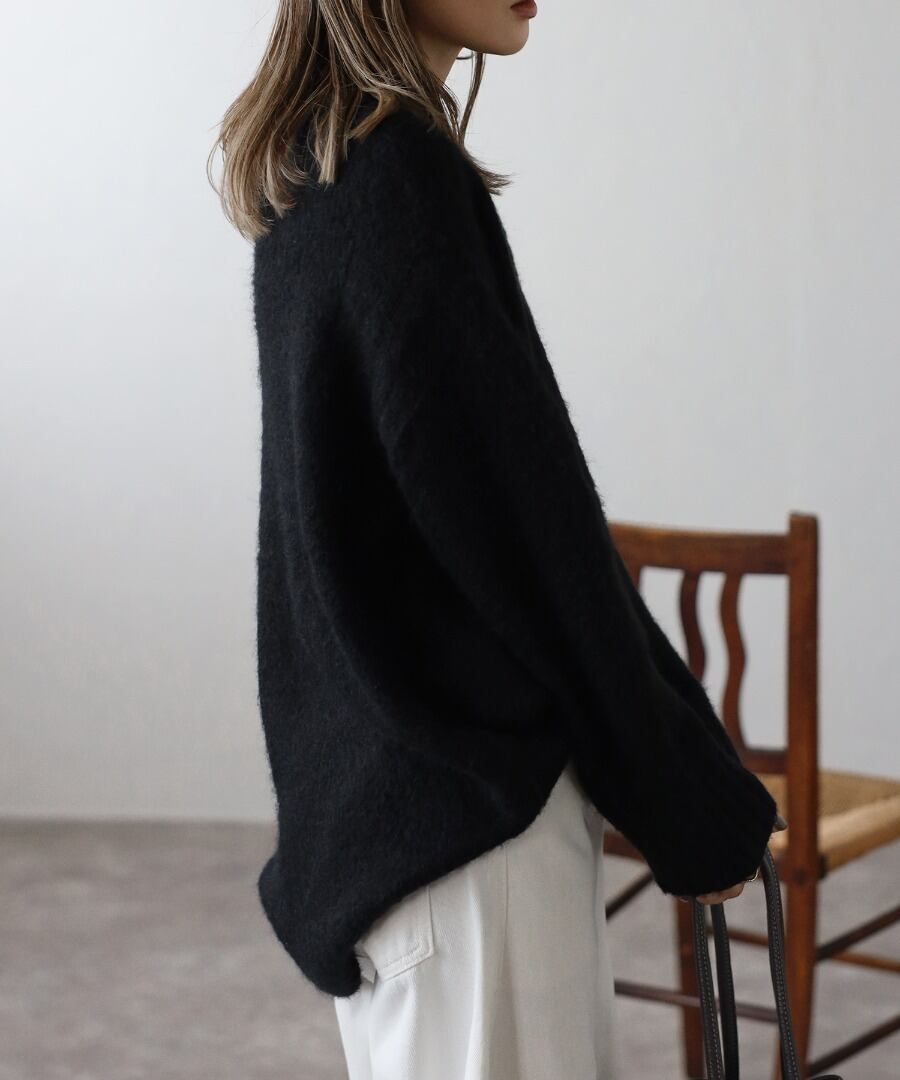 程良く長すぎない毛足でふわっとした肌触りのシャギーニット。