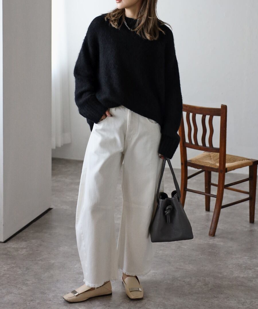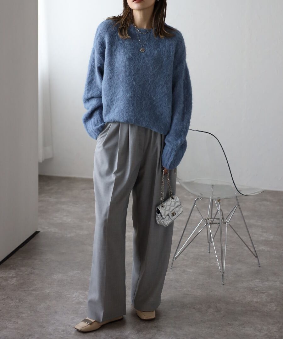着回し力抜群で上品に着られるシャギーニットはワードローブに加えたいトレンドアイテムです。