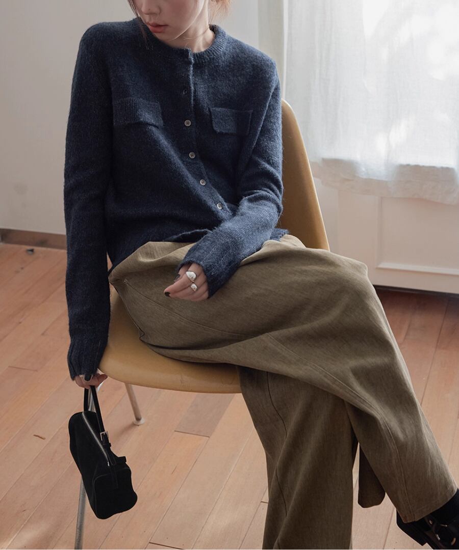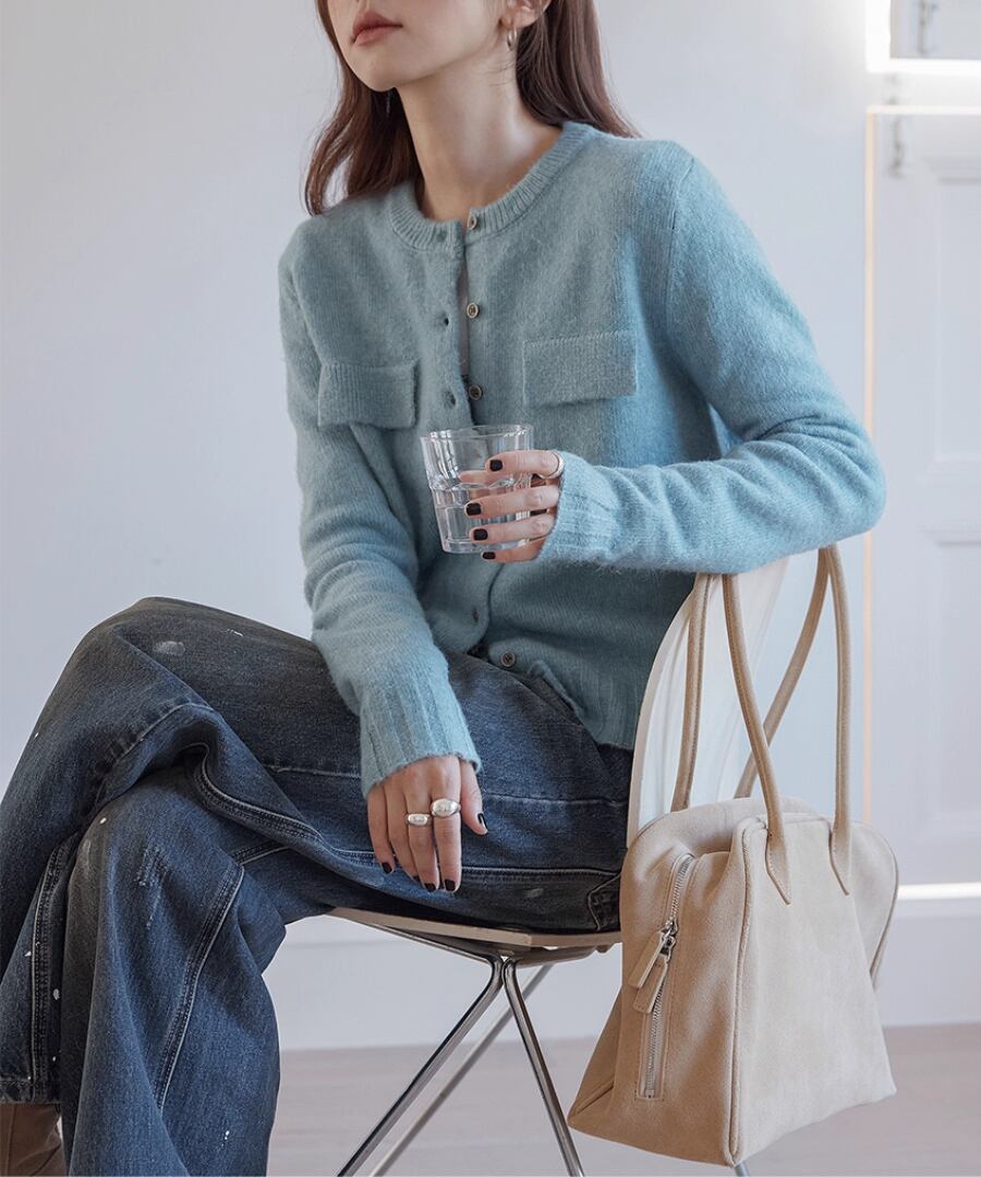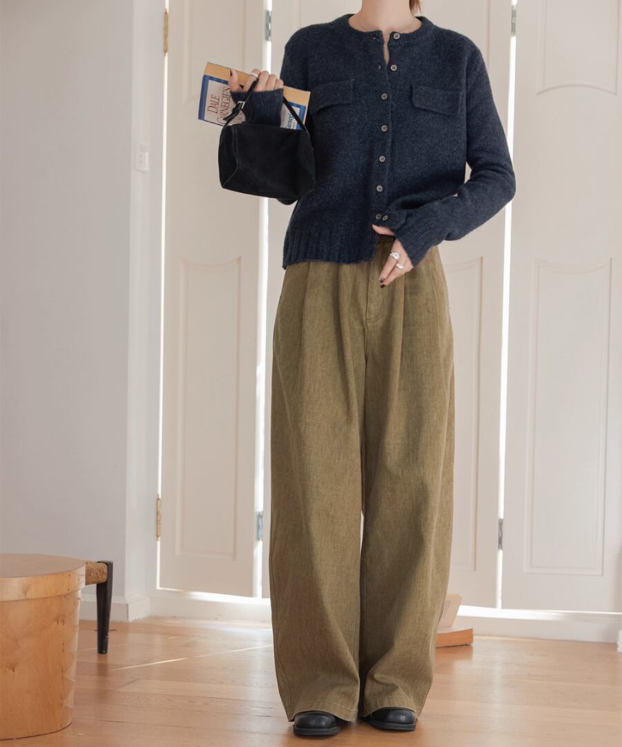 優しく織り込んだウール混紡生地は、柔らかく繊細な手触りです。