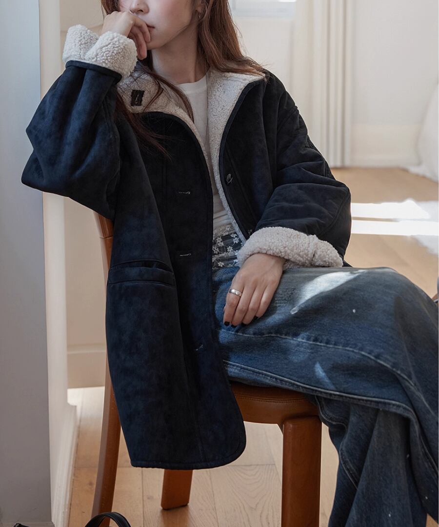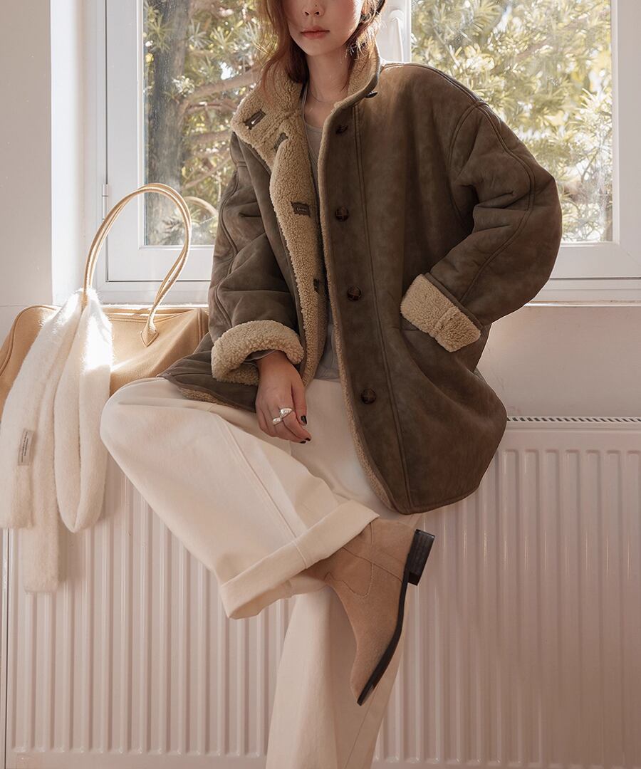 長めの丈感で身体を包み込み暖かさを逃がしません。