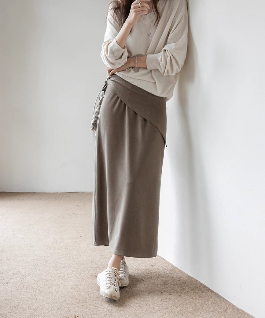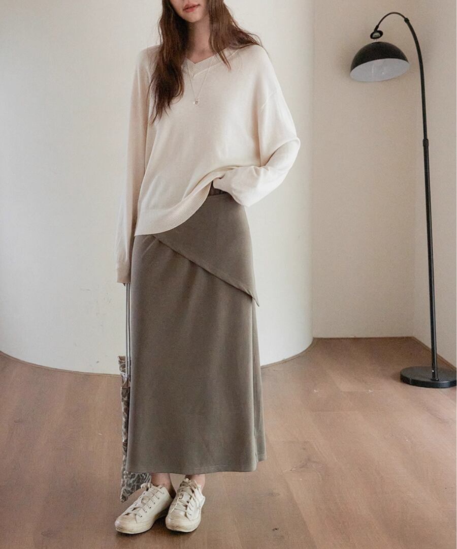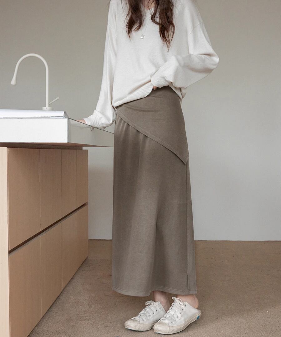 テンセル素材を使用したこのロングスカートは、ストレッチ性に優れ、身動きが楽でとても快適。柔らかな風合いと落ち感が魅力です。