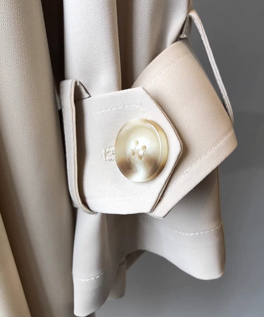ベルト付きなので、ウエストを引き締めて女性らしいシルエットを作ることもできます。