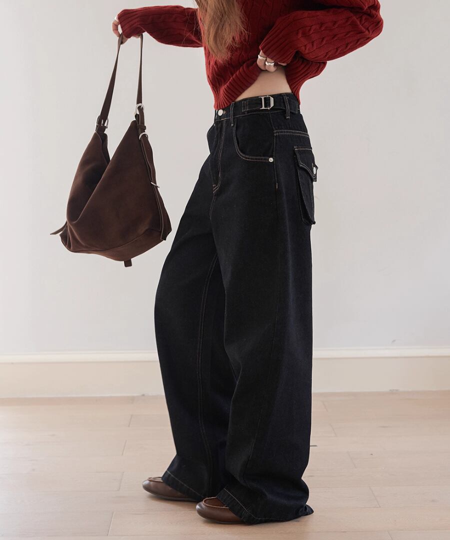 ウエスト調節可能◆ワークウェアポケットジーンズ【p-20307】