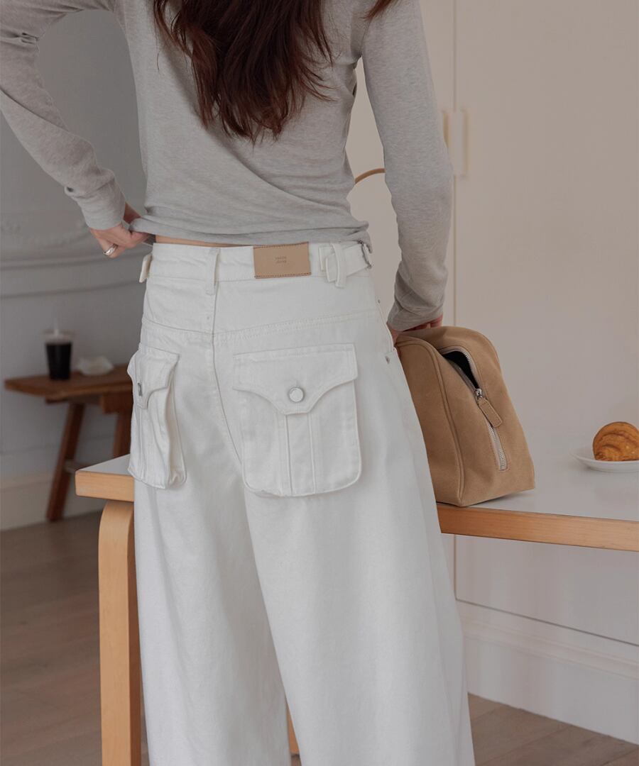 ワークウェア風のバックポケットが立体的でおしゃれです。