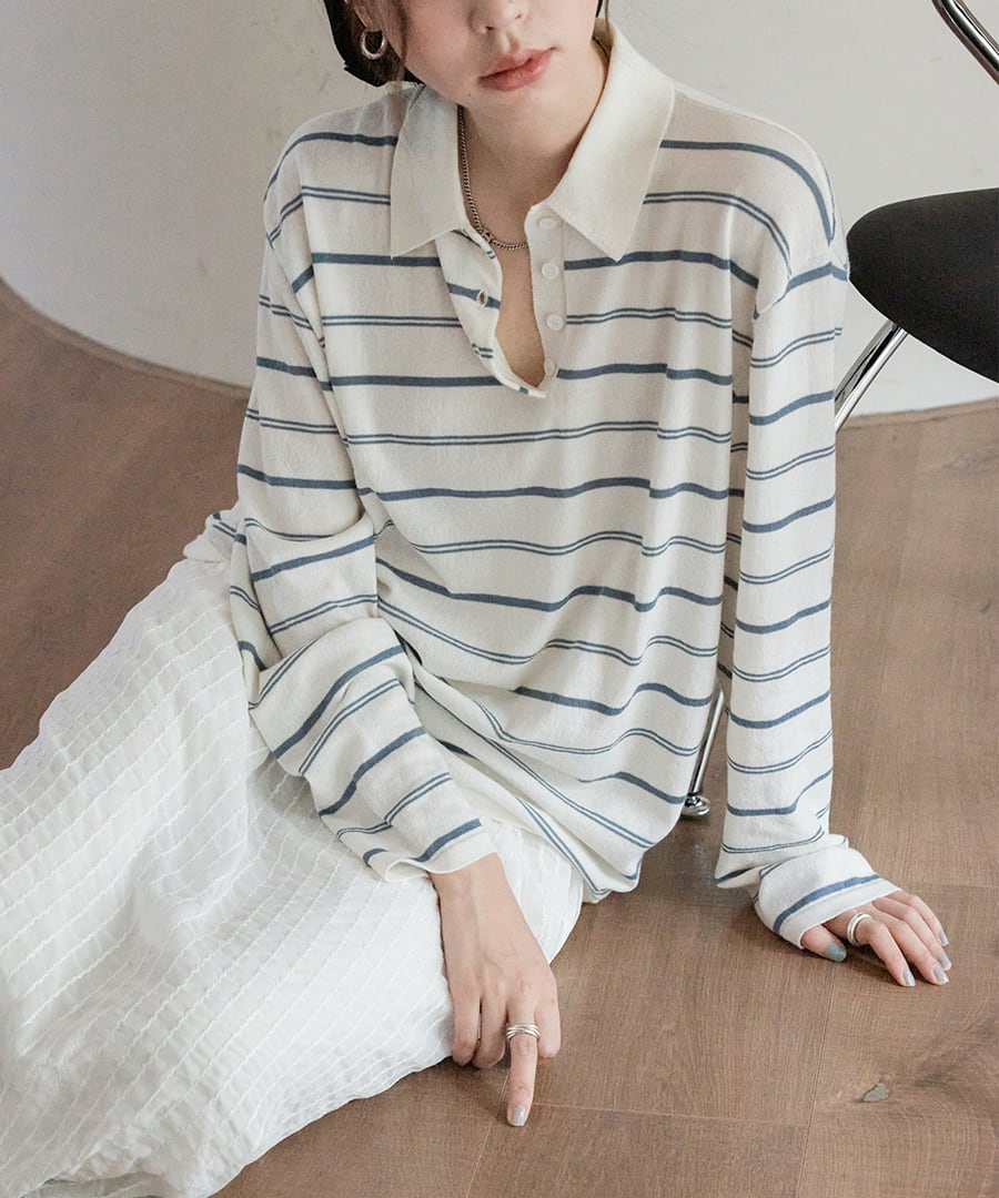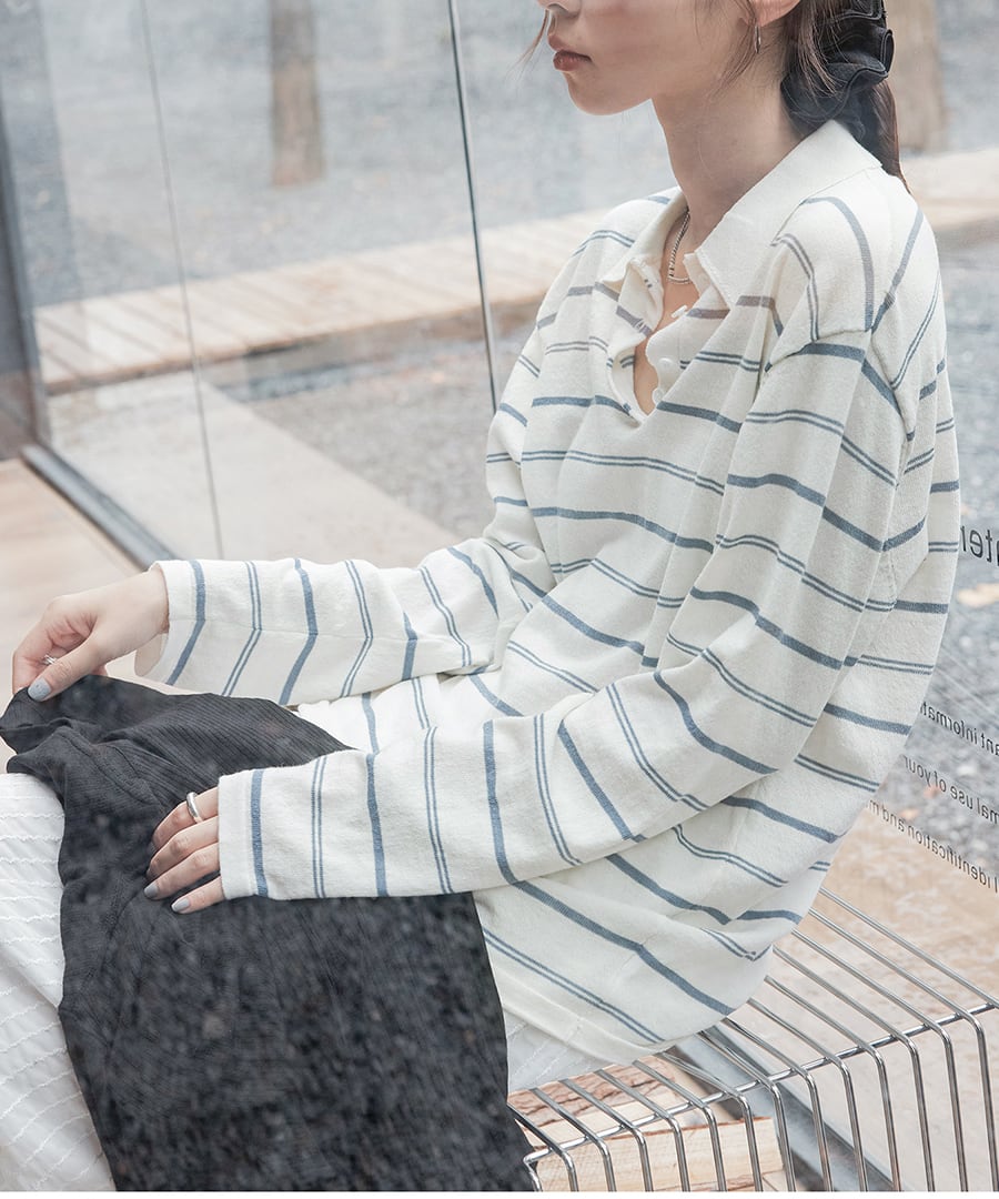ストライプ◆ポロニットT【t-11293】