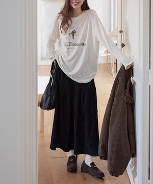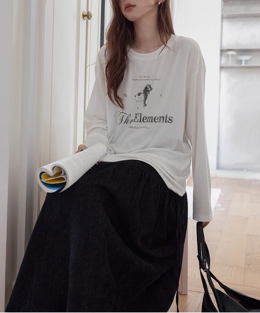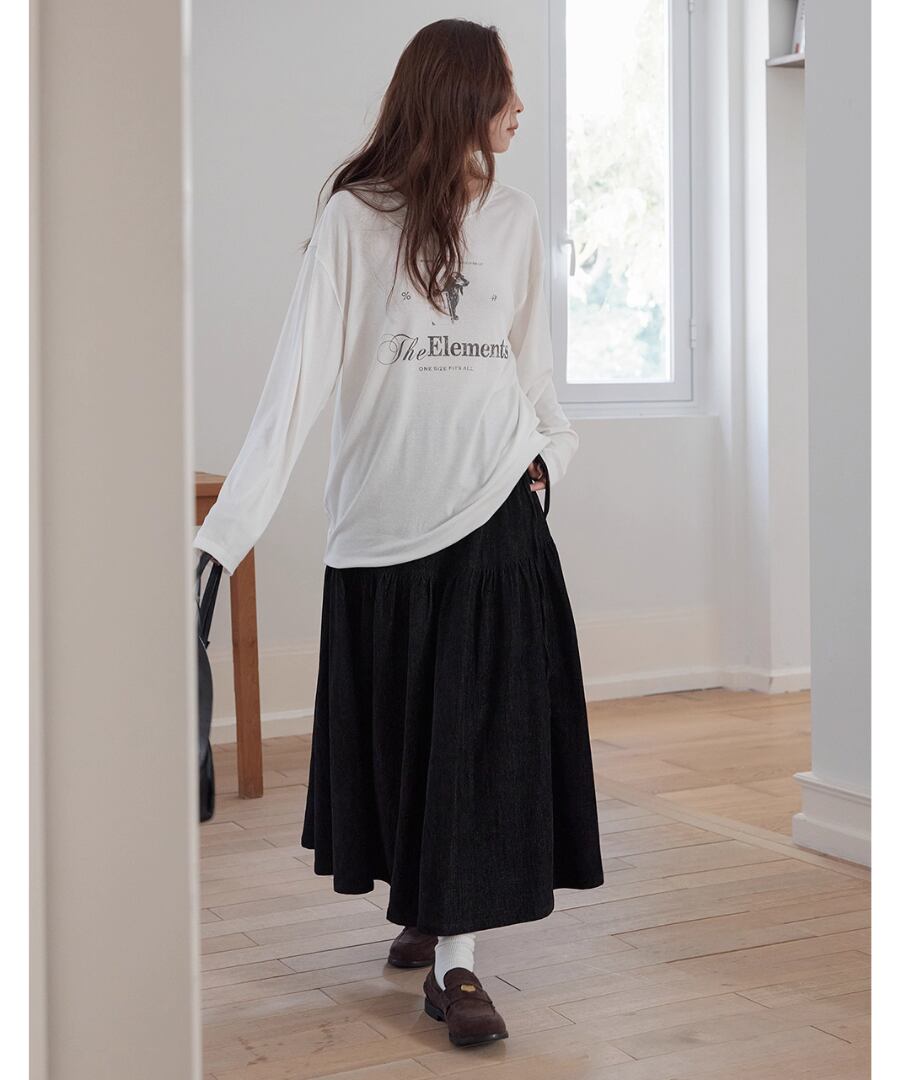 リラックスしたシルエットは、フレアパンツやスカートとも相性よく、シンプルながらもおしゃれなコーディネートを楽しめます。
