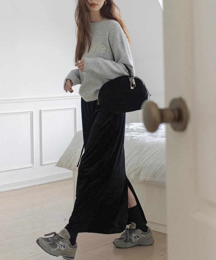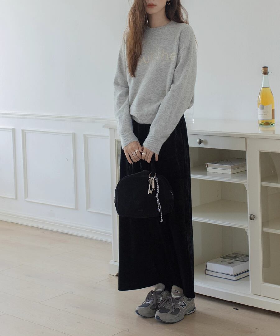 肩のラインをすっきりと見せるラウンドネックが、上品さを引き立てます。