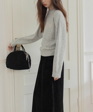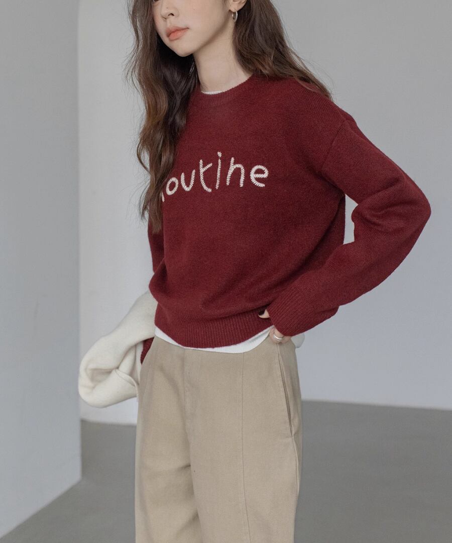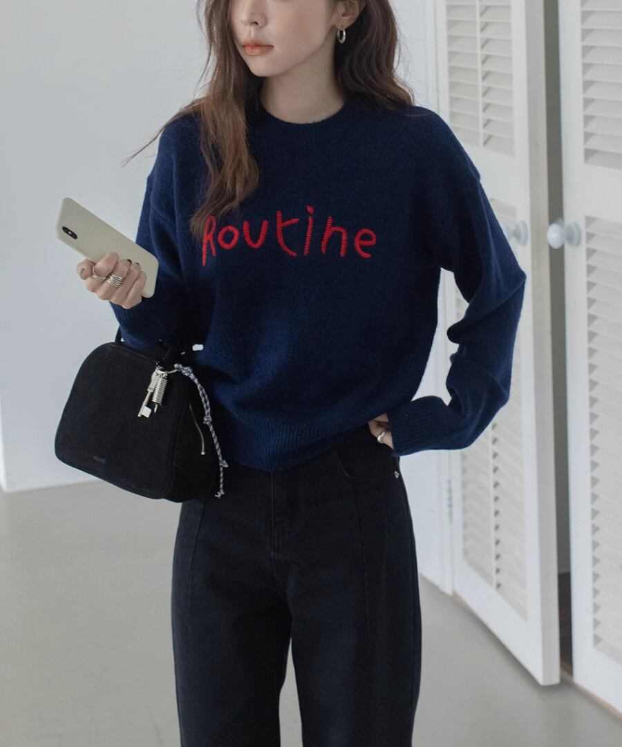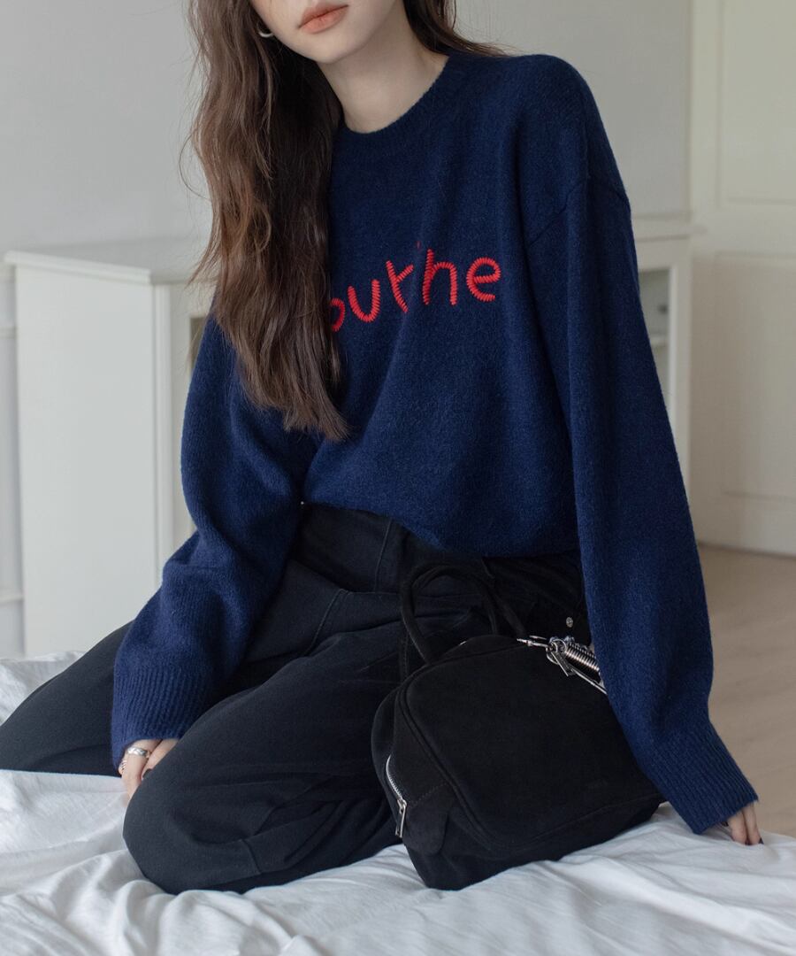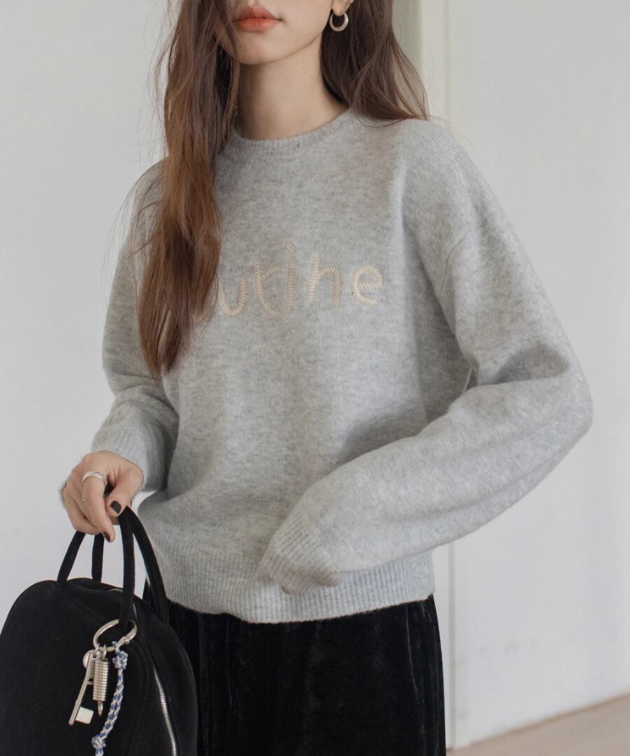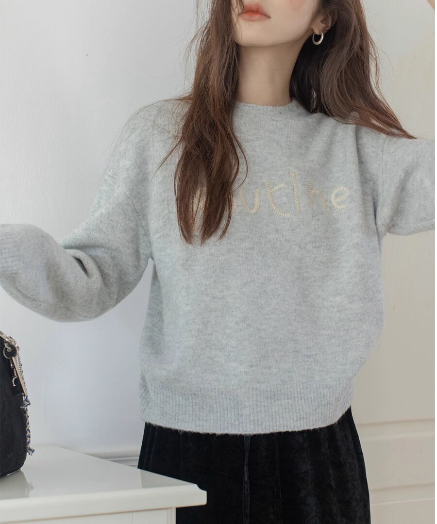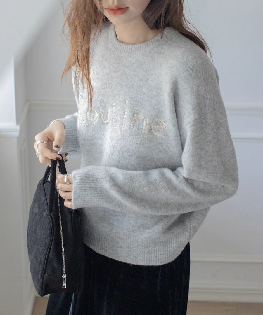 胸元の刺繍が特徴のラウンドネックセーター。