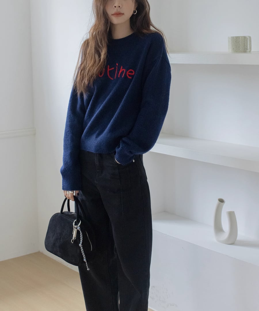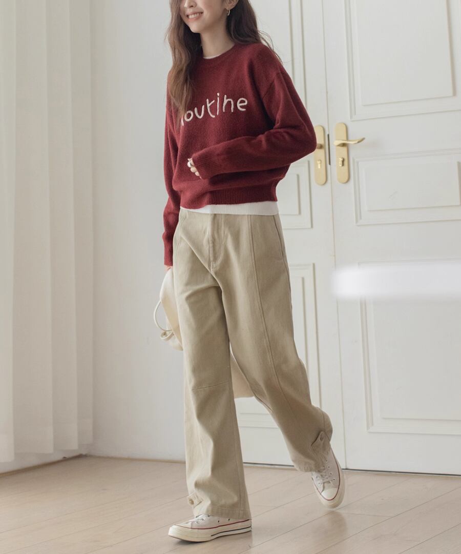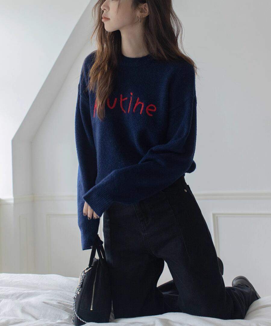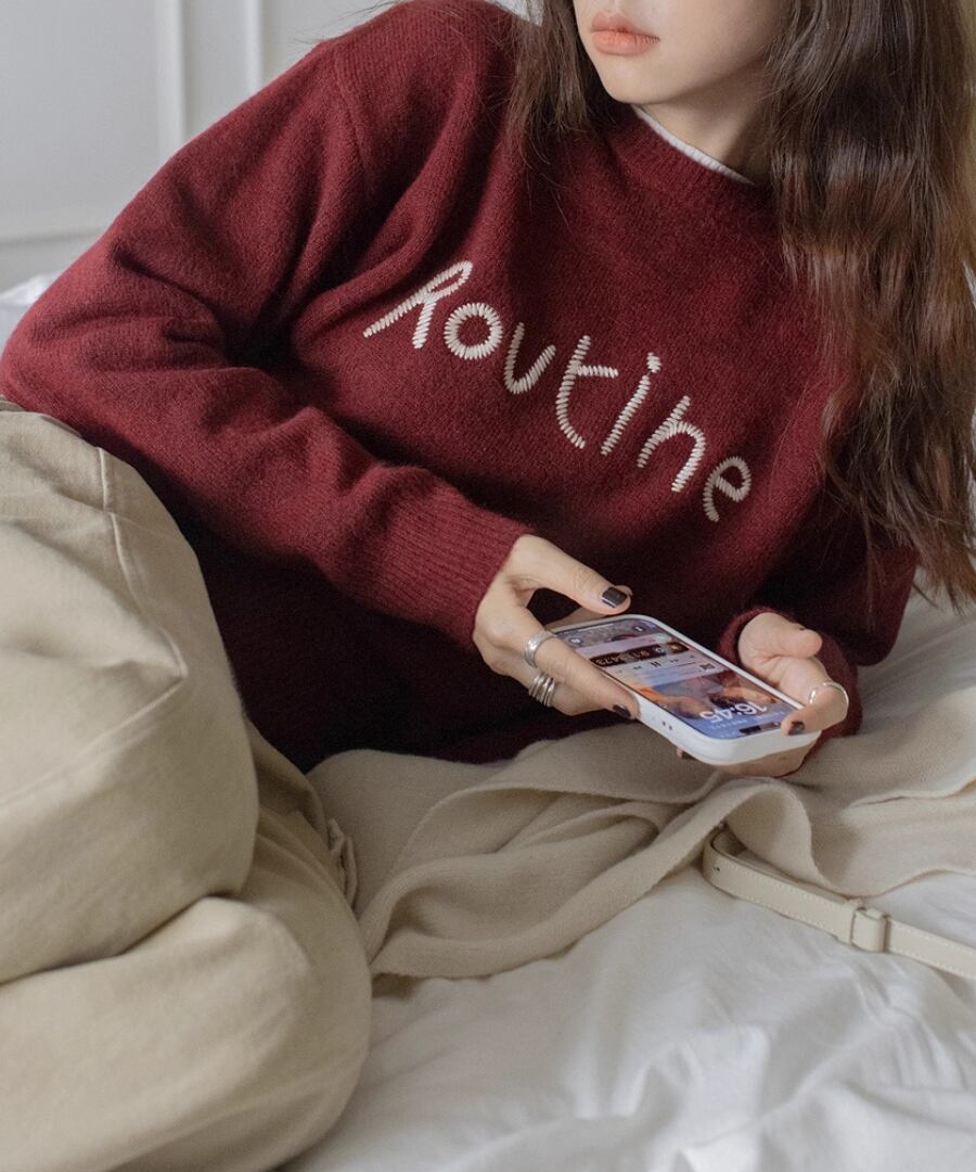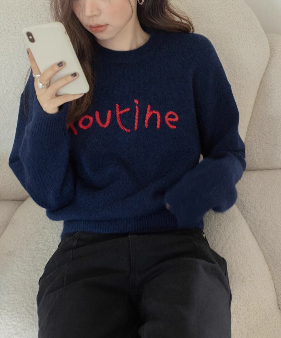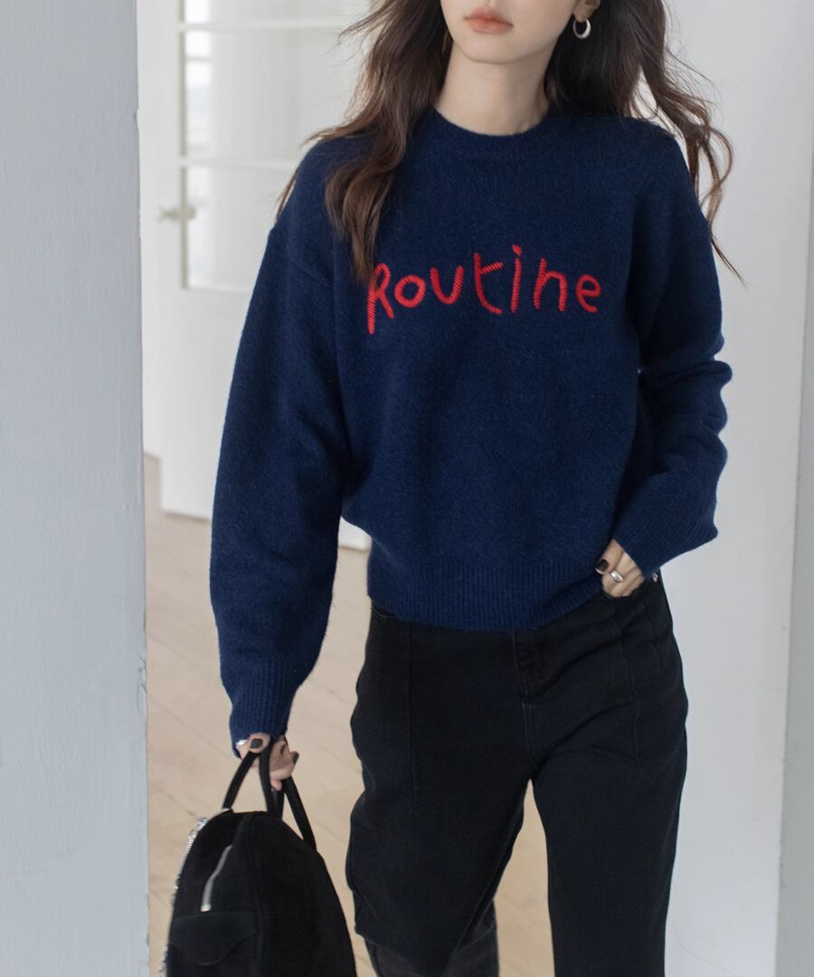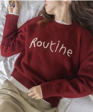 胸元の刺繍が特徴のラウンドネックセーター。