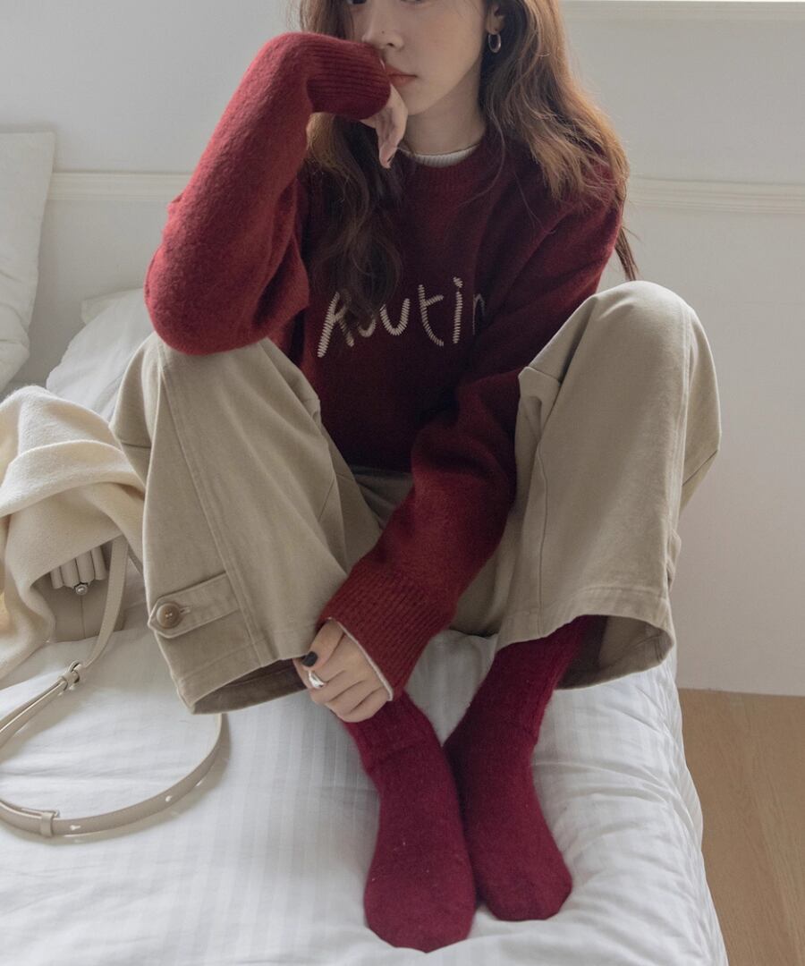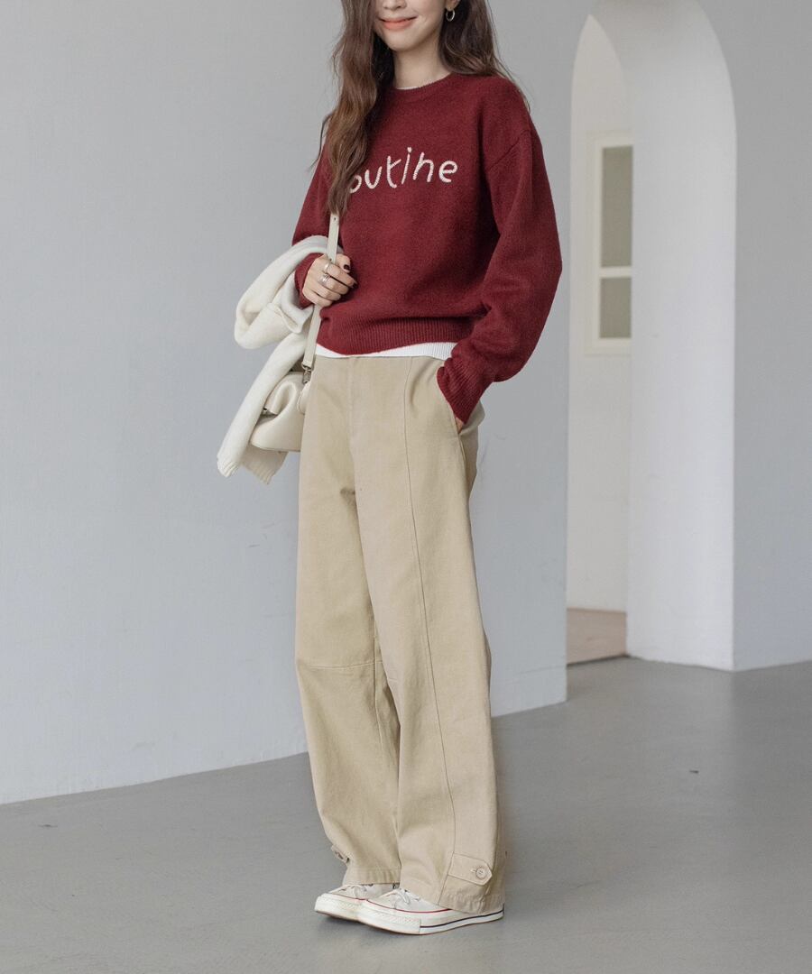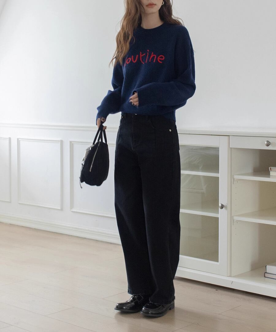 ラウンドネック刺繍セーター【t-11300】