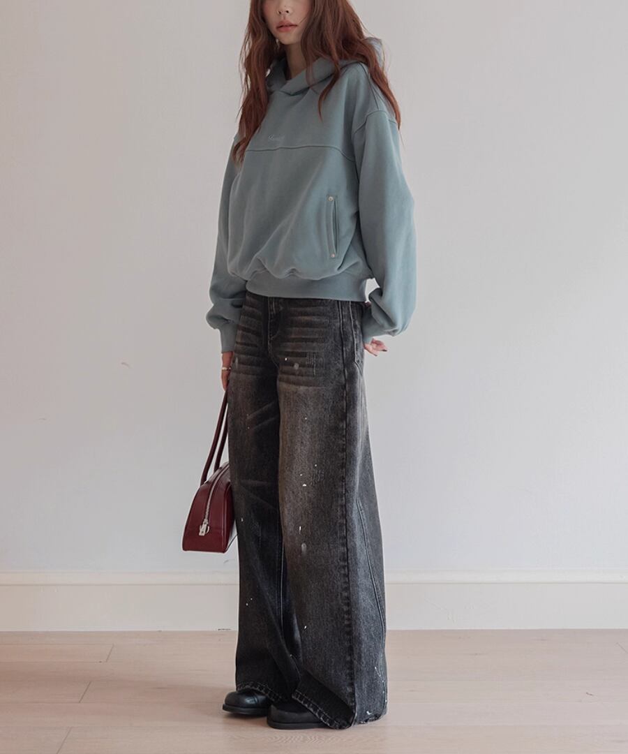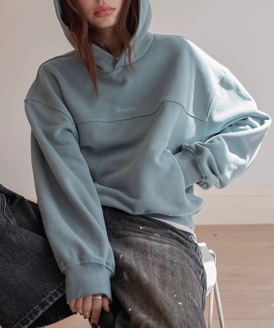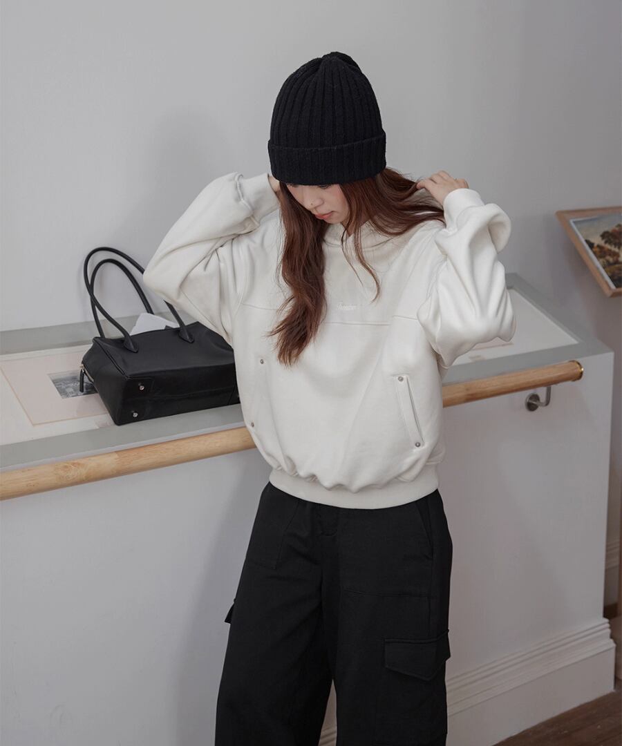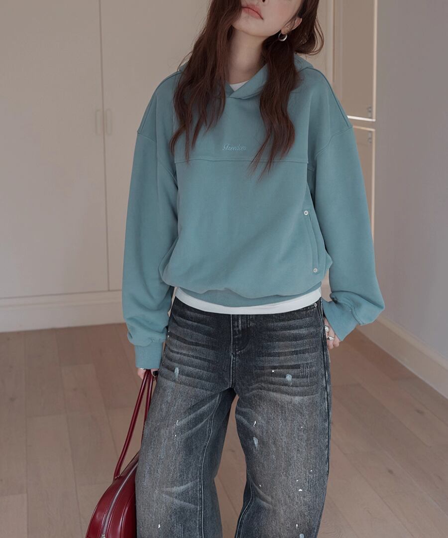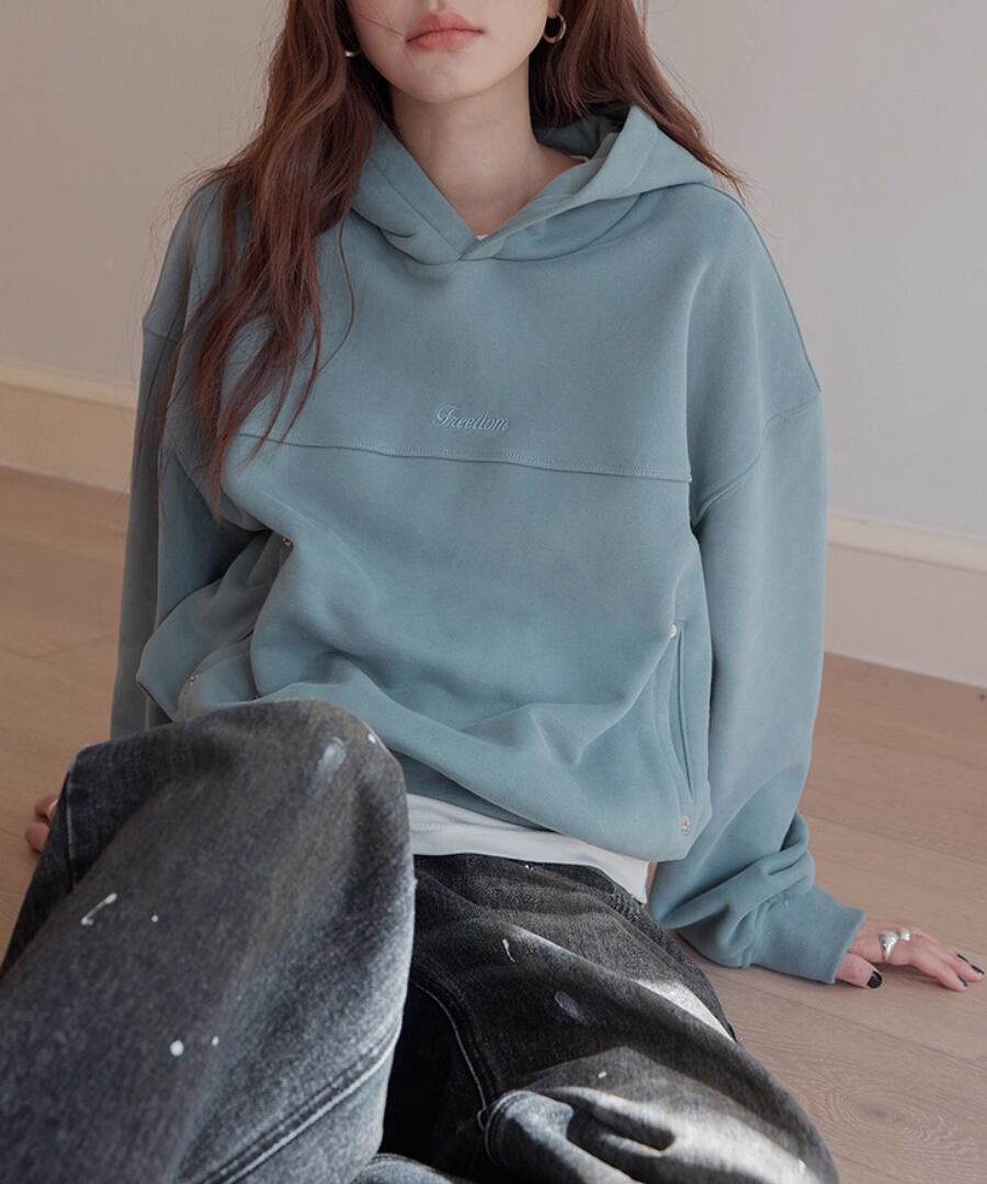 裏起毛の柔らかな素材感で、寒い季節でも心地よい暖かさを提供するスウェットパーカー。