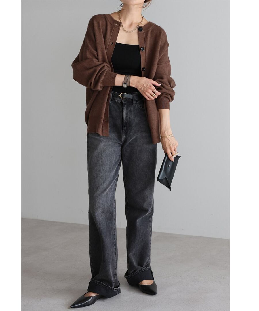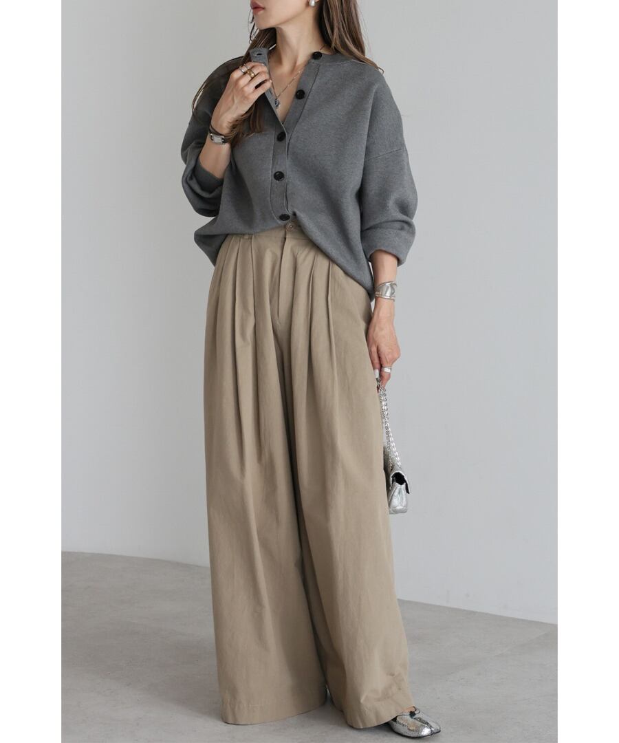 クルーネック×ドロップショルダーで肩周りをすっきり見せてくれます。