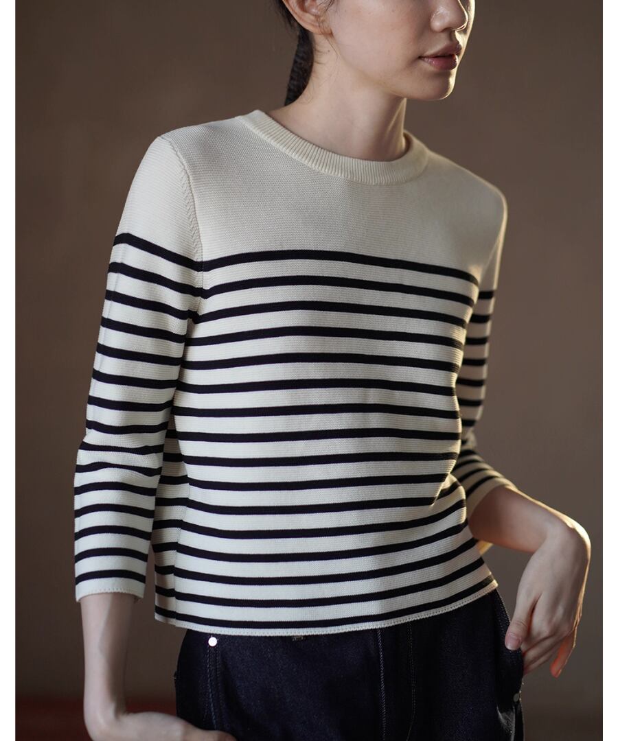 ボーダーデザインが新鮮感をプラスし、シンプルなボトムスとの相性も抜群です。