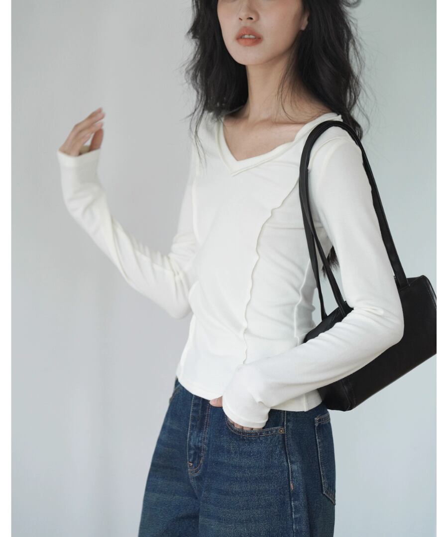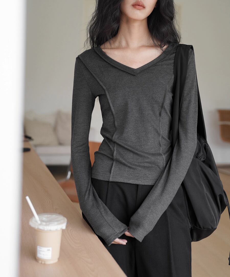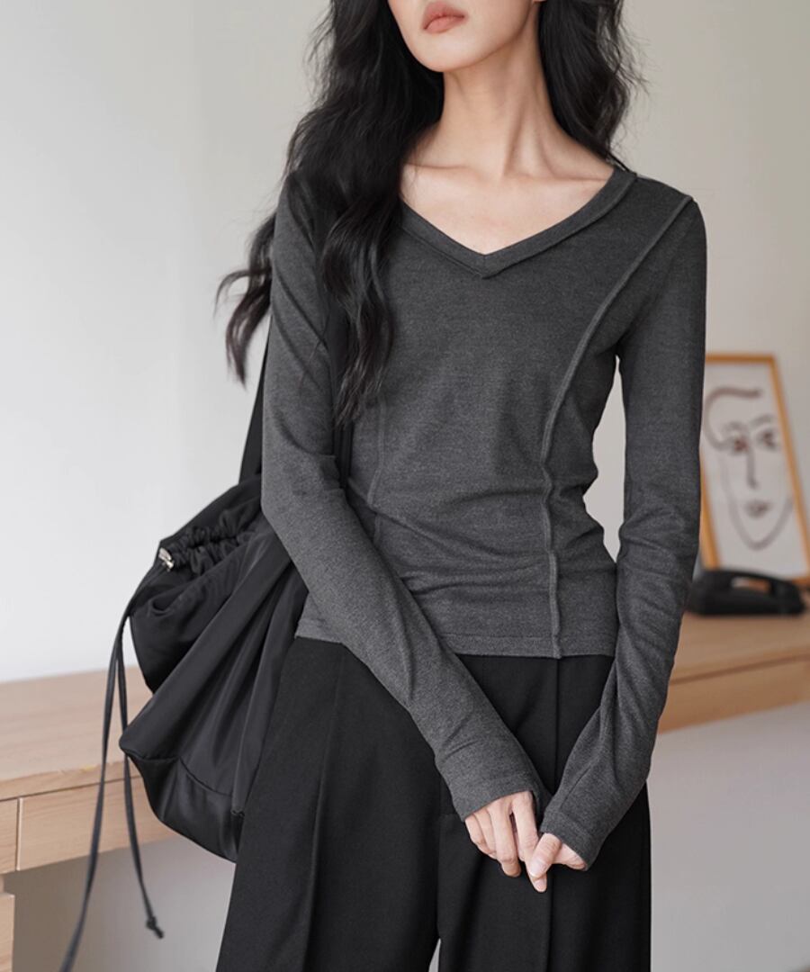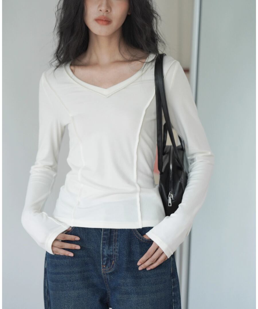 Vネック◆スリムTシャツ【t-10544】