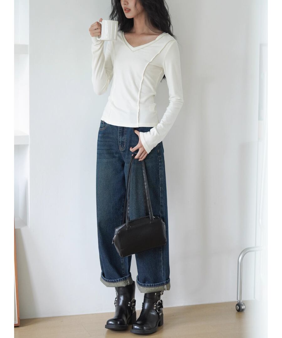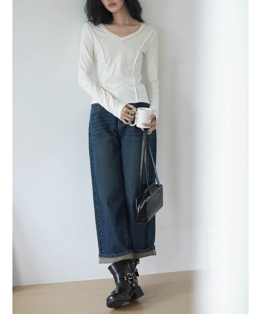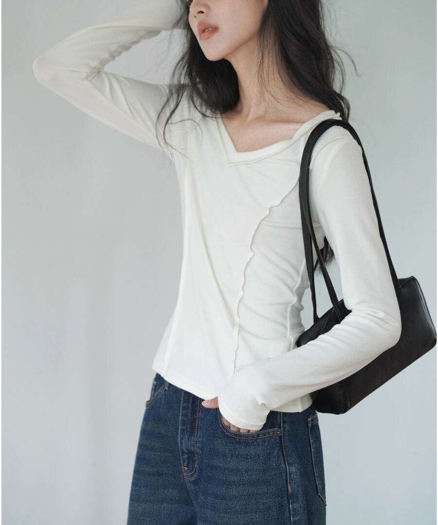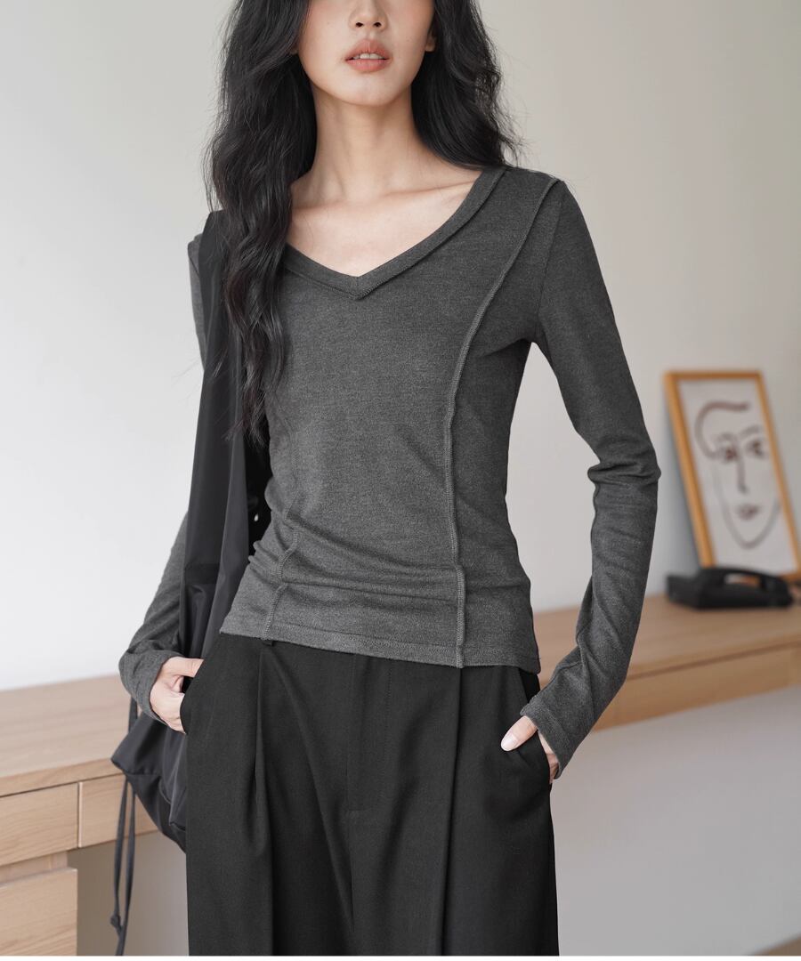 Vネック◆スリムTシャツ【t-10544】