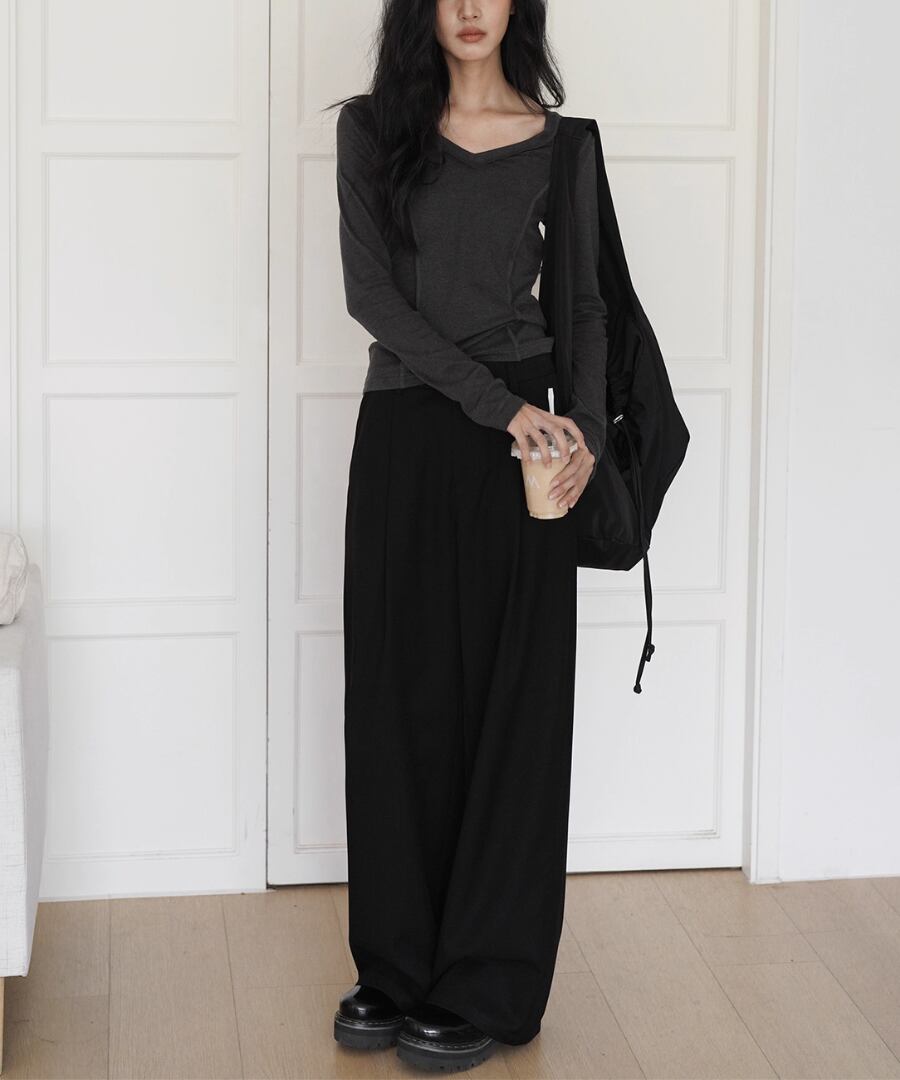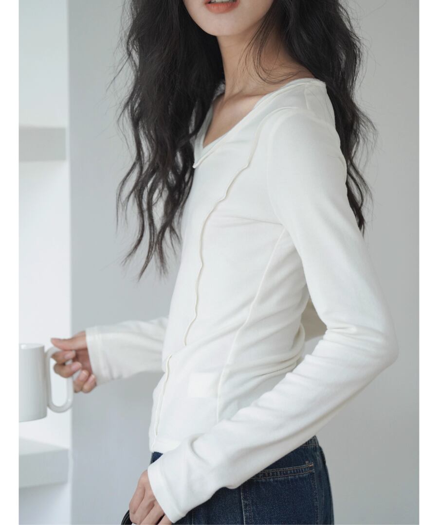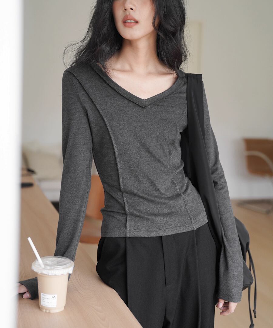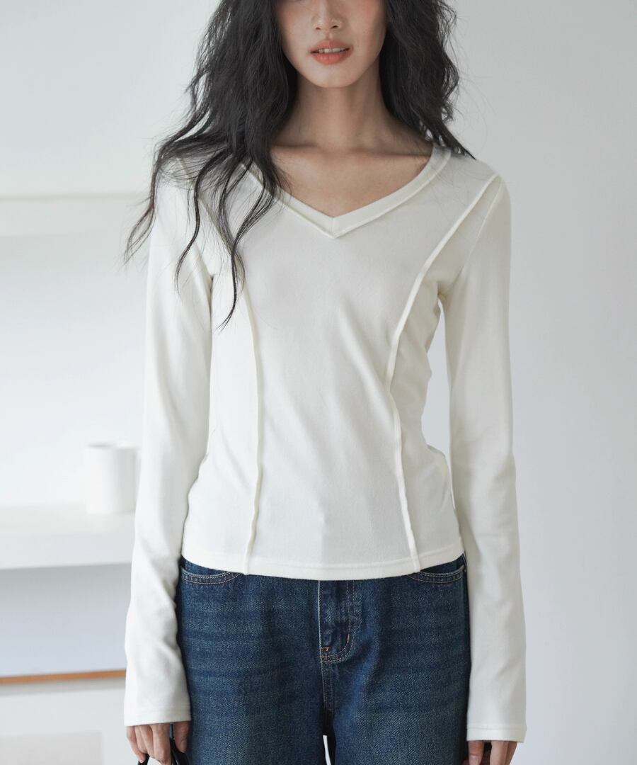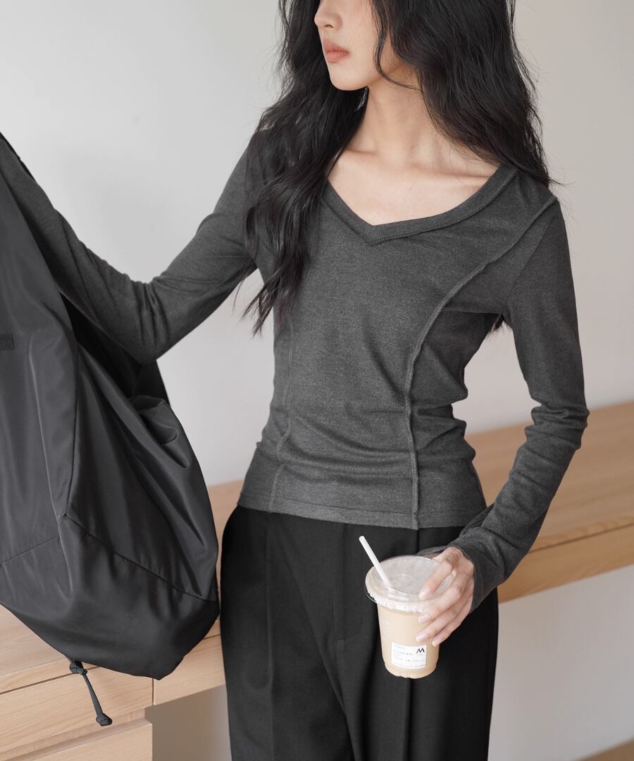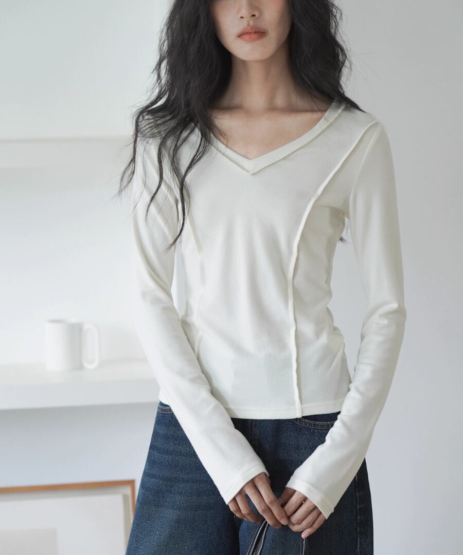 柔らかな肌触りで、スリムなシルエットが魅力のVネックTシャツ。