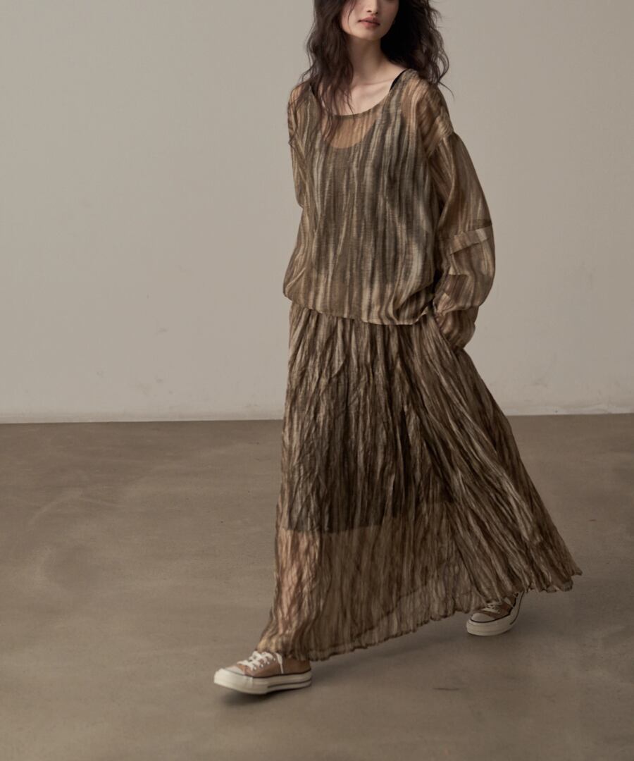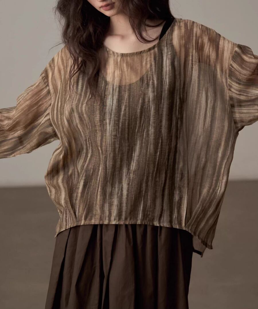 程よいシアー感とニュアンスのあるストライプ柄が特徴。