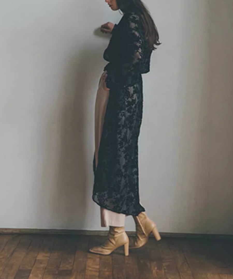 しなやかなベロアリーフ柄は、どんな場面でも女性らしさを引き立ててくれます。