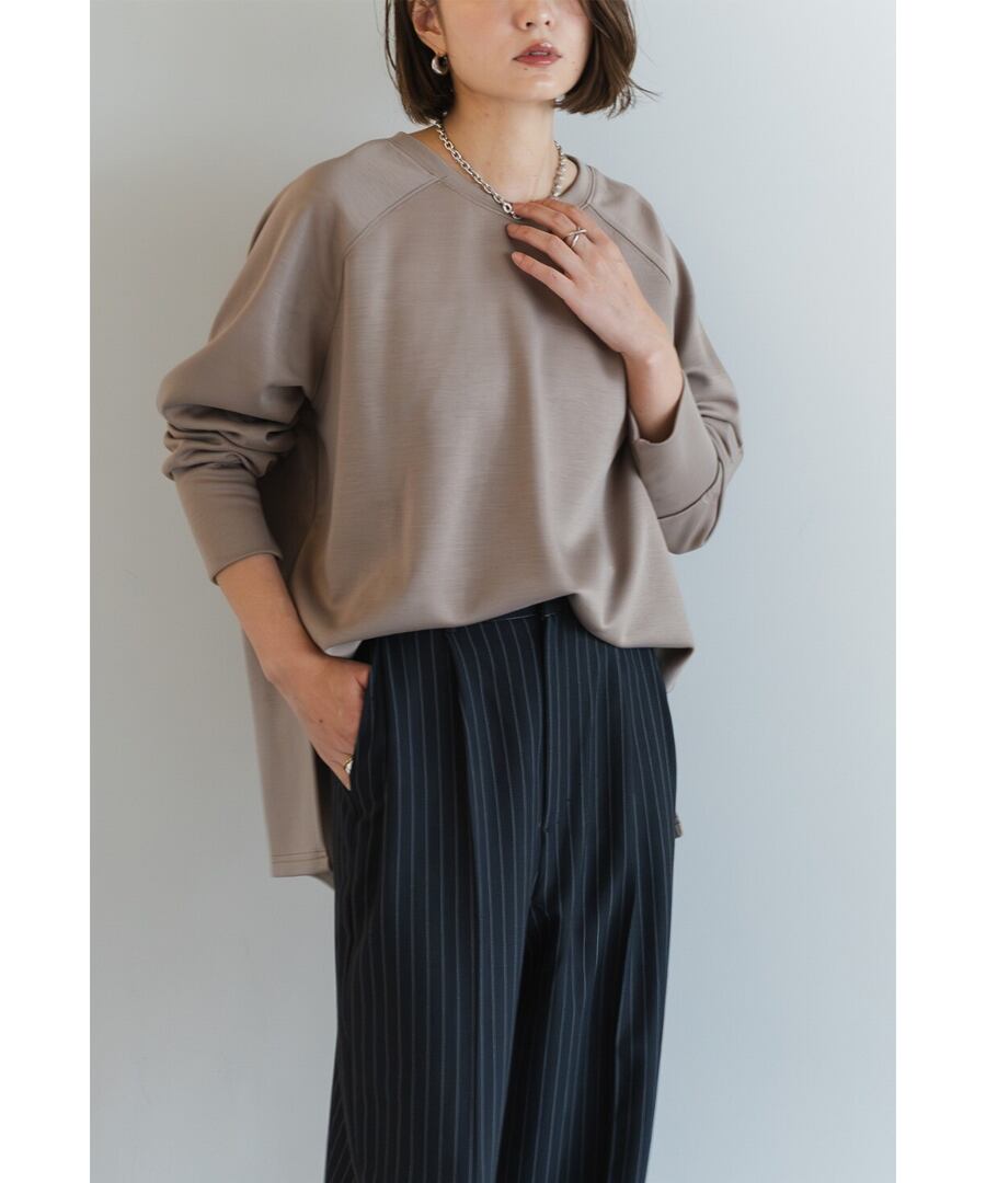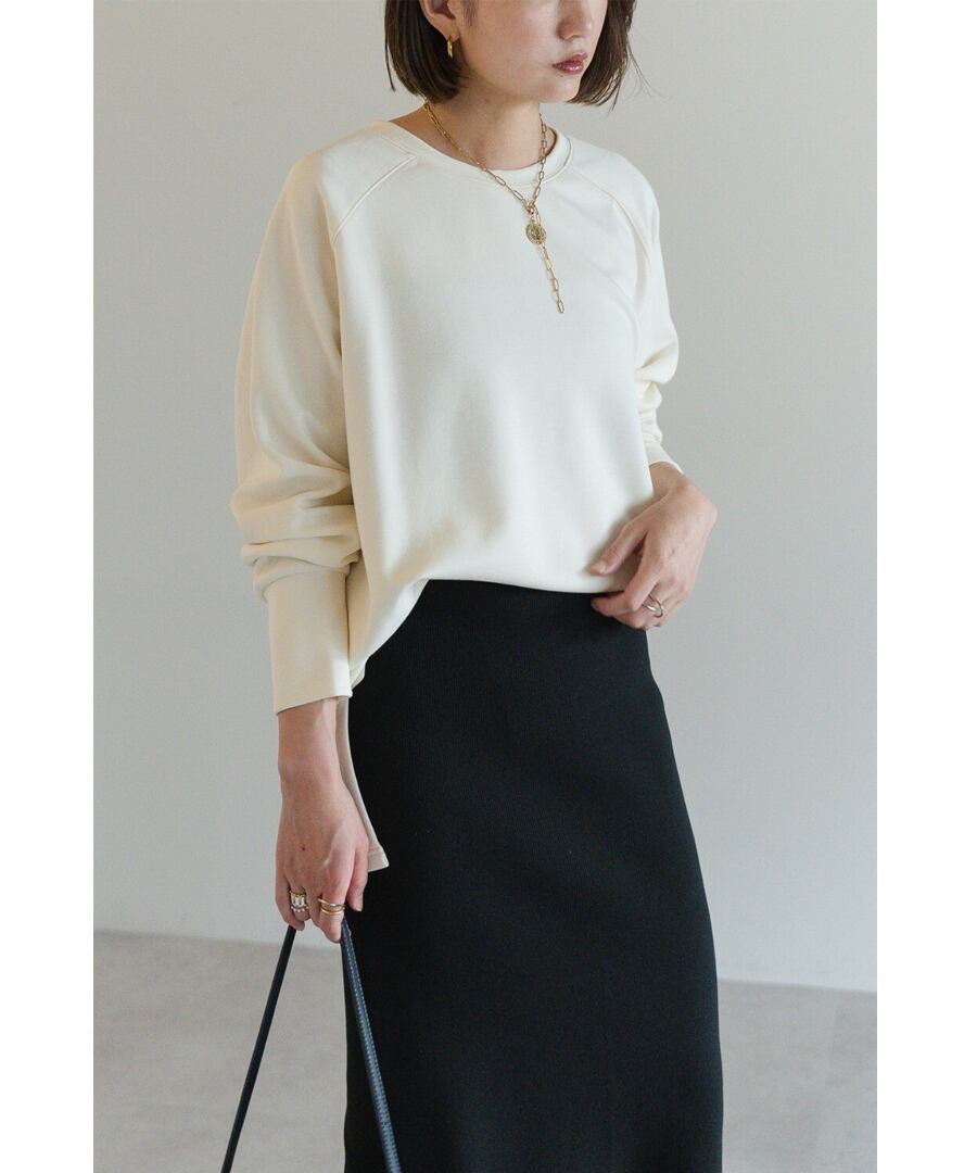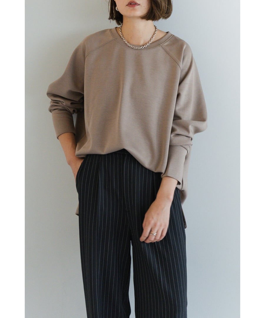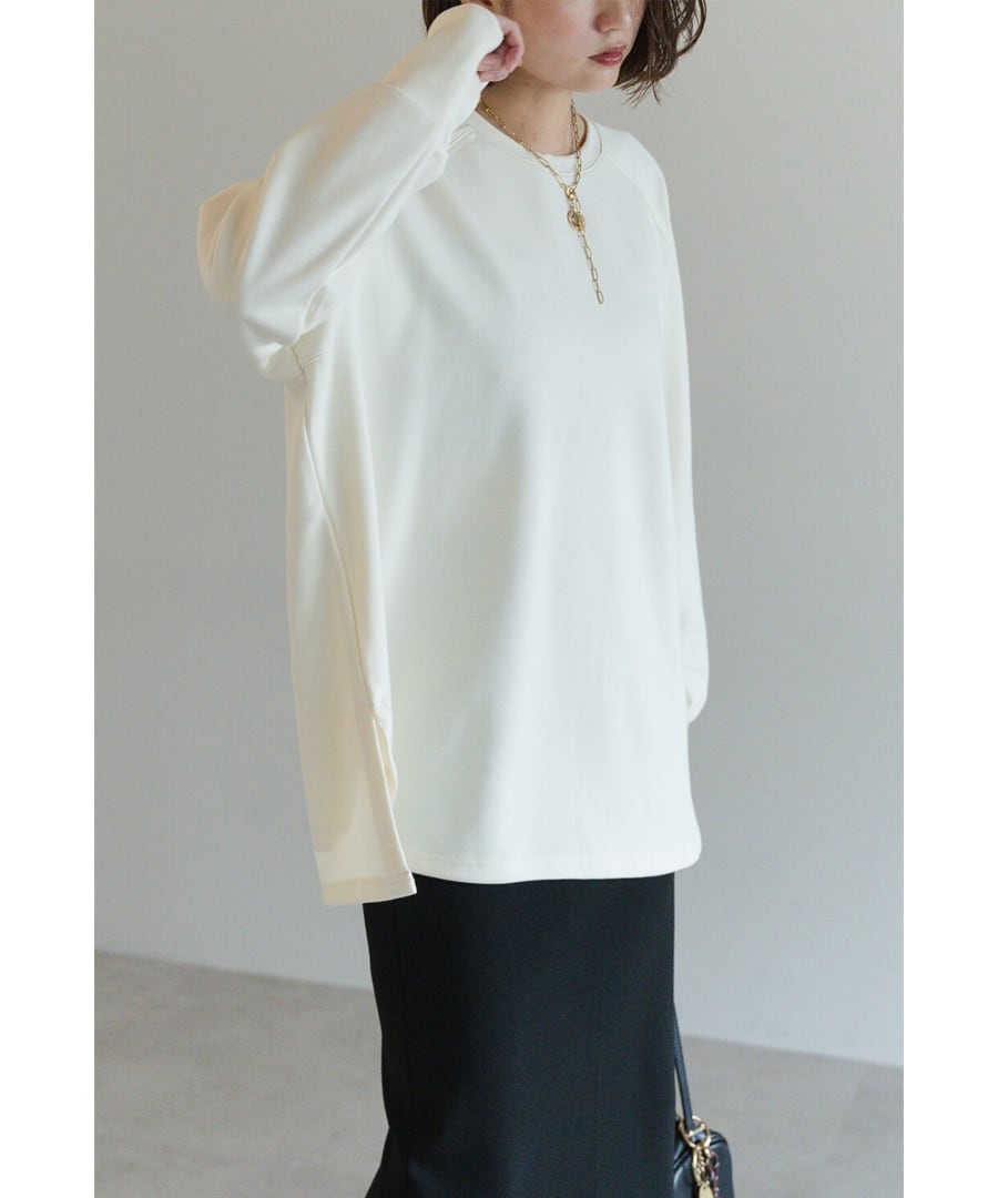 ラグランスリーブで肩まわりに自然な落ち感を演出します。