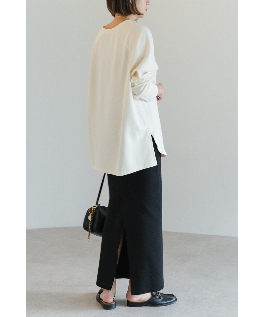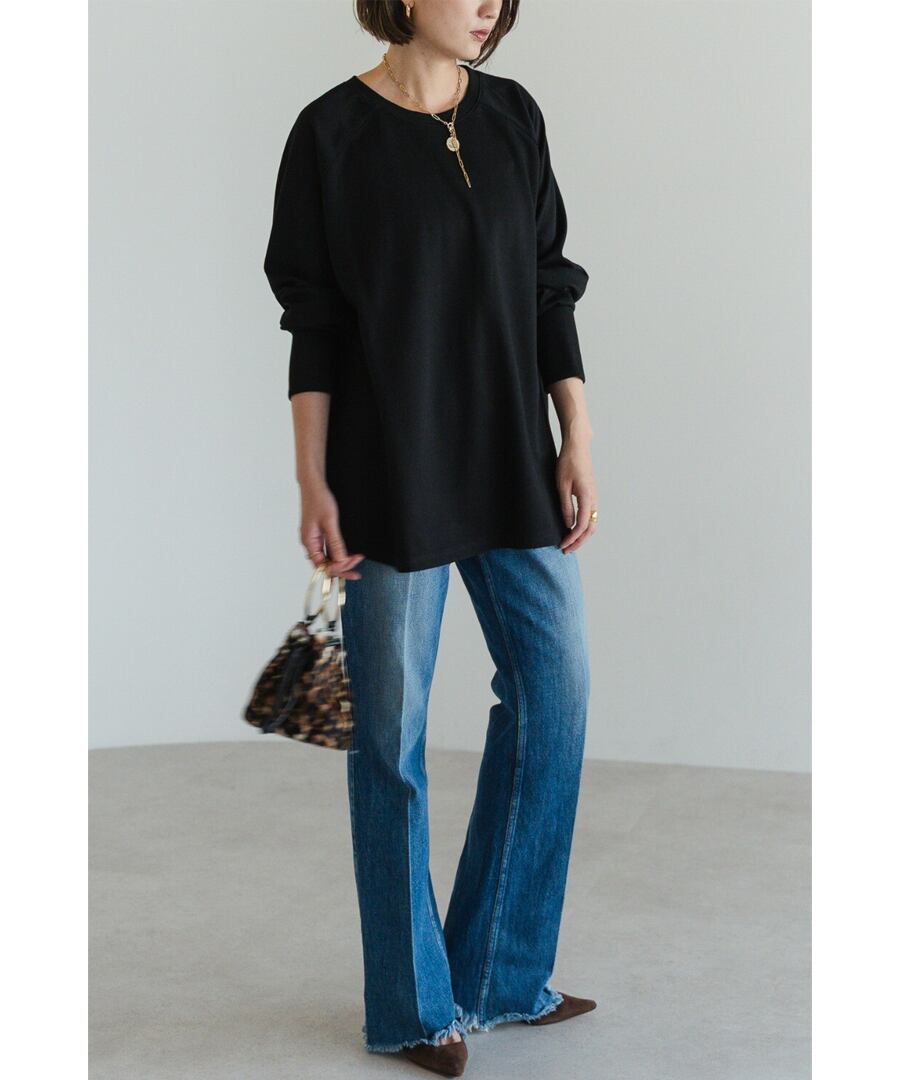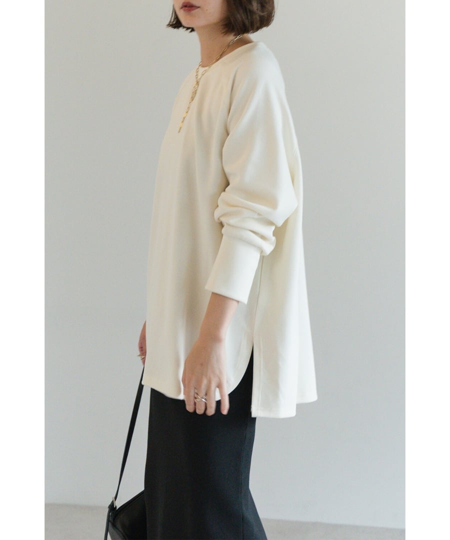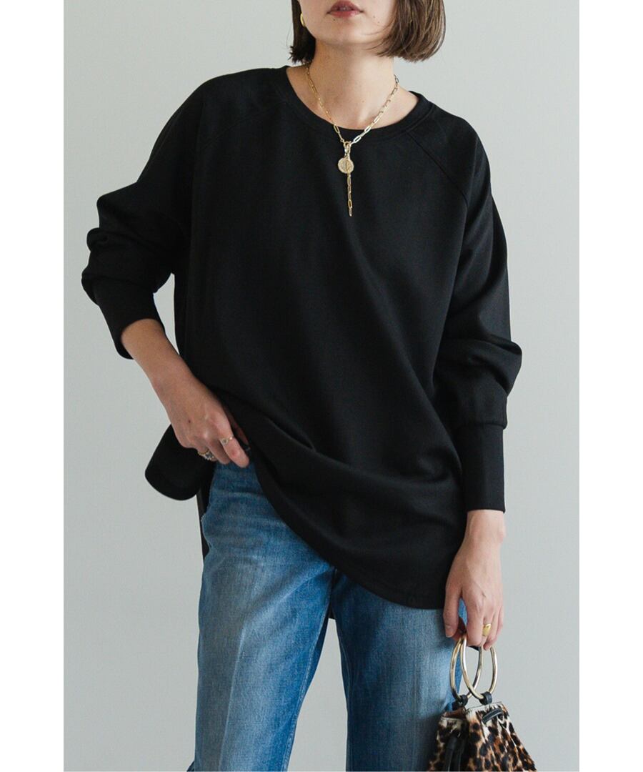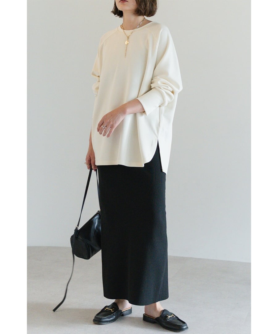 ラグランスリーブで肩まわりに自然な落ち感を演出します。