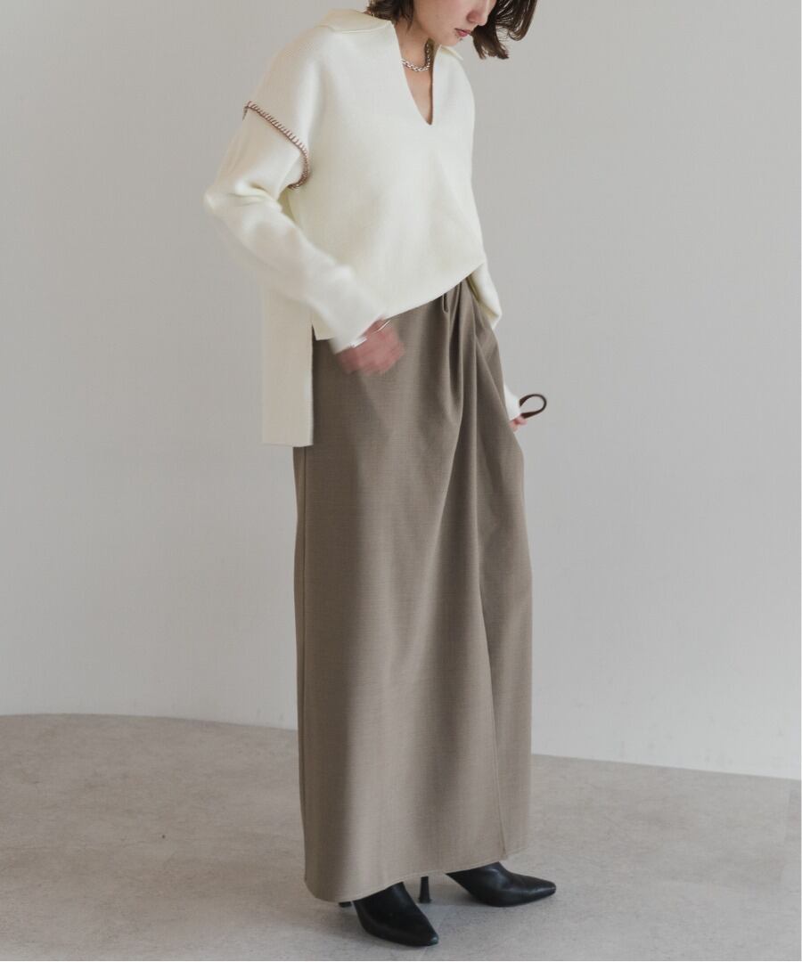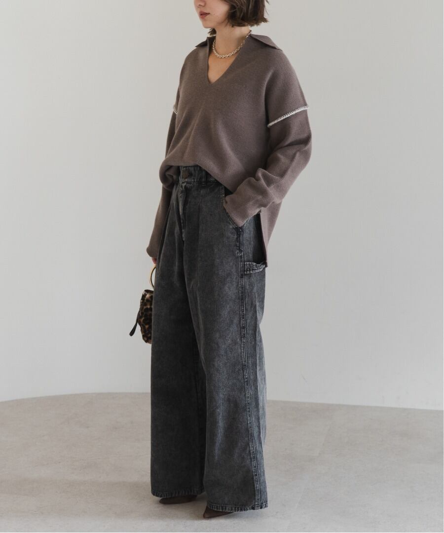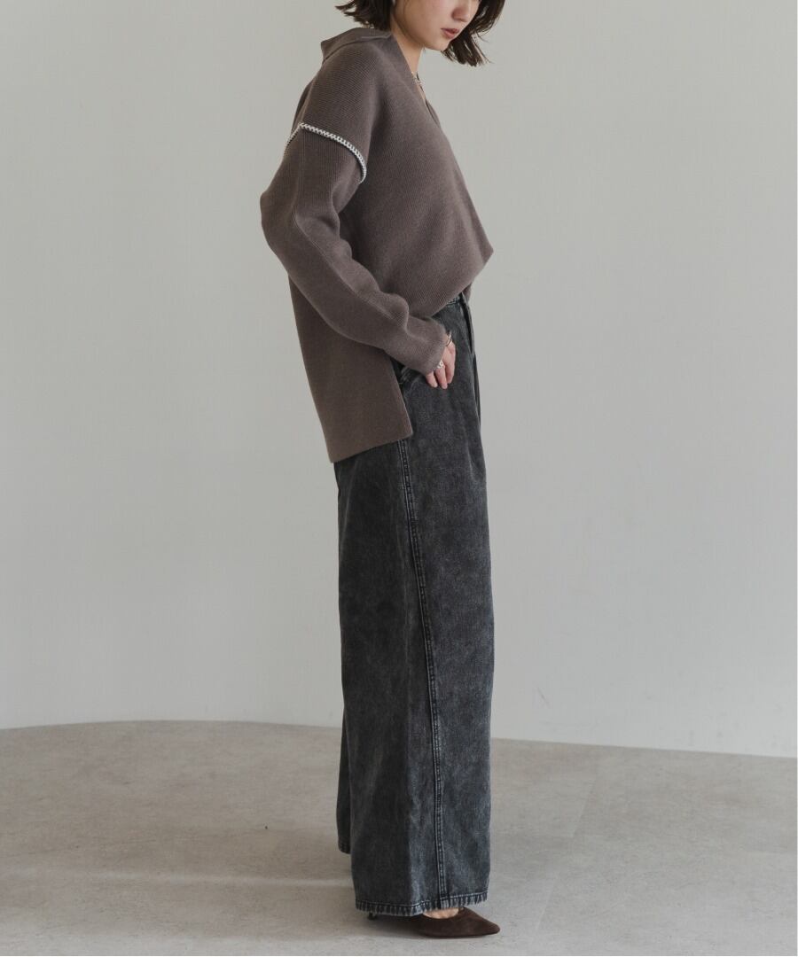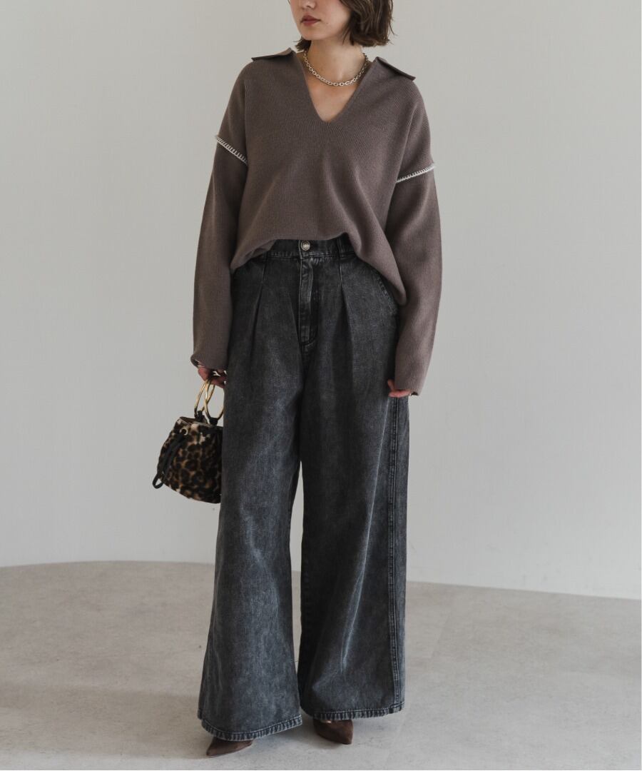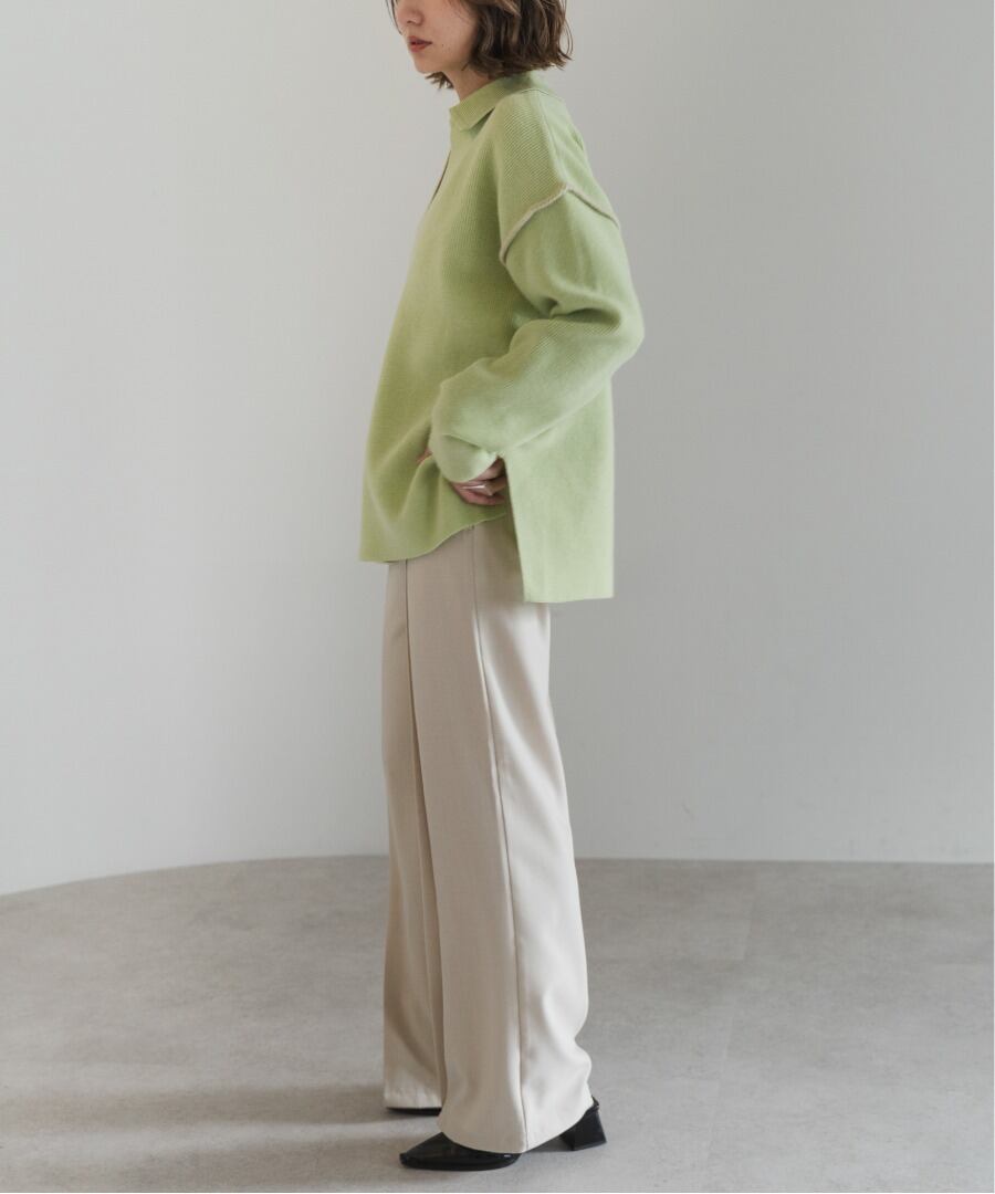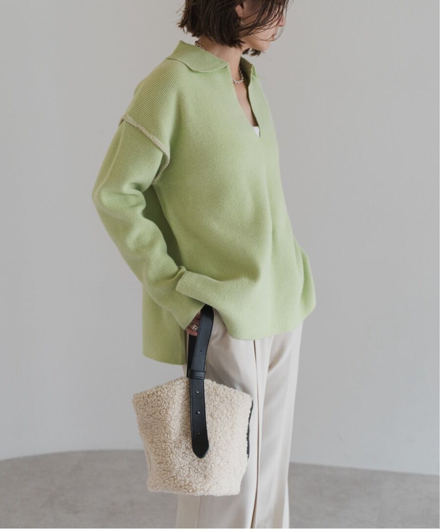 襟付きデザインとスキッパーネックが抜け感を演出するニットプルオーバー。