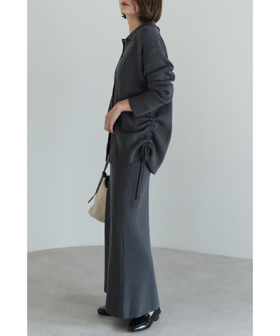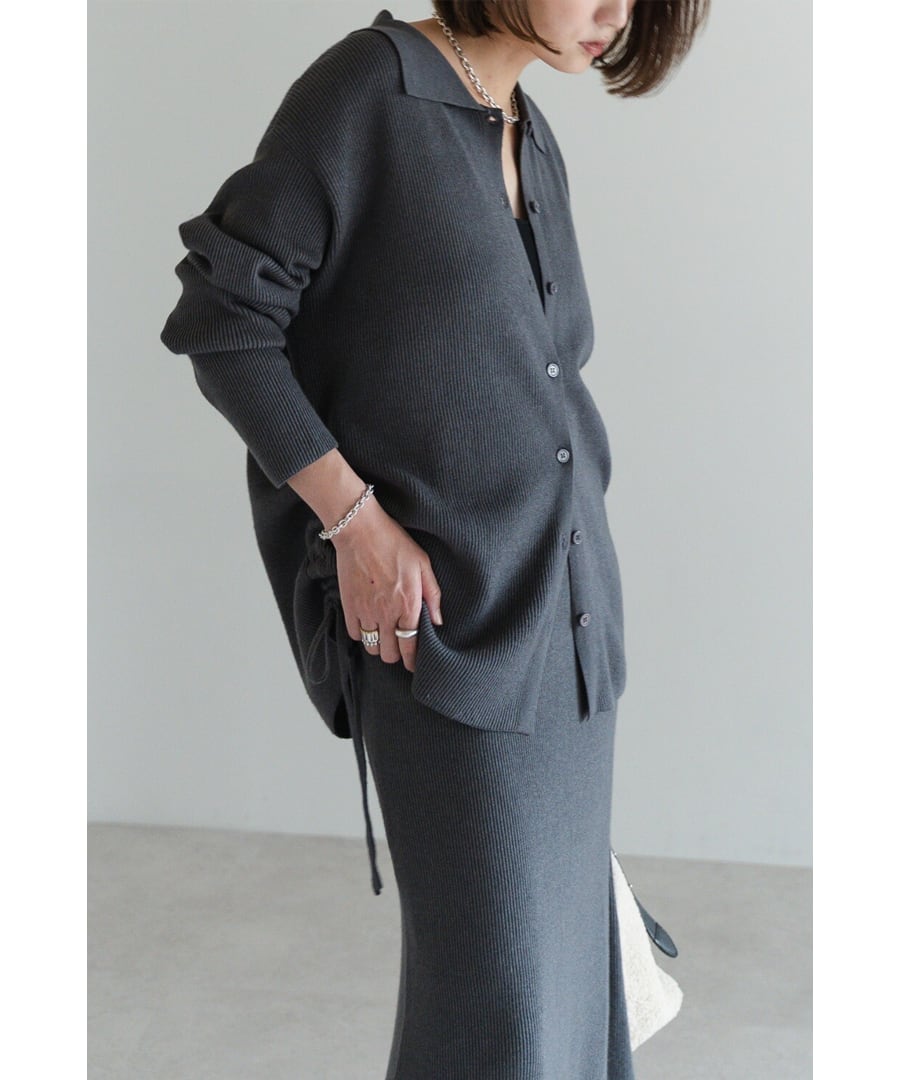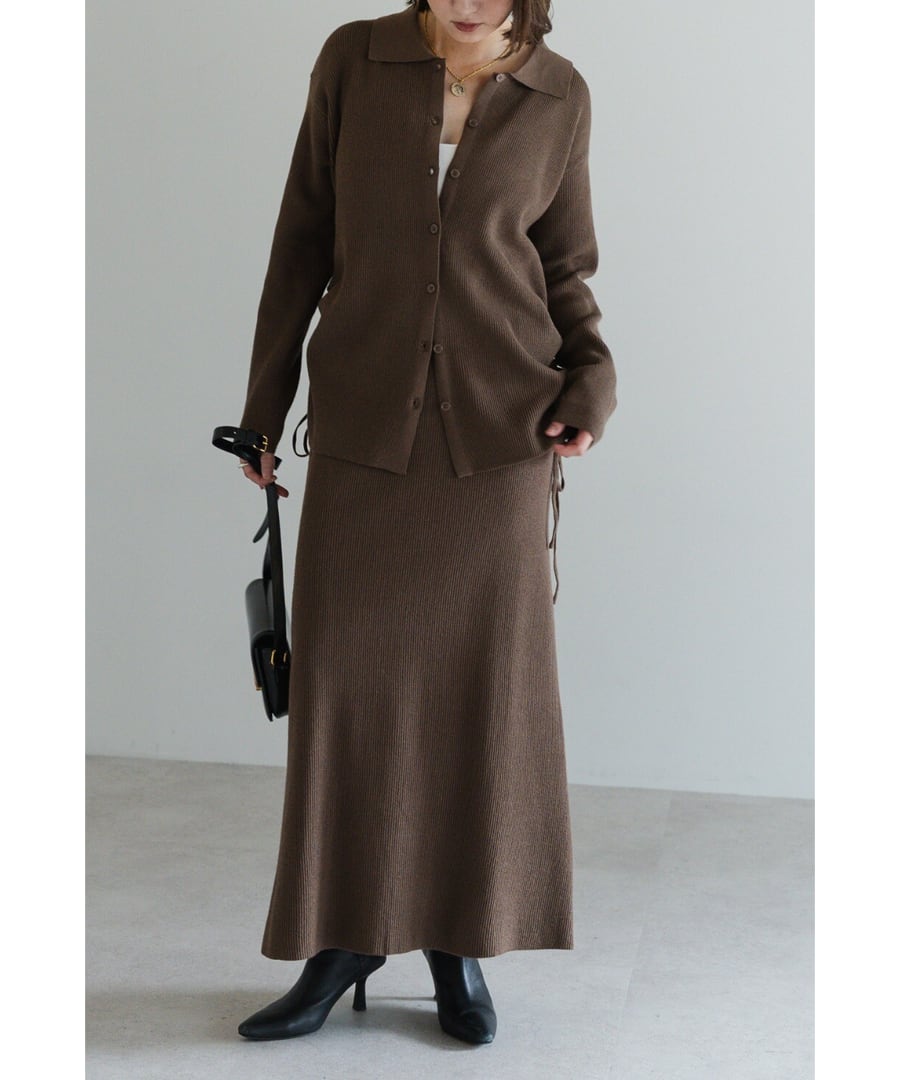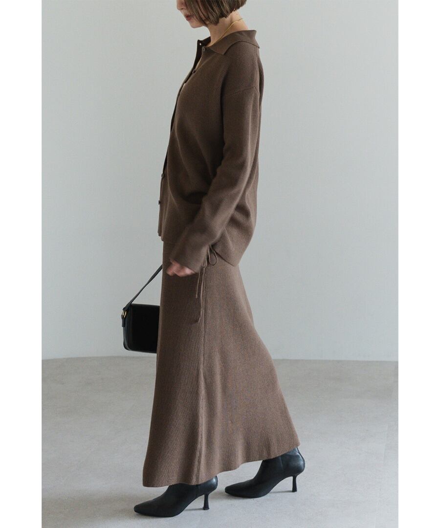 旬を纏う、大人のポロ襟ニットカーディガン×スカートセットアップ
