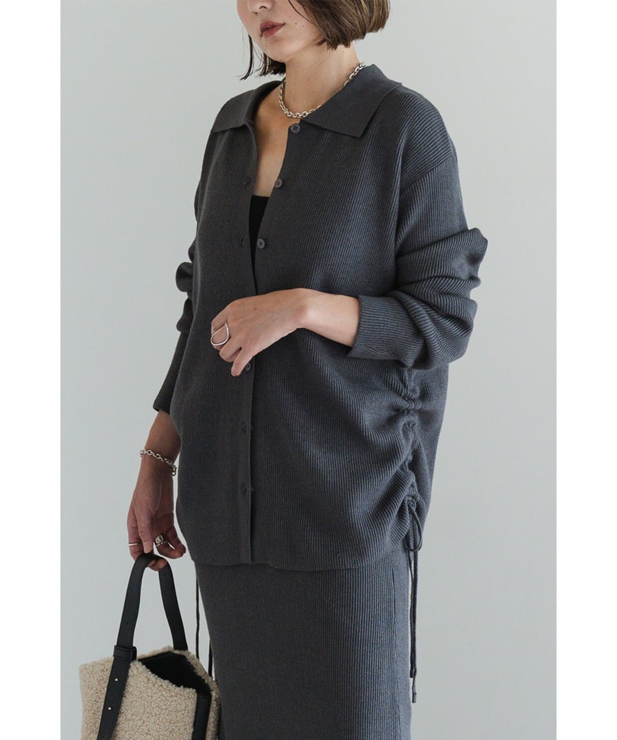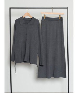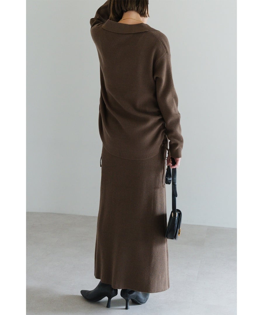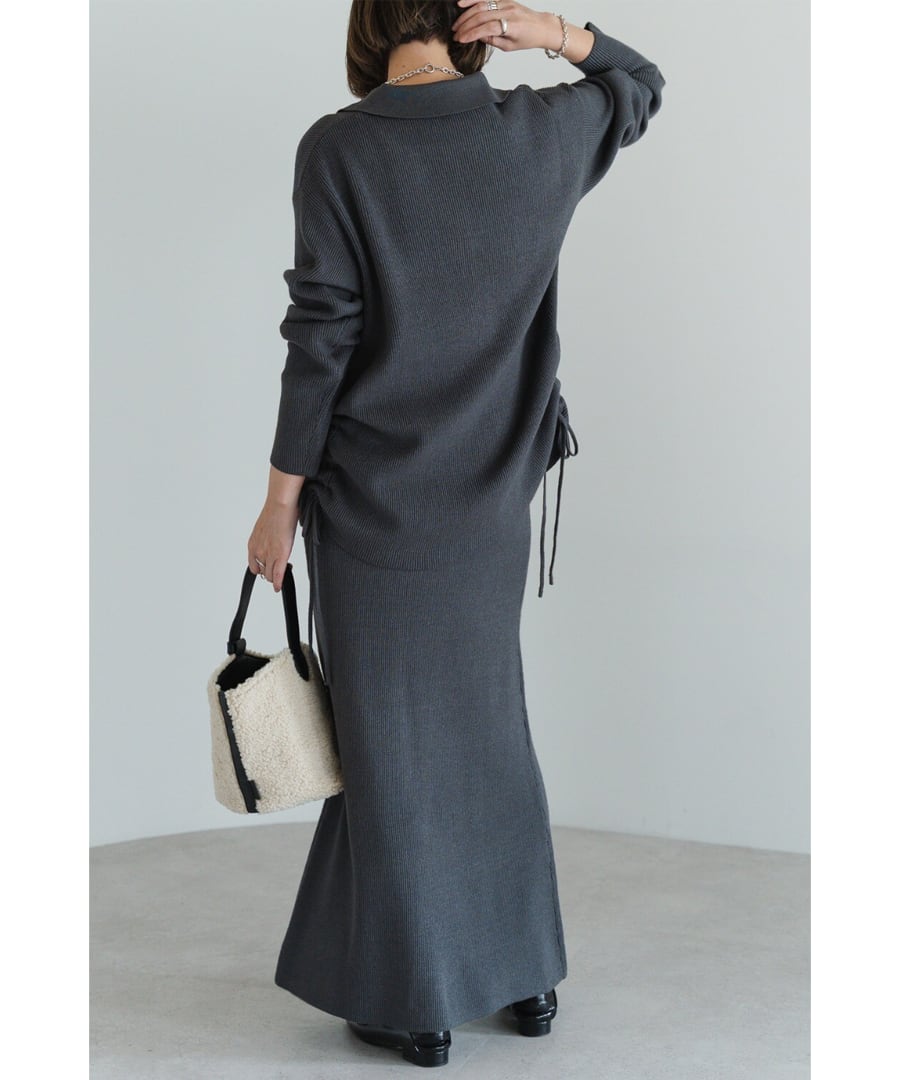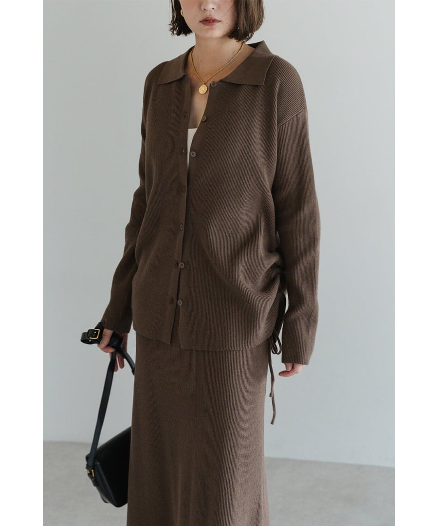 旬を纏う、大人のポロ襟ニットカーディガン×スカートセットアップ